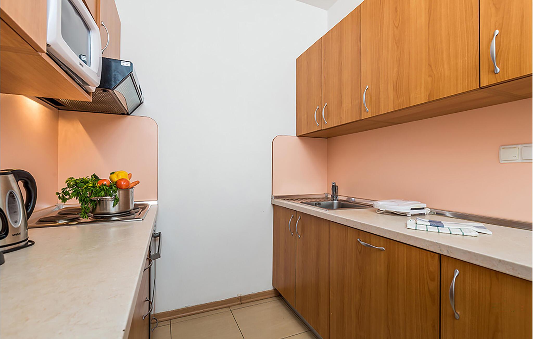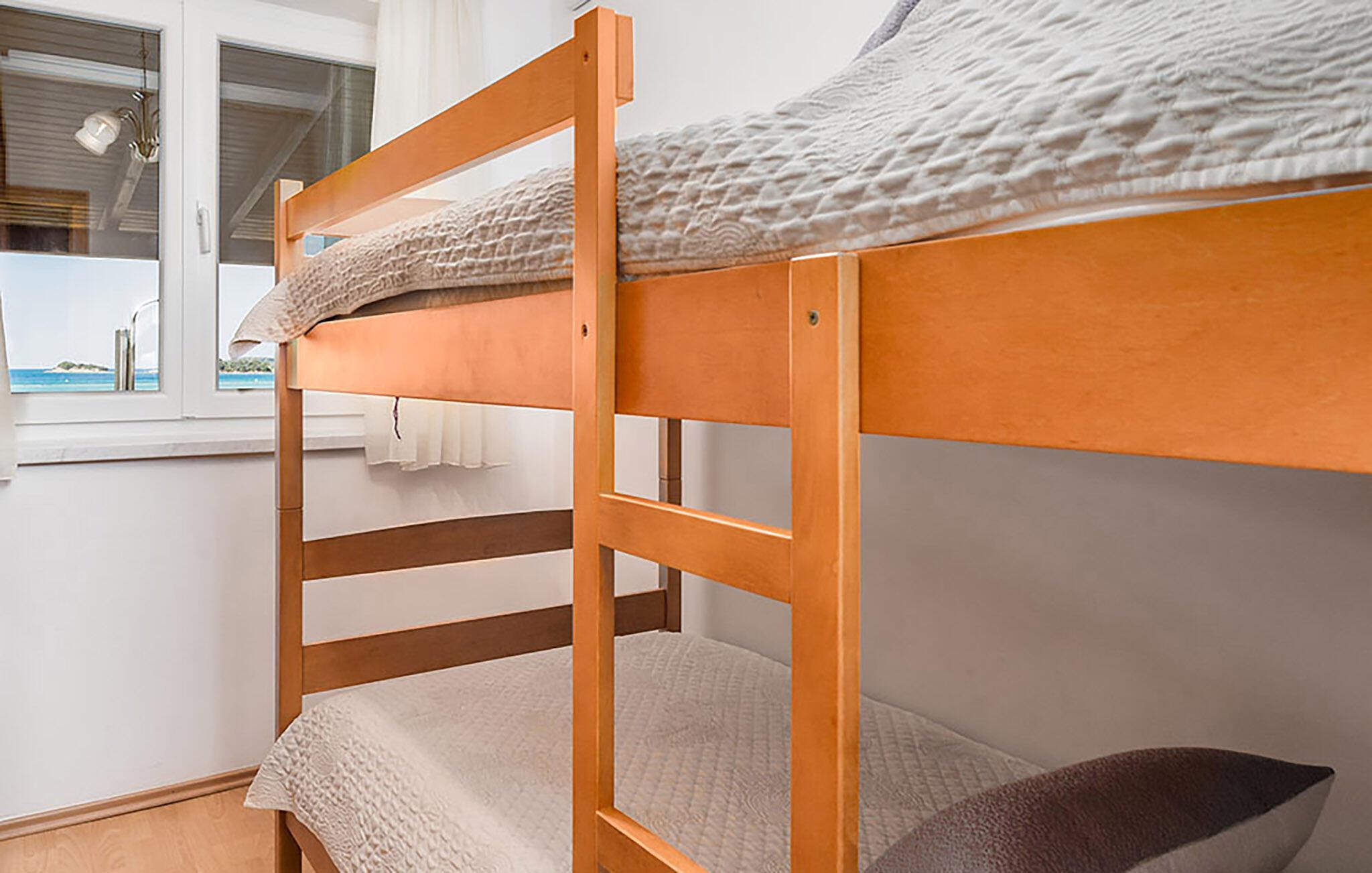 Nyd en afslappende ferie i denne komfortable ferielejlighed med fælles pool og havudsigt. Beliggende direkte ved en smuk sandstrand inviterer denne indbydende og velholdte lejlighed jer til en afslappende ferie. Tilbered middelhavsretter, planlæg jeres aktiviteter sammen omkring det indbydende spisebord, og slap af efter en begivenhedsrig dag med en spilleaften. Server jeres morgenmad på terrassen og glæd jer til en dejlig feriedag, mens I nyder havet. Genoplad batterierne på de komfortable liggestole ved poolen og få nye venner om aftenen omkring grillen. Gå en tur til stranden, når I har lyst til en svømmetur i Adriaterhavets krystalklare vand. Nyd vandsport eller udforsk Dundo naturreservat på vandre- eller cykeltur. Spis på en af de mange restauranter for at prøve regionale specialiteter, og lad jeres bekymringer forsvinde med en drink på en hyggelig strandbar, mens solen går ned.