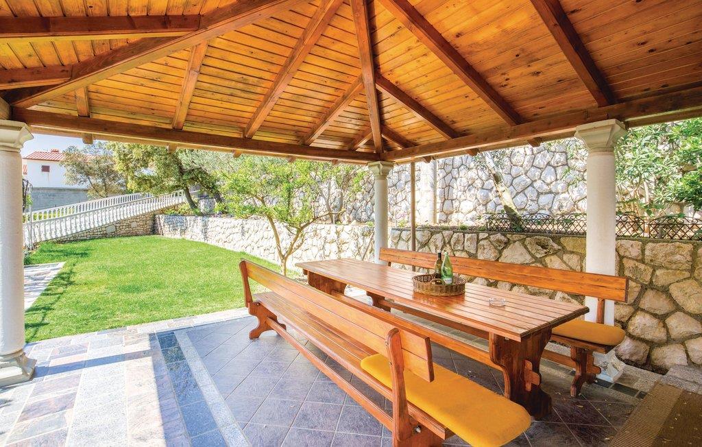 Smuk ferielejlighed med overdækkede terrasser og veludstyret udekøkken.