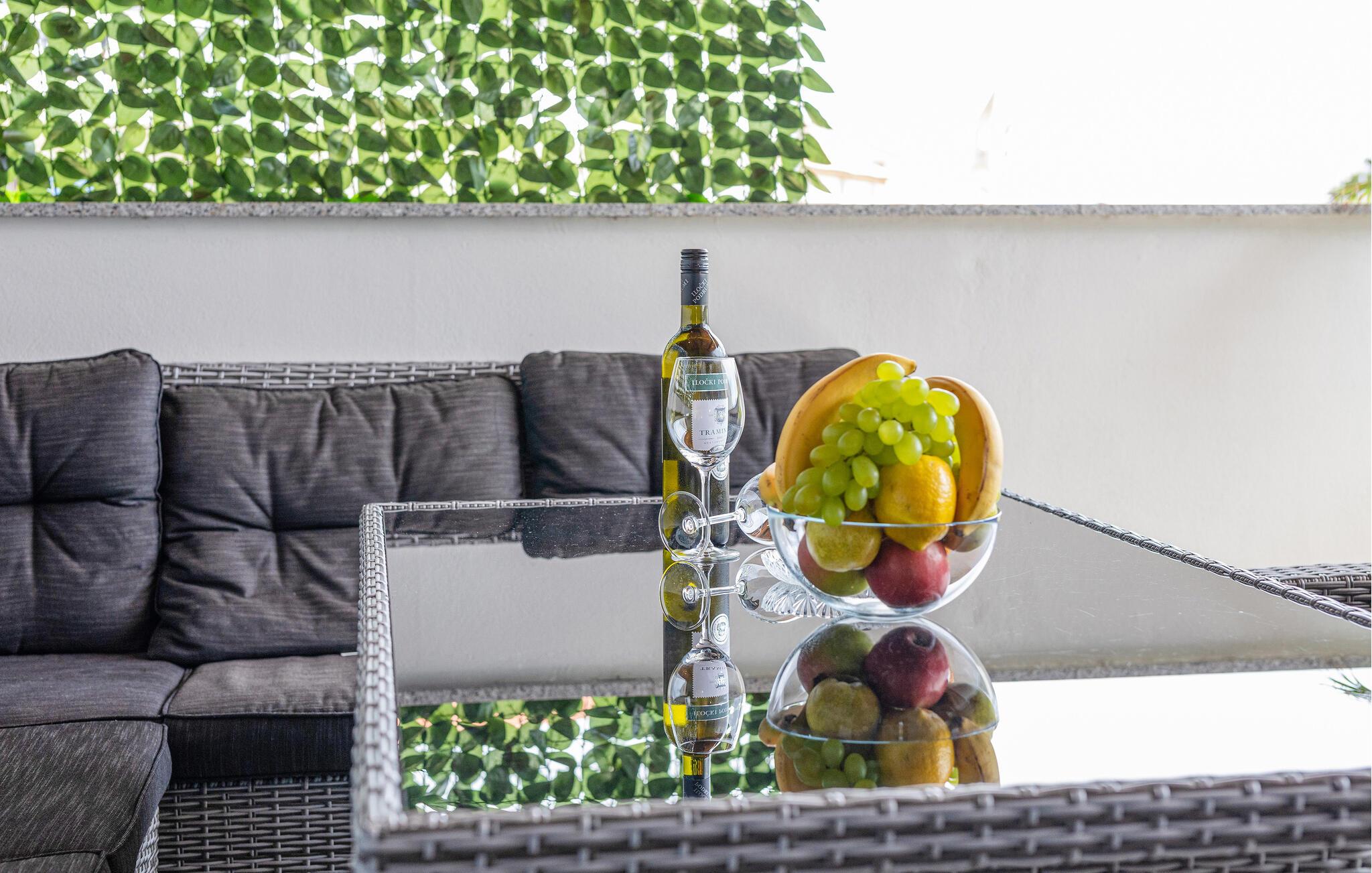 I Lopar ligger den meget populære paradisstrand og her ligger denne ferielejlighed også på 1. sal. Den ideelle bolig til gæster med husdyr, der sætter pris på en aktiv ferie og der vil opdage den vidunderlige ø. Sandstranden er kun ca. 450 m herfra og tiltrækker mange turister. Der er også mange restauranter og idrætsfaciliteter for alle aldre, såsom tennis eller minigolf samt andre muligheder for underholdning. Besøg Rab om aftenen og den historiske bykerne. Særlig kendt er "Rapska fjera" og lagkagen fra Rab.