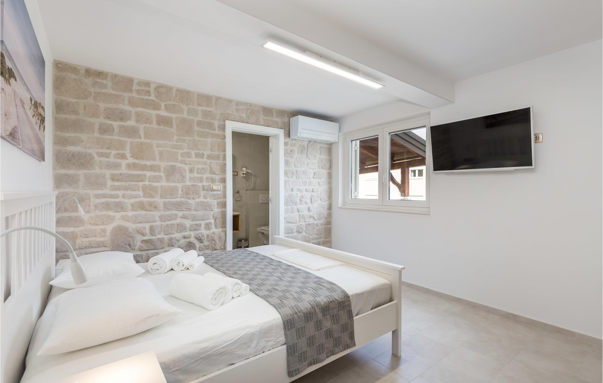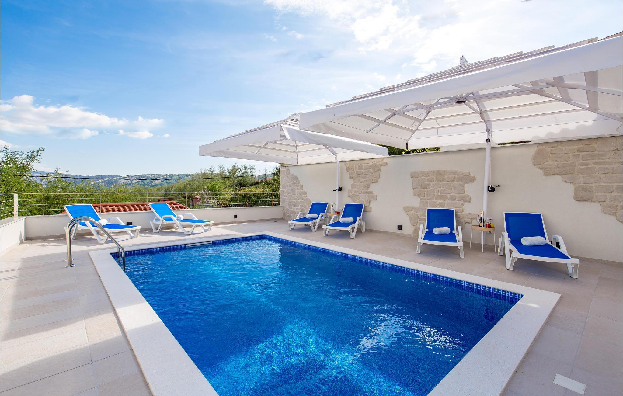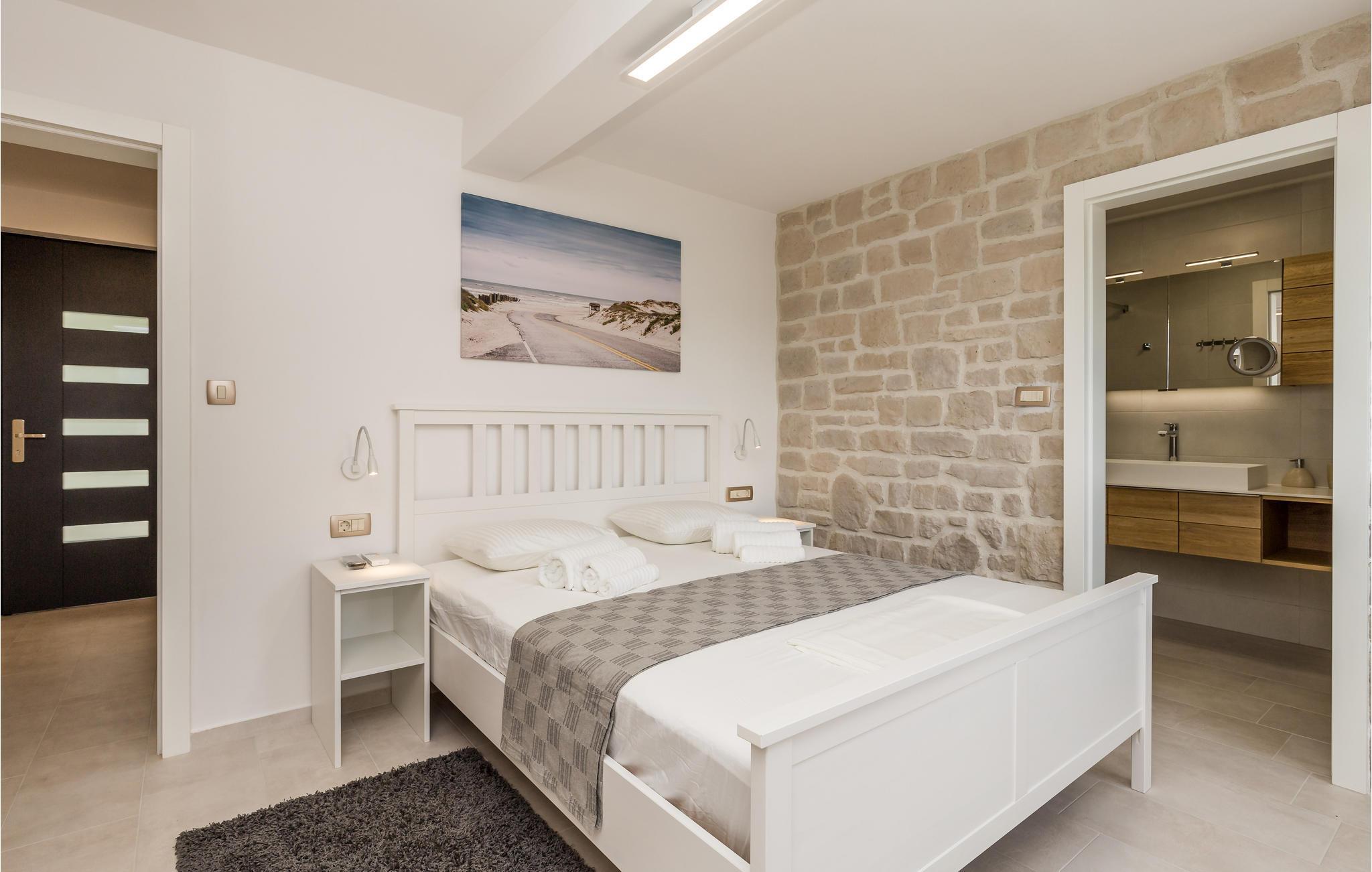 På den paradisiske ferieø Rab, i byen Lopar, ligger dette vidunderlige feriehus med pool og delvis udsigt til havet. Dette drømmeskønne hus, lader intet ønske åbent. Ud over den store terrasse, den forfriskende private udendørs pool og whirlpoolen på den indhegnede grund, er husets indre, der er smukt møbleret og gennemstrømmet af lys, også et skønt sted at opholde sig. Her er der en overdækket terrasse med grill, der ligger lidt fra huset hvor I kan tilberede lækker mad til hele familien og spise den udendørs. I bor helt fantastisk godt, i gåafstand af de fantastiske sandstrande. I løbet af ferien kan I gå på jagt efter øens skønne hemmelighedsfulde bugter og finde den der passer jer bedst. Der er gode færgeforbindelser fra fastlandet og om sommeren kan I se frem til mange former for underholdning. Øens største by hedder også Rab, hvor der er mange kulturhistoriske seværdigheder. Lopar er meget populær blandt børnefamilier pga sin sandstrand ud til lavt vand, den kaldes også Paradisstranden og indbyder til skønne badedage under den varme sol. Maleriske bugter, klart vand, historiske byer og kulturelle seværdigheder er alt sammen noget, I kan glæde jer til når I holder ferie på øen Rab.