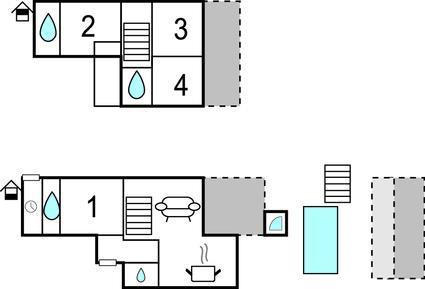 Badeværelse 4m2 (nr. 4) - WC. Varmt og koldt vand. Bruser