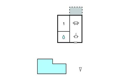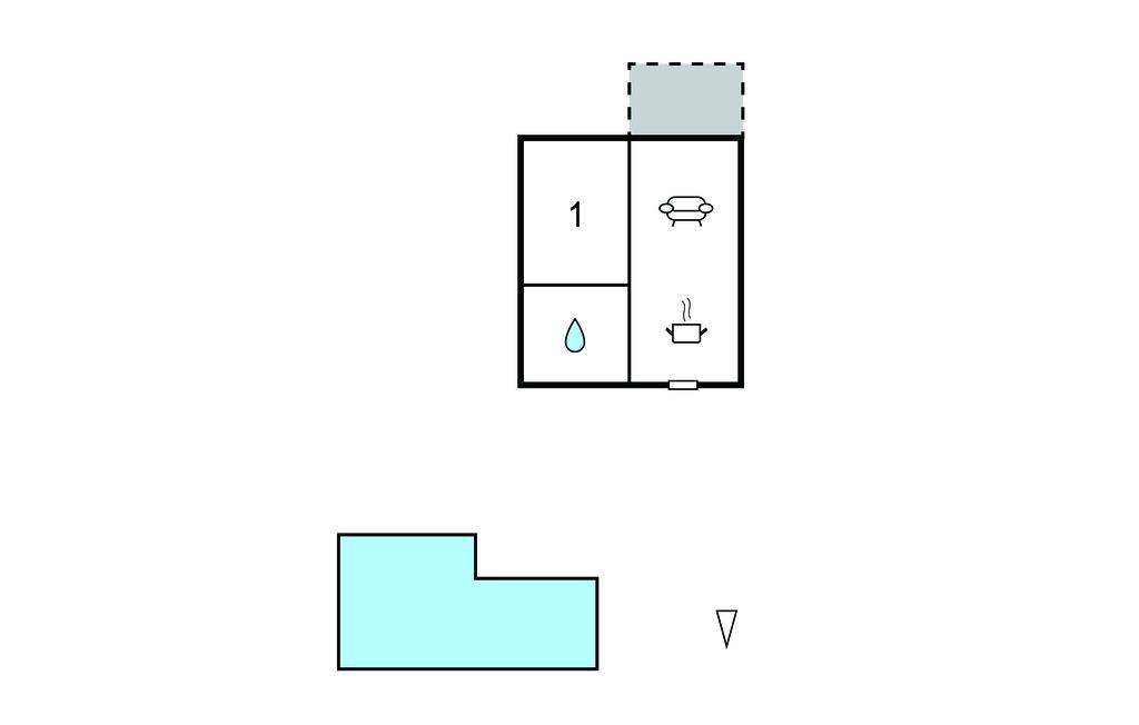 Opholdsstue/køkken 20m2 - 2 Sovepladser. (Sofa, madras eller lignende).