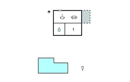 Opholdsstue/køkken 20m2 - 2 Sovepladser. (Sofa, madras eller lignende).