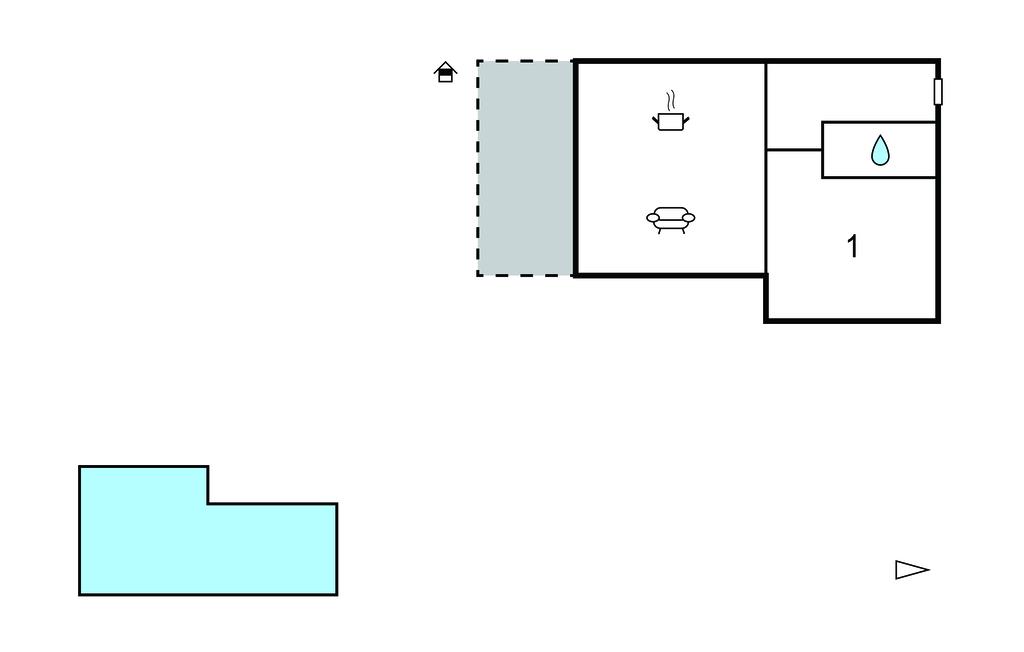Opholdsstue/køkken 26m2 - 2 Sovepladser. (Sofa, madras eller lignende).