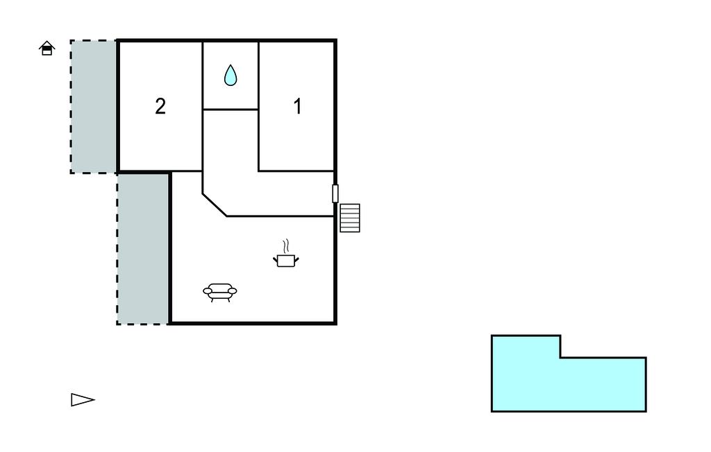 Opholdsstue/køkken 26m2 - 2 Sovepladser. (Sofa, madras eller lignende).