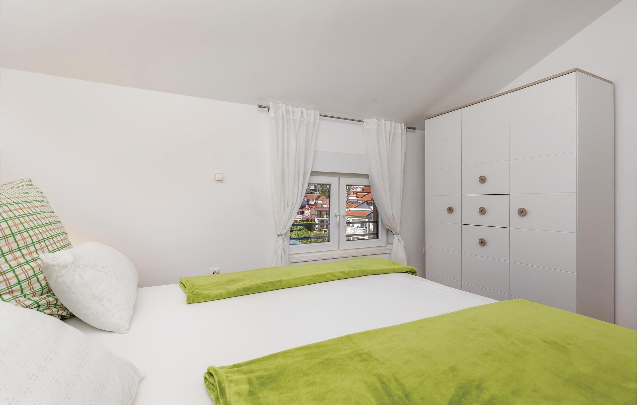 Nær havet, på anden sal i tagetagen (skråvægge på ca. 150 cm), ligger disse to ferielejligheder. Lejlighederne er smukt dekorerede og veludstyret og opfylder alle behov. Beliggenheden kunne næsten ikke være bedre, da I kun har et par minutters gang til stranden, restauranter og caféer. Rab er berømt for drømmeagtige badebugter og osgå for sommerarrangementer. Sæt en dag af til at bade i Lopar, på den berømte, lange sandstrand San Marino, der også kældes for paradisstrand. Stranden er skrånede og velegnet til børn, der kan lege i vandet.