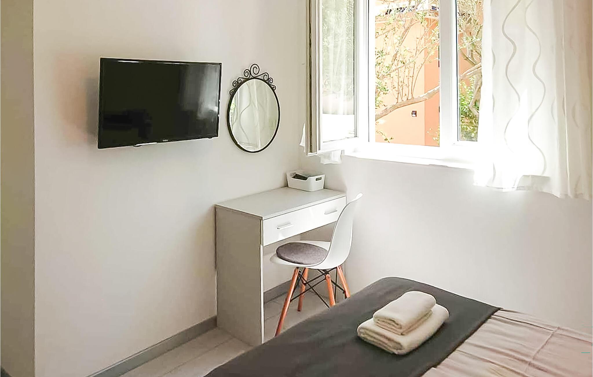 Tilbring afslappende dage som par i denne moderne ferielejlighed nær stranden. Velkommen til denne lyse og smagfuldt indrettede lejlighed i stueetagen, hvor I kan finde jer til rette til et afslappende og varieret ophold på den charmerende ø Rab. Tilbered middelhavsretter og planlæg jeres aktiviteter i ro og mag. Efter en lang dag kan I streame en film eller slappe af med en god bog. Jeres charmerende terrasse er det ideelle sted at nyde en afslappet morgenmad i den friske morgenluft eller reflektere over jeres oplevelser over et glas vin om aftenen. Gå en tur til stranden og fordyb jer i det krystalklare Adriaterhav. Udforsk den gamle bydel i Rab med dens middelalderlige tårne, smalle gader og charmerende caféer, tag en bådtur til øerne Goli eller Cres, eller vandr gennem de duftende fyrreskove i naturparken Dundo. Besøg den lille fiskerlandsby Kampor, prøv frisk fisk og skaldyr lige ved havnen, og nyd den behagelige atmosfære med en aftentur langs havnepromenaden.