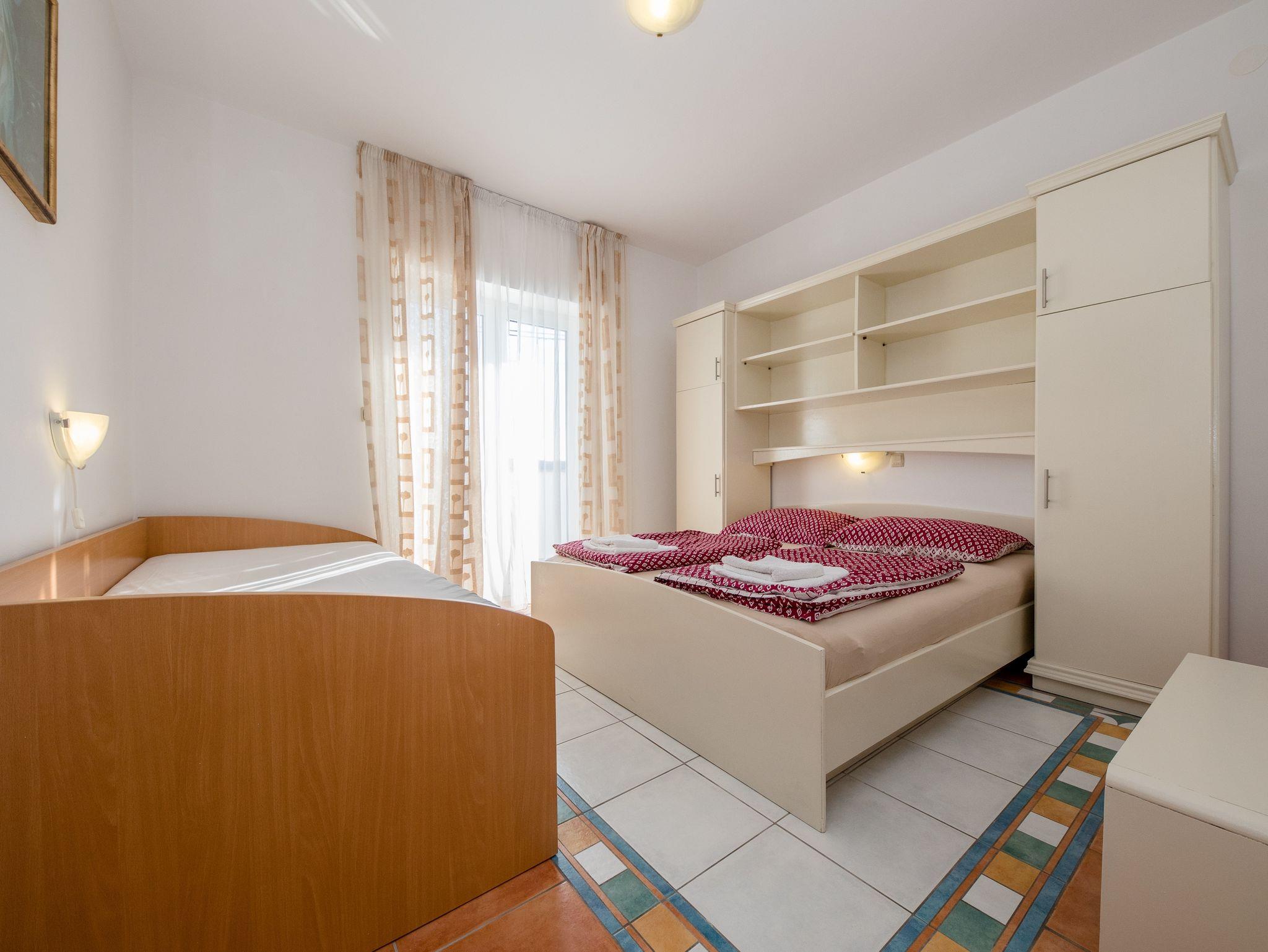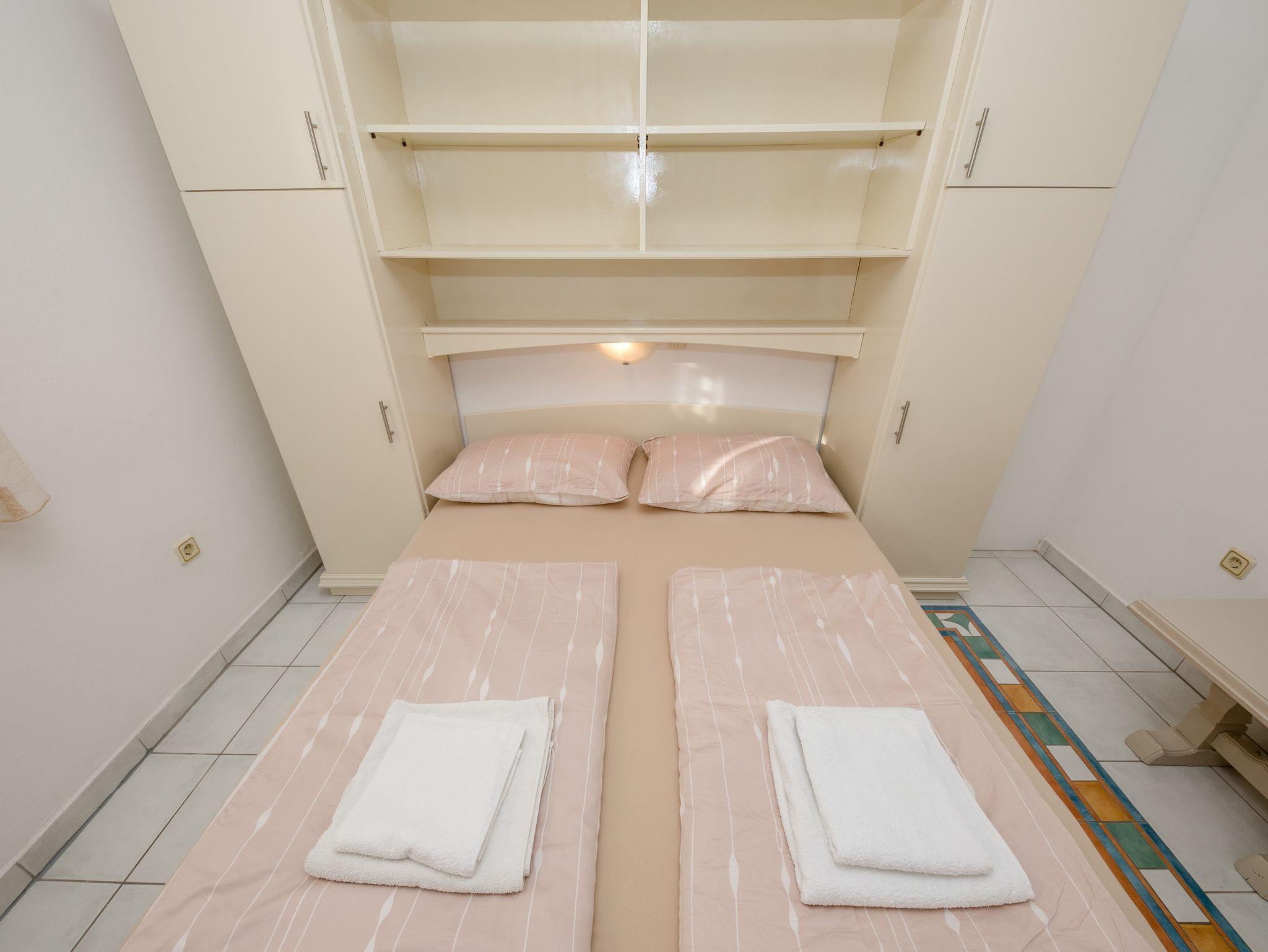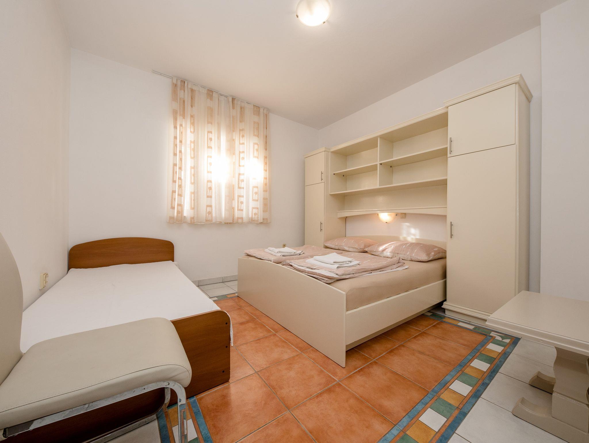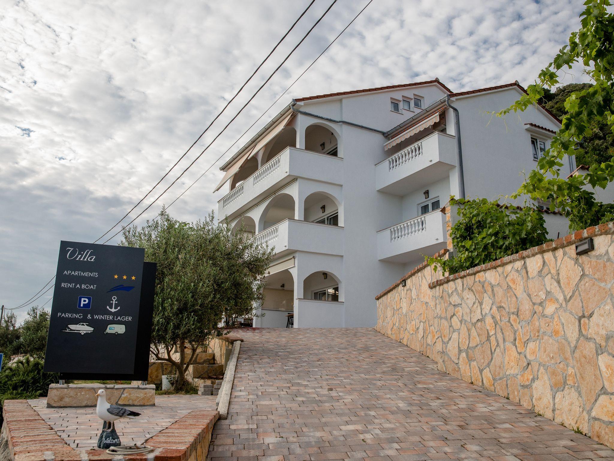 Ferienwohnung bietet Platz für 4 Gäste. Die Betten sind in Schlafzimmern, die es 2 gibt, innerhalb einer Gesamtfläche von 60m2, angeordnet. Die Gäste haben eine eigene Terrasse zur Verfügung, auf der sie in warmen Sommernächten genießen können. Das Apartment bietet Meerblick. Es ist erlaubt, Speisen auf dem Gemeinschafts-Grill vorzubereiten. In der Unterkunftseinheit besteht die Möglichkeit des Mitbringens von Haustieren gegen Aufpreis. IM PREIS INBEGRIFFEN: Kurtaxe, Endreinigung, Klimatisierung, Parkplatz, Internet, tragbarer Grill, Sonnenschirm, Liegestühle. VERBINDLICHE ZUSÄTZLICHE KOSTEN: Aufzahlung für Kurzaufenthalte (prozentualer Zuschlag pro Nächtigungsanzahl: 30% - 1, 20% - 2, 10% - 3). UNVERBINDLICHE ZUSÄTZLICHE KOSTEN: Wäschewaschen (5,00 € Waschen), Boot (160,00 € pro Nacht), Bootsanlegeplatz (20,00 € pro Nacht), Haustiere (5,00 € pro Nacht). Die Verfügbarkeit zusätzlicher Dienstleistungen in Ihrem reservierten Termin und die Preise derselben (falls nicht aufgeführt) müssen im Voraus überprüft werden. Zusätzliche Dienstleistungen die in der Zahlungsaufforderung nicht aufgeführt sind werden direkt beim Vermieter bezahlt, angenommen der Gast nutzt auch diese.