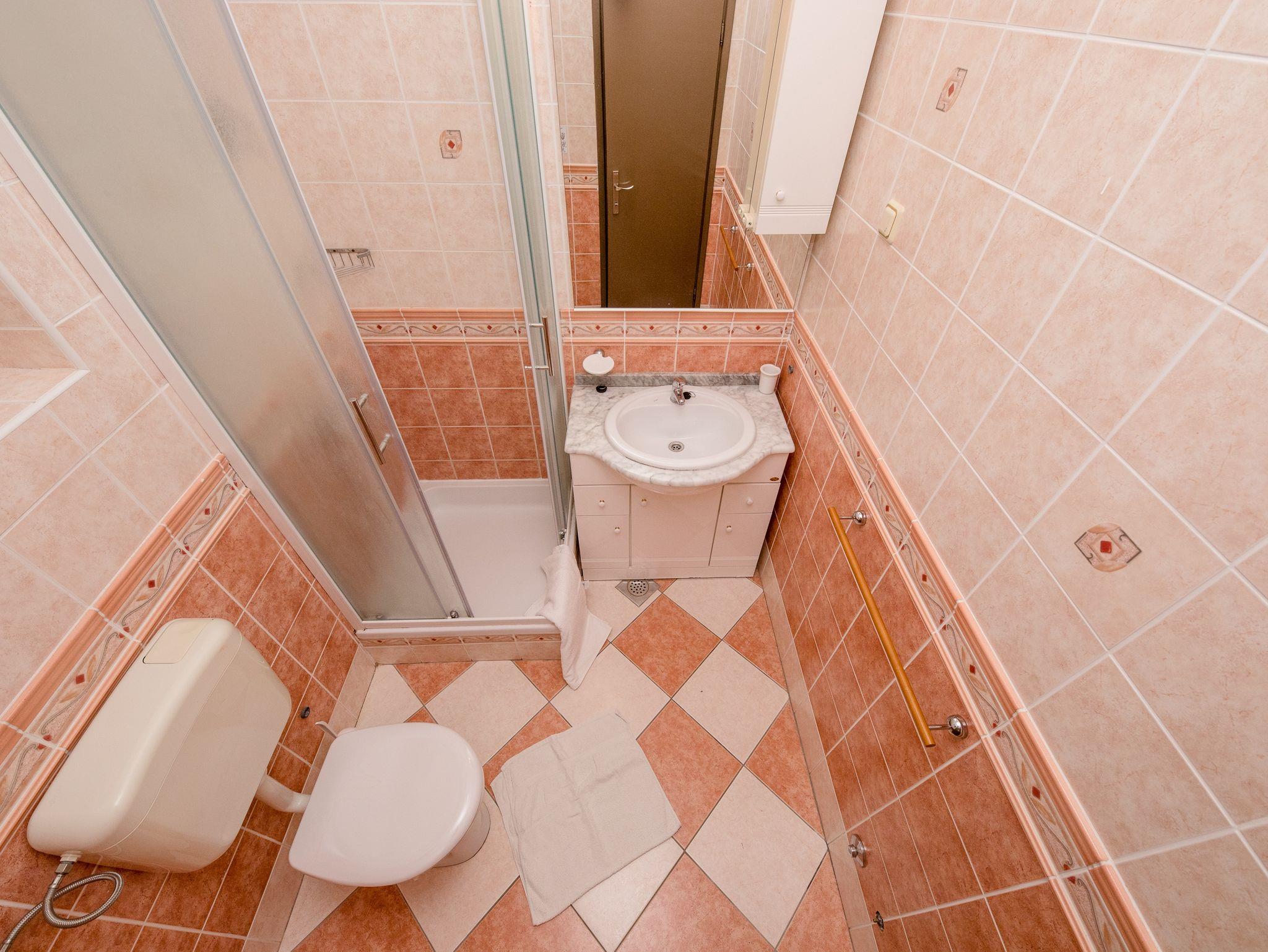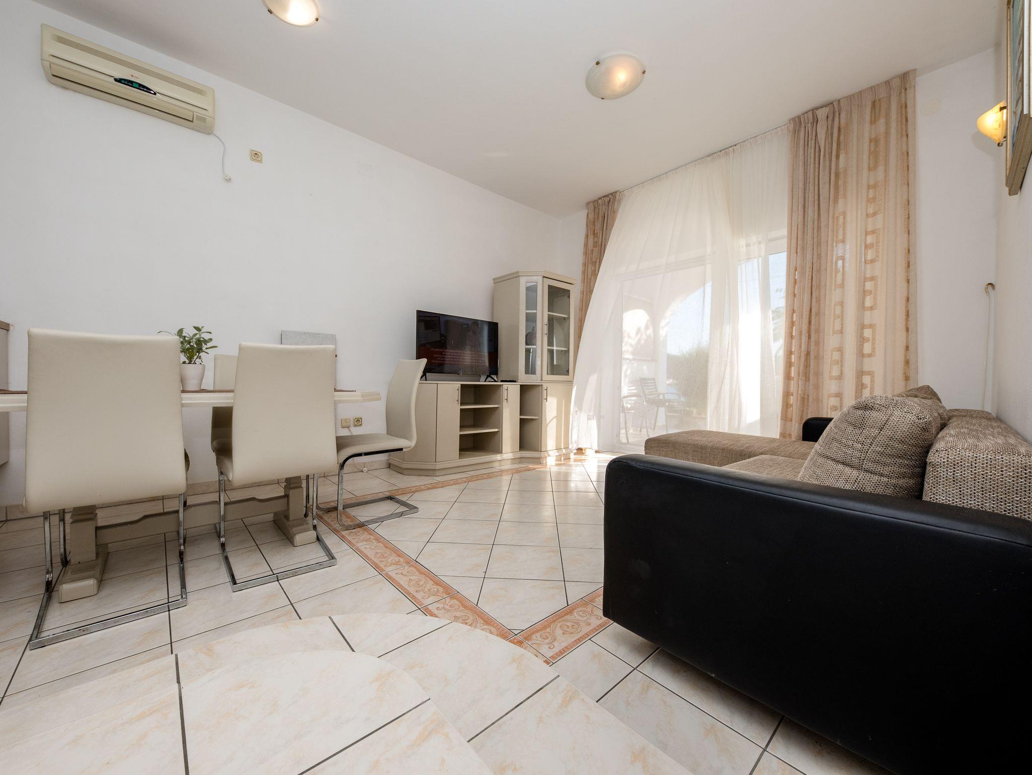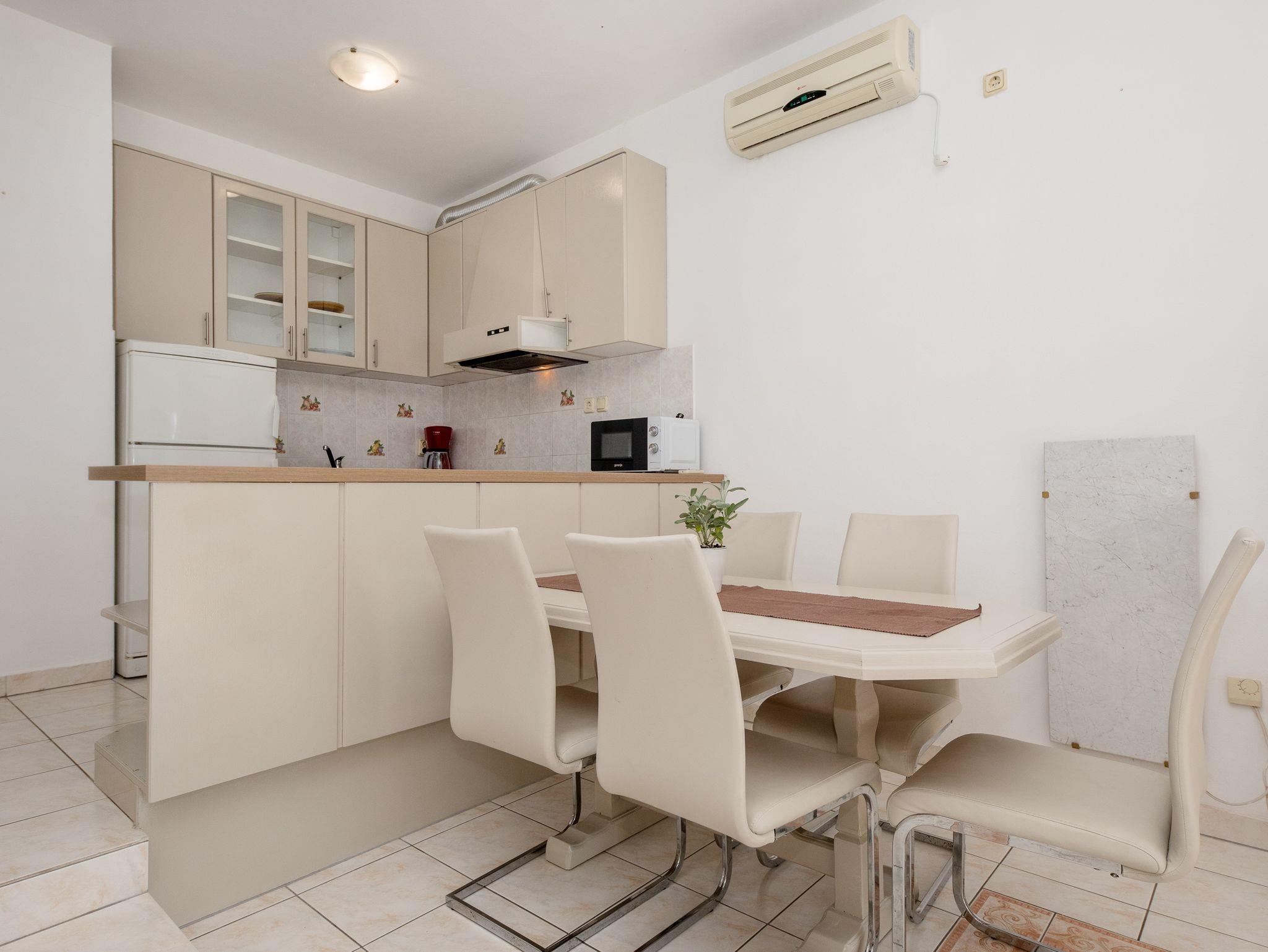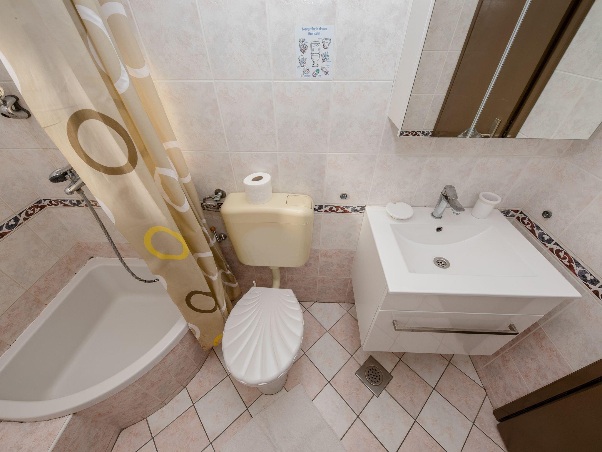 Ferienwohnung bietet Platz für 4 Gäste. Die Betten sind in Schlafzimmern, die es 2 gibt, innerhalb einer Gesamtfläche von 60m2, angeordnet. Die Gäste haben eine eigene Terrasse zur Verfügung, auf der sie in warmen Sommernächten genießen können. Das Apartment bietet Meerblick. Es ist erlaubt, Speisen auf dem Gemeinschafts-Grill vorzubereiten. In der Unterkunftseinheit besteht die Möglichkeit des Mitbringens von Haustieren gegen Aufpreis. IM PREIS INBEGRIFFEN: Kurtaxe, Endreinigung, Klimatisierung, Parkplatz, Internet, tragbarer Grill, Sonnenschirm, Liegestühle. VERBINDLICHE ZUSÄTZLICHE KOSTEN: Aufzahlung für Kurzaufenthalte (prozentualer Zuschlag pro Nächtigungsanzahl: 30% - 1, 20% - 2, 10% - 3). UNVERBINDLICHE ZUSÄTZLICHE KOSTEN: Wäschewaschen (5,00 € Waschen), Boot (160,00 € pro Nacht), Bootsanlegeplatz (20,00 € pro Nacht), Haustiere (5,00 € pro Nacht). Die Verfügbarkeit zusätzlicher Dienstleistungen in Ihrem reservierten Termin und die Preise derselben (falls nicht aufgeführt) müssen im Voraus überprüft werden. Zusätzliche Dienstleistungen die in der Zahlungsaufforderung nicht aufgeführt sind werden direkt beim Vermieter bezahlt, angenommen der Gast nutzt auch diese.