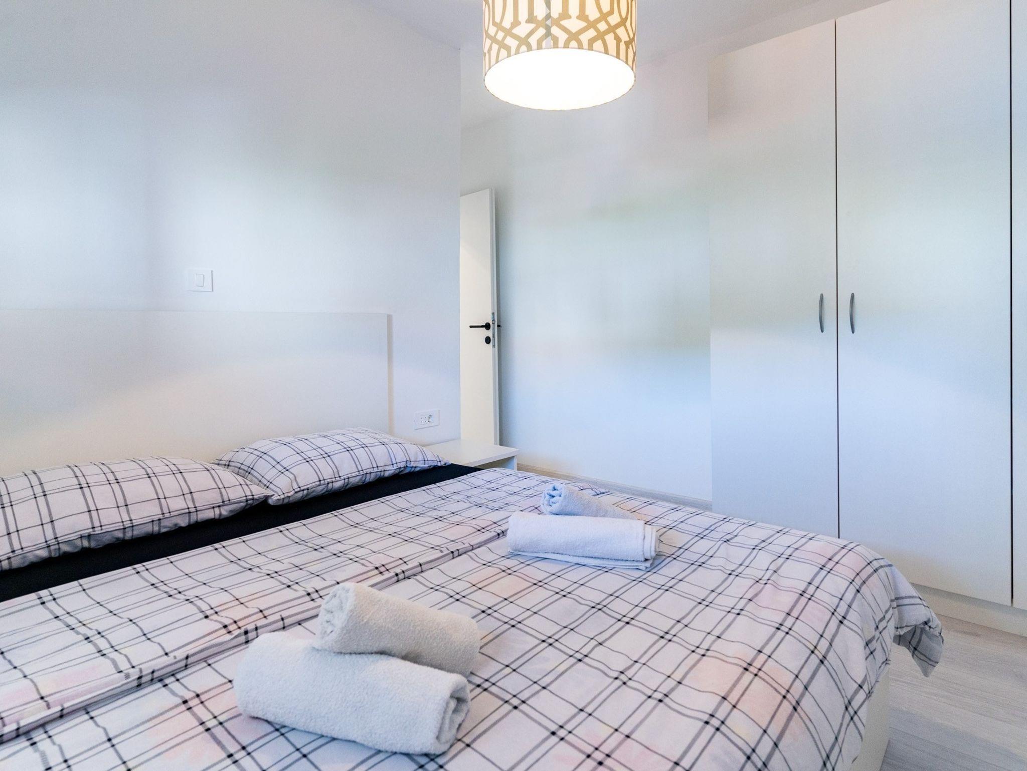 Ferienwohnung bietet Platz für 4 Gäste. Die Betten sind in Schlafzimmern, die es 2 gibt, innerhalb einer Gesamtfläche von 63m2, angeordnet. Die Gäste haben einen eigenen Balkon zur Verfügung, auf der sie in warmen Sommernächten genießen können. Es ist erlaubt, Speisen auf dem Gemeinschafts-Grill vorzubereiten. IM PREIS INBEGRIFFEN: Kurtaxe, Endreinigung, Klimatisierung, Zentralheizung, Parkplatz, Internet, Kinderbett, Föhn. VERBINDLICHE ZUSÄTZLICHE KOSTEN: Aufzahlung für Kurzaufenthalte (prozentualer Zuschlag pro Nächtigungsanzahl: 30% - 1, 20% - 2, 10% - 3). UNVERBINDLICHE ZUSÄTZLICHE KOSTEN: Wäschewaschen (8,00 € Waschen). Die Verfügbarkeit zusätzlicher Dienstleistungen in Ihrem reservierten Termin und die Preise derselben (falls nicht aufgeführt) müssen im Voraus überprüft werden. Zusätzliche Dienstleistungen die in der Zahlungsaufforderung nicht aufgeführt sind werden direkt beim Vermieter bezahlt, angenommen der Gast nutzt auch diese.