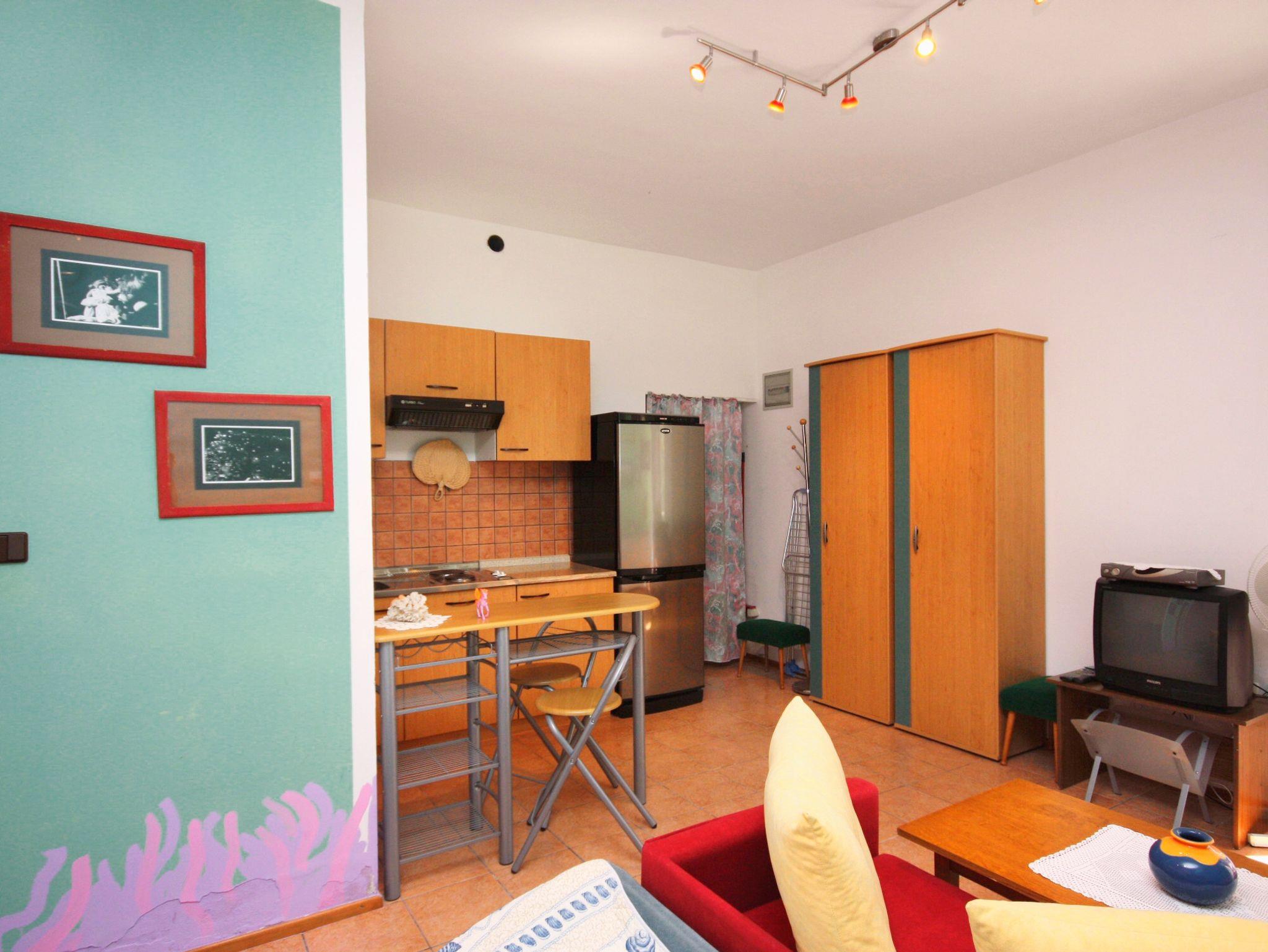 Studio bietet Platz für 2 Gäste. Die Betten sind in Schlafzimmern, die es 1 gibt, innerhalb einer Gesamtfläche von 25m2, angeordnet. Die Gäste haben eine eigene Terrasse zur Verfügung, auf der sie in warmen Sommernächten genießen können. Das Studio-Apartment bietet Meerblick. Es ist erlaubt, Speisen auf dem Gemeinschafts-Grill vorzubereiten. In der Unterkunftseinheit besteht die Möglichkeit des Mitbringens von Haustieren gegen Aufpreis. IM PREIS INBEGRIFFEN: Kurtaxe, Endreinigung, Zentralheizung, Parkplatz, Internet. VERBINDLICHE ZUSÄTZLICHE KOSTEN: Aufzahlung für Kurzaufenthalte (prozentualer Zuschlag pro Nächtigungsanzahl: 30% - 1, 20% - 2, 10% - 3). UNVERBINDLICHE ZUSÄTZLICHE KOSTEN: Klimatisierung (5,00 € pro Nacht), Wäschewaschen (3,00 € Waschen), Bootsanlegeplatz (3,00 € pro Nacht), Haustiere (5,00 € pro Nacht). Die Verfügbarkeit zusätzlicher Dienstleistungen in Ihrem reservierten Termin und die Preise derselben (falls nicht aufgeführt) müssen im Voraus überprüft werden. Zusätzliche Dienstleistungen die in der Zahlungsaufforderung nicht aufgeführt sind werden direkt beim Vermieter bezahlt, angenommen der Gast nutzt auch diese.
