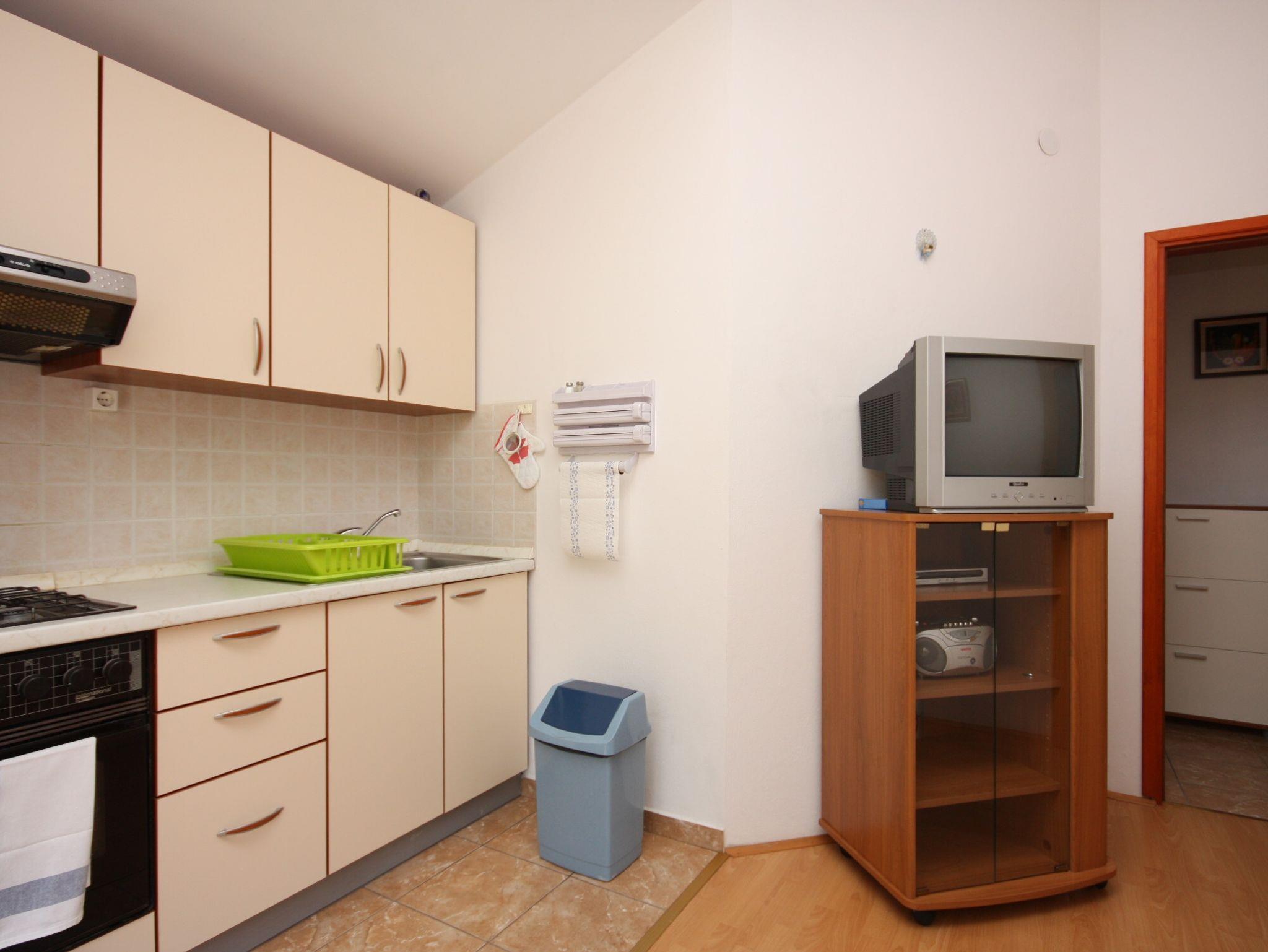 Ferienwohnung bietet Platz für 2 Gäste. Die Betten sind in Schlafzimmern, die es 1 gibt, innerhalb einer Gesamtfläche von 33m2, angeordnet. Die Gäste haben eine eigene Terrasse zur Verfügung, auf der sie in warmen Sommernächten genießen können. Das Apartment bietet Meerblick. Es ist erlaubt, Speisen auf dem Gemeinschafts-Grill vorzubereiten. IM PREIS INBEGRIFFEN: Kurtaxe, Endreinigung, Klimatisierung, Parkplatz, Internet, Bügeleisen, Bügelbrett, Föhn. VERBINDLICHE ZUSÄTZLICHE KOSTEN: Aufzahlung für Kurzaufenthalte (prozentualer Zuschlag pro Nächtigungsanzahl: 30% - 1, 20% - 2, 10% - 3). Die Verfügbarkeit zusätzlicher Dienstleistungen in Ihrem reservierten Termin und die Preise derselben (falls nicht aufgeführt) müssen im Voraus überprüft werden. Zusätzliche Dienstleistungen die in der Zahlungsaufforderung nicht aufgeführt sind werden direkt beim Vermieter bezahlt, angenommen der Gast nutzt auch diese.