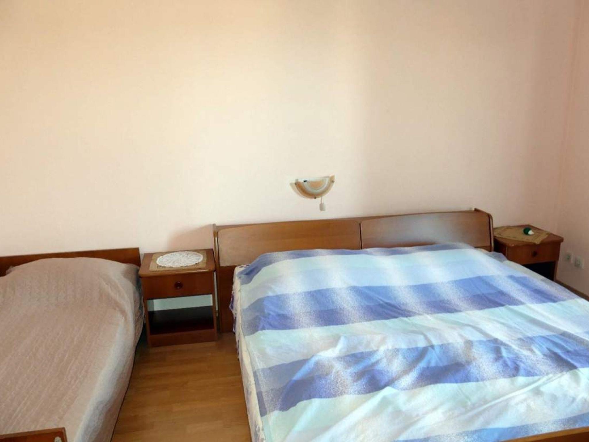 Ferienwohnung bietet Platz für 5 Gäste. Die Betten sind in Schlafzimmern, die es 2 gibt, innerhalb einer Gesamtfläche von 54m2, angeordnet. Die Gäste haben eine eigene Terrasse zur Verfügung, auf der sie in warmen Sommernächten genießen können. Das Apartment bietet Meerblick. Es ist erlaubt, Speisen auf dem Gemeinschafts-Grill vorzubereiten. In der Unterkunftseinheit besteht die Möglichkeit des Mitbringens von Haustieren gegen Aufpreis. IM PREIS INBEGRIFFEN: Kurtaxe, Endreinigung, Klimatisierung, Parkplatz, Internet. VERBINDLICHE ZUSÄTZLICHE KOSTEN: Aufzahlung für Kurzaufenthalte (prozentualer Zuschlag pro Nächtigungsanzahl: 30% - 1, 20% - 2, 10% - 3). UNVERBINDLICHE ZUSÄTZLICHE KOSTEN: Bootsanlegeplatz (6,00 € pro Nacht), Haustiere (10,00 € pro Nacht). Die Verfügbarkeit zusätzlicher Dienstleistungen in Ihrem reservierten Termin und die Preise derselben (falls nicht aufgeführt) müssen im Voraus überprüft werden. Zusätzliche Dienstleistungen die in der Zahlungsaufforderung nicht aufgeführt sind werden direkt beim Vermieter bezahlt, angenommen der Gast nutzt auch diese.
