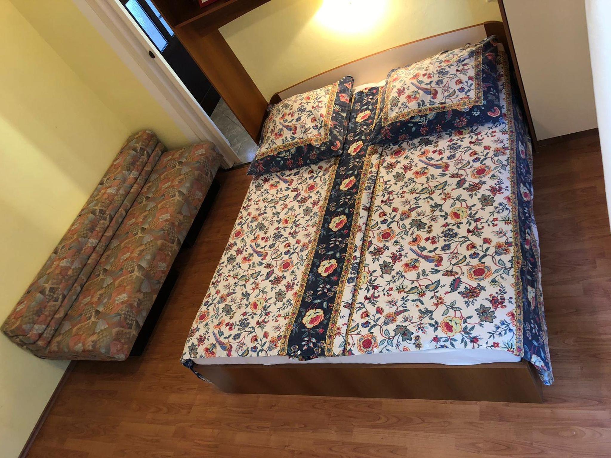 Ferienwohnung bietet Platz für 4 Gäste. Die Betten sind in Schlafzimmern, die es 1 gibt, und in Wohnzimmer, innerhalb einer Gesamtfläche von 35m2, angeordnet. Die Gäste haben eine eigene Terrasse zur Verfügung, auf der sie in warmen Sommernächten genießen können. Das Apartment bietet Meerblick. Es ist erlaubt, Speisen auf dem Gemeinschafts-Grill vorzubereiten. In der Unterkunftseinheit besteht die Möglichkeit des Mitbringens von Haustieren gegen Aufpreis. IM PREIS INBEGRIFFEN: Kurtaxe, Endreinigung, Klimatisierung, Parkplatz, Internet, Kinderbett. VERBINDLICHE ZUSÄTZLICHE KOSTEN: Aufzahlung für Kurzaufenthalte (prozentualer Zuschlag pro Nächtigungsanzahl: 30% - 1, 20% - 2, 10% - 3). UNVERBINDLICHE ZUSÄTZLICHE KOSTEN: Haustiere (7,00 € pro Nacht). Die Verfügbarkeit zusätzlicher Dienstleistungen in Ihrem reservierten Termin und die Preise derselben (falls nicht aufgeführt) müssen im Voraus überprüft werden. Zusätzliche Dienstleistungen die in der Zahlungsaufforderung nicht aufgeführt sind werden direkt beim Vermieter bezahlt, angenommen der Gast nutzt auch diese.