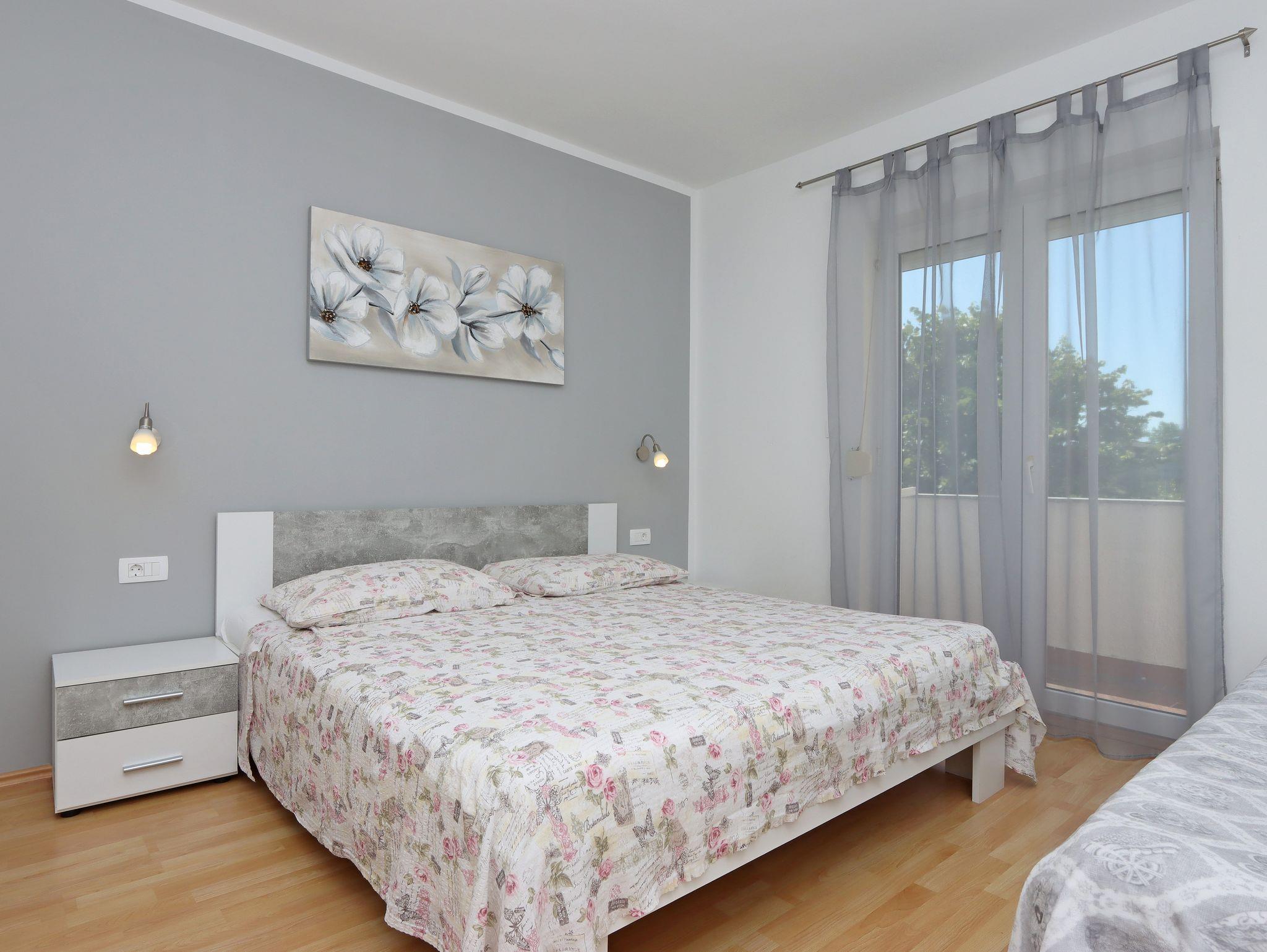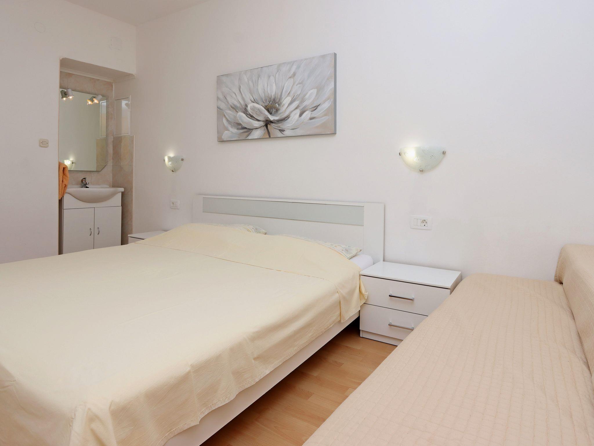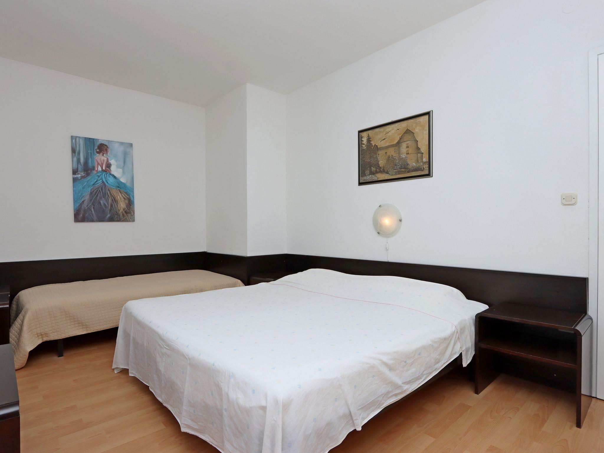 Ferienwohnung bietet Platz für 9 Gäste. Die Betten sind in Schlafzimmern, die es 3 gibt, innerhalb einer Gesamtfläche von 94m2, angeordnet. Die Gäste haben eine eigene Terrasse zur Verfügung, auf der sie in warmen Sommernächten genießen können. Das Apartment bietet Meerblick. Es ist erlaubt, Speisen auf dem Gemeinschafts-Grill vorzubereiten. In der Unterkunftseinheit besteht die Möglichkeit des Mitbringens von Haustieren gegen Aufpreis. IM PREIS INBEGRIFFEN: Kurtaxe, Endreinigung, Klimatisierung, Parkplatz, Internet, Kinderbett, Bügeleisen, Bügelbrett, Föhn. VERBINDLICHE ZUSÄTZLICHE KOSTEN: Aufzahlung für Kurzaufenthalte (prozentualer Zuschlag pro Nächtigungsanzahl: 30% - 1, 20% - 2, 10% - 3). UNVERBINDLICHE ZUSÄTZLICHE KOSTEN: Wäschewaschen (5,00 € Waschen), Haustiere (10,00 € pro Nacht). Die Verfügbarkeit zusätzlicher Dienstleistungen in Ihrem reservierten Termin und die Preise derselben (falls nicht aufgeführt) müssen im Voraus überprüft werden. Zusätzliche Dienstleistungen die in der Zahlungsaufforderung nicht aufgeführt sind werden direkt beim Vermieter bezahlt, angenommen der Gast nutzt auch diese. Ermäßigung auf den Grundpreis: Gratistag 14=13 (bei einem Aufenthalt von 14 Tagen oder mehr erhalten Sie einen Gratistag für den Aufenthalt bis 31.12.26).
