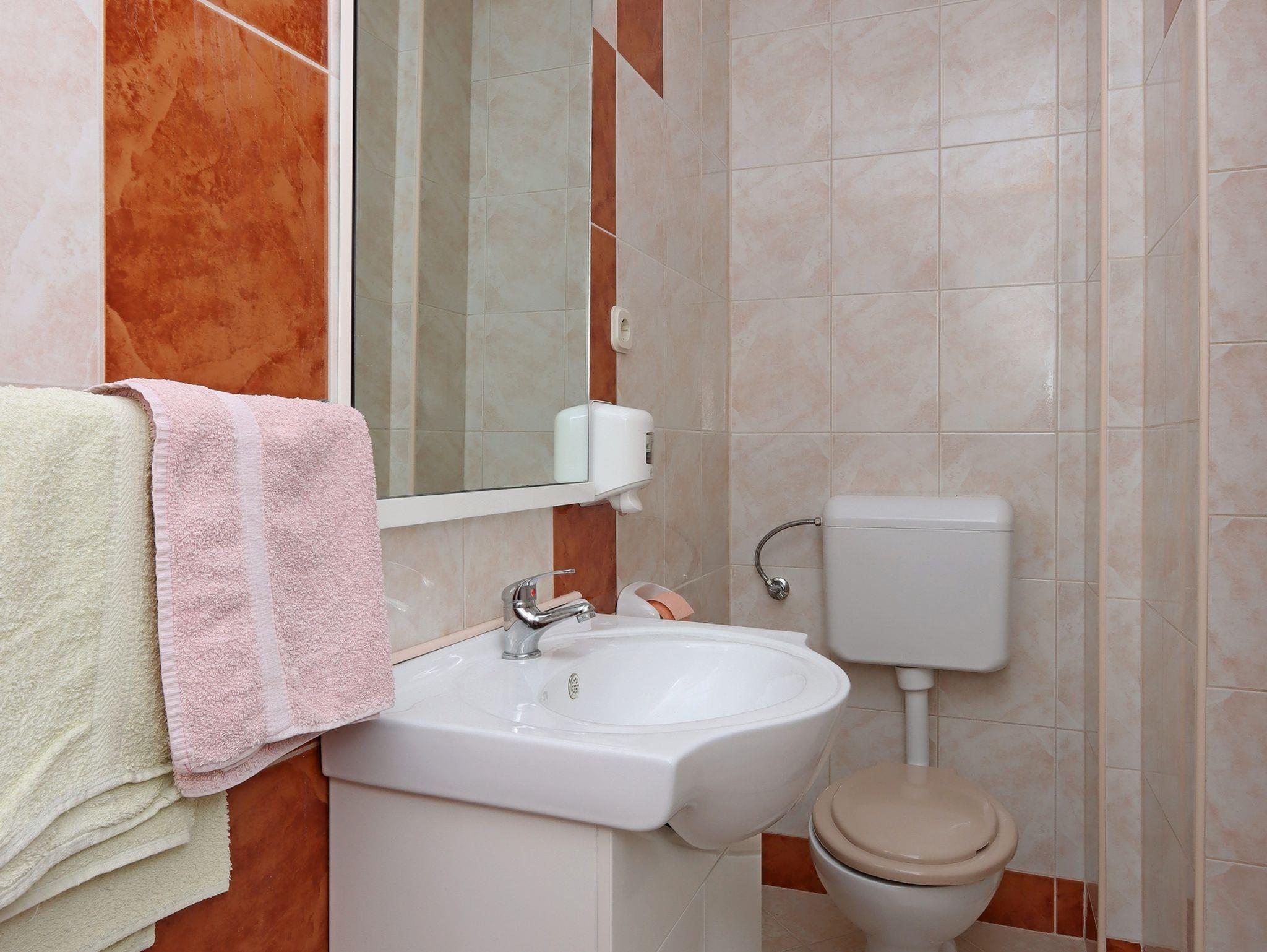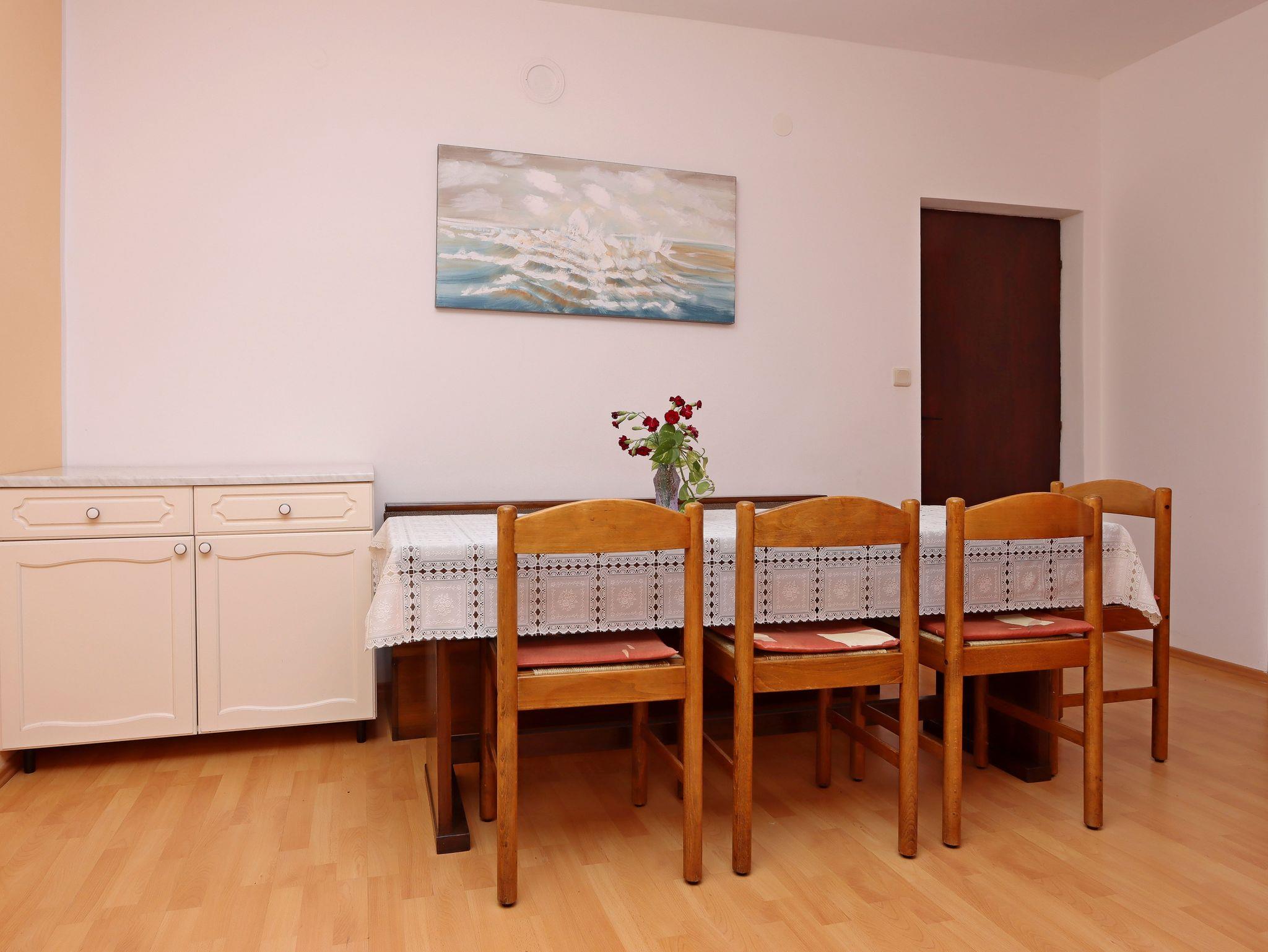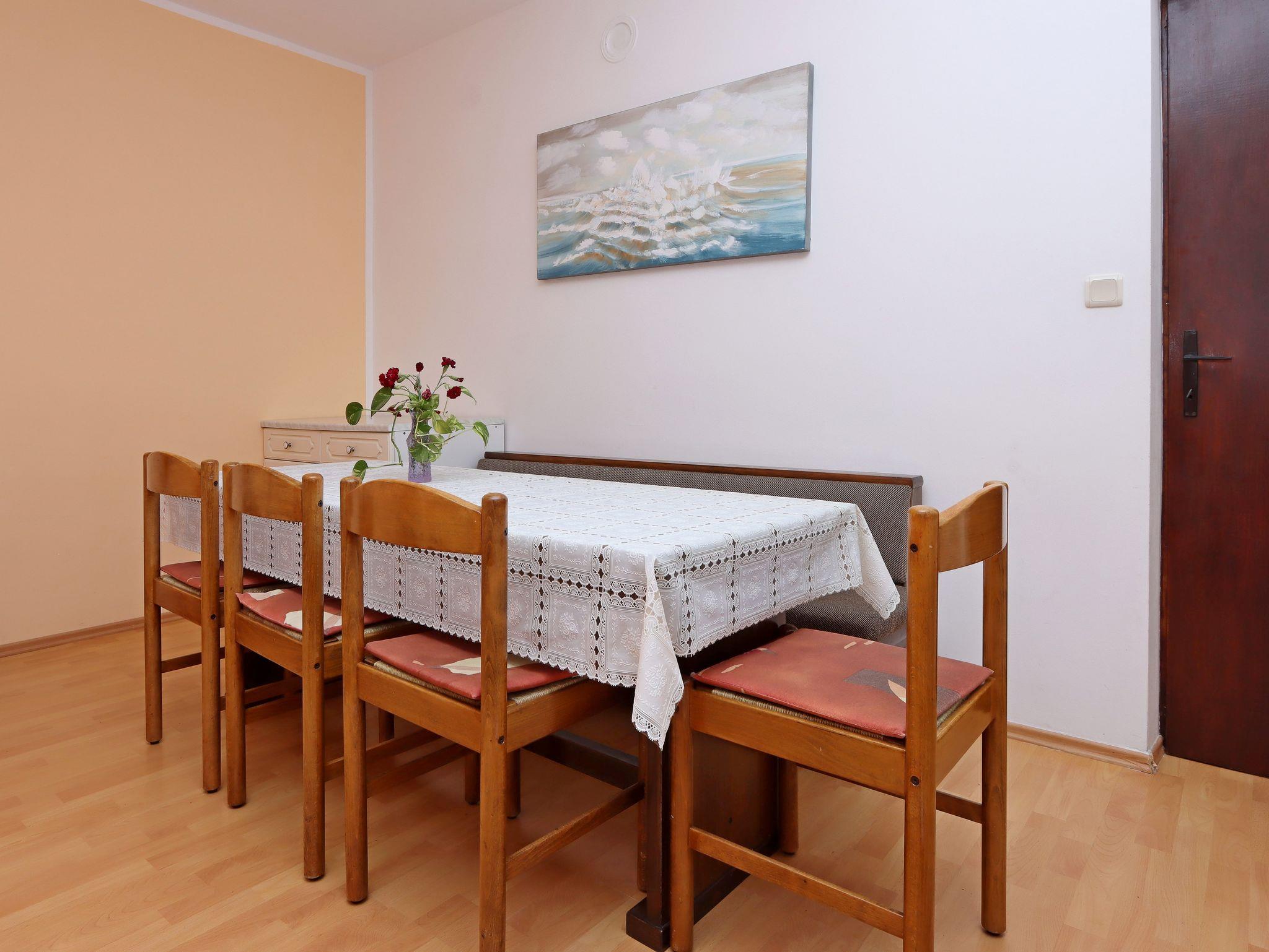 Ferienwohnung bietet Platz für 9 Gäste. Die Betten sind in Schlafzimmern, die es 3 gibt, innerhalb einer Gesamtfläche von 94m2, angeordnet. Die Gäste haben eine eigene Terrasse zur Verfügung, auf der sie in warmen Sommernächten genießen können. Das Apartment bietet Meerblick. Es ist erlaubt, Speisen auf dem Gemeinschafts-Grill vorzubereiten. In der Unterkunftseinheit besteht die Möglichkeit des Mitbringens von Haustieren gegen Aufpreis. IM PREIS INBEGRIFFEN: Kurtaxe, Endreinigung, Klimatisierung, Parkplatz, Internet, Kinderbett, Bügeleisen, Bügelbrett, Föhn. VERBINDLICHE ZUSÄTZLICHE KOSTEN: Aufzahlung für Kurzaufenthalte (prozentualer Zuschlag pro Nächtigungsanzahl: 30% - 1, 20% - 2, 10% - 3). UNVERBINDLICHE ZUSÄTZLICHE KOSTEN: Wäschewaschen (5,00 € Waschen), Haustiere (10,00 € pro Nacht). Die Verfügbarkeit zusätzlicher Dienstleistungen in Ihrem reservierten Termin und die Preise derselben (falls nicht aufgeführt) müssen im Voraus überprüft werden. Zusätzliche Dienstleistungen die in der Zahlungsaufforderung nicht aufgeführt sind werden direkt beim Vermieter bezahlt, angenommen der Gast nutzt auch diese. Ermäßigung auf den Grundpreis: Gratistag 14=13 (bei einem Aufenthalt von 14 Tagen oder mehr erhalten Sie einen Gratistag für den Aufenthalt bis 31.12.26).