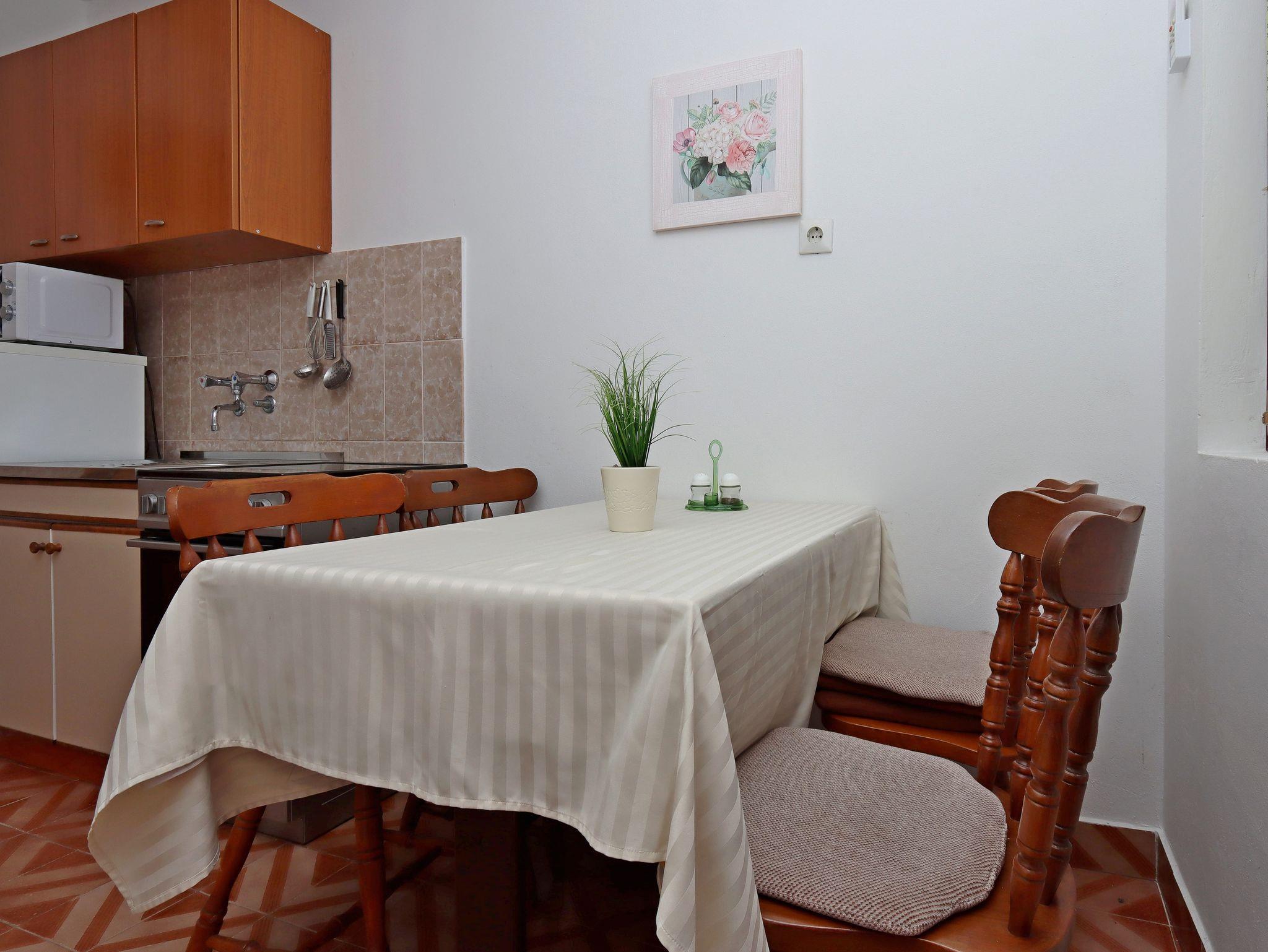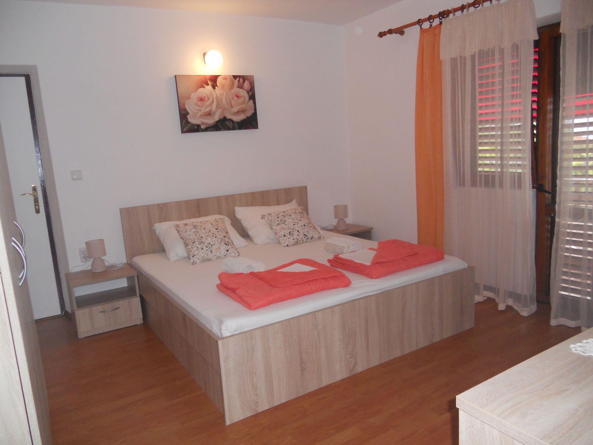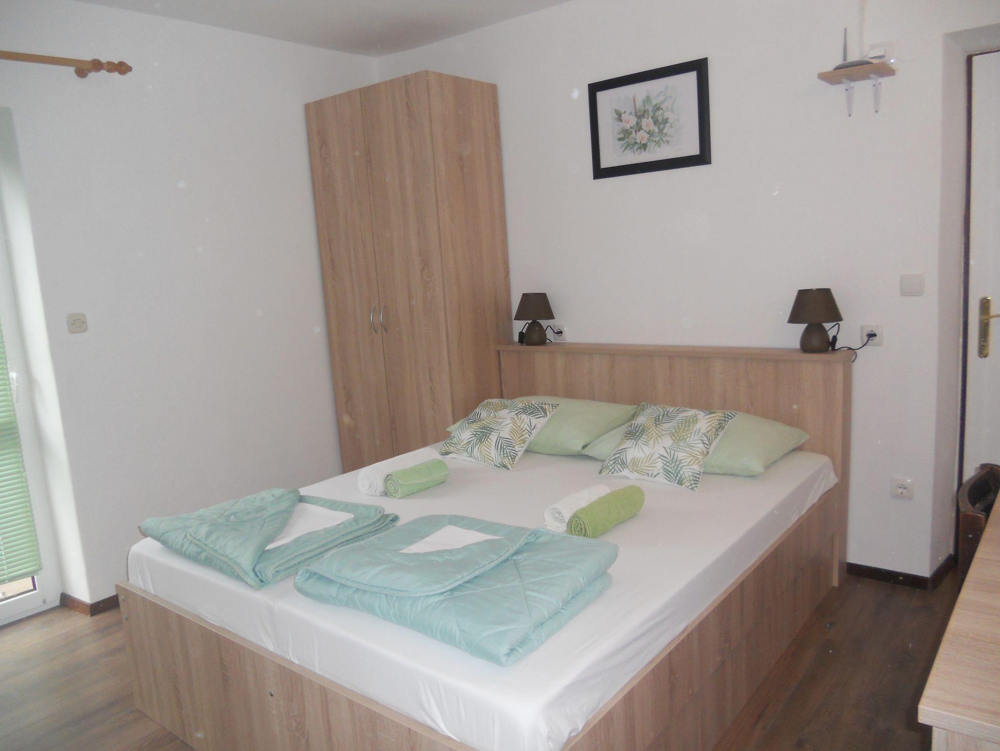 Ferienwohnung bietet Platz für 4 Gäste. Die Betten sind in Schlafzimmern, die es 2 gibt, innerhalb einer Gesamtfläche von 41m2, angeordnet. Die Gäste haben eine eigene Terrasse zur Verfügung, auf der sie in warmen Sommernächten genießen können. Das Apartment bietet Meerblick. Es ist erlaubt, Speisen auf dem Gemeinschafts-Grill vorzubereiten. In der Unterkunftseinheit besteht die Möglichkeit des Mitbringens von Haustieren gegen Aufpreis. IM PREIS INBEGRIFFEN: Kurtaxe, Endreinigung, Parkplatz, Internet, Wäschewaschen, Zusatzbett, Bügeleisen. VERBINDLICHE ZUSÄTZLICHE KOSTEN: Aufzahlung für Kurzaufenthalte (prozentualer Zuschlag pro Nächtigungsanzahl: 30% - 1, 20% - 2, 10% - 3). UNVERBINDLICHE ZUSÄTZLICHE KOSTEN: Klimatisierung (5,00 € pro Nacht), Bootsanlegeplatz (7,00 € pro Nacht), Haustiere (3,00 € pro Nacht). Die Verfügbarkeit zusätzlicher Dienstleistungen in Ihrem reservierten Termin und die Preise derselben (falls nicht aufgeführt) müssen im Voraus überprüft werden. Zusätzliche Dienstleistungen die in der Zahlungsaufforderung nicht aufgeführt sind werden direkt beim Vermieter bezahlt, angenommen der Gast nutzt auch diese.