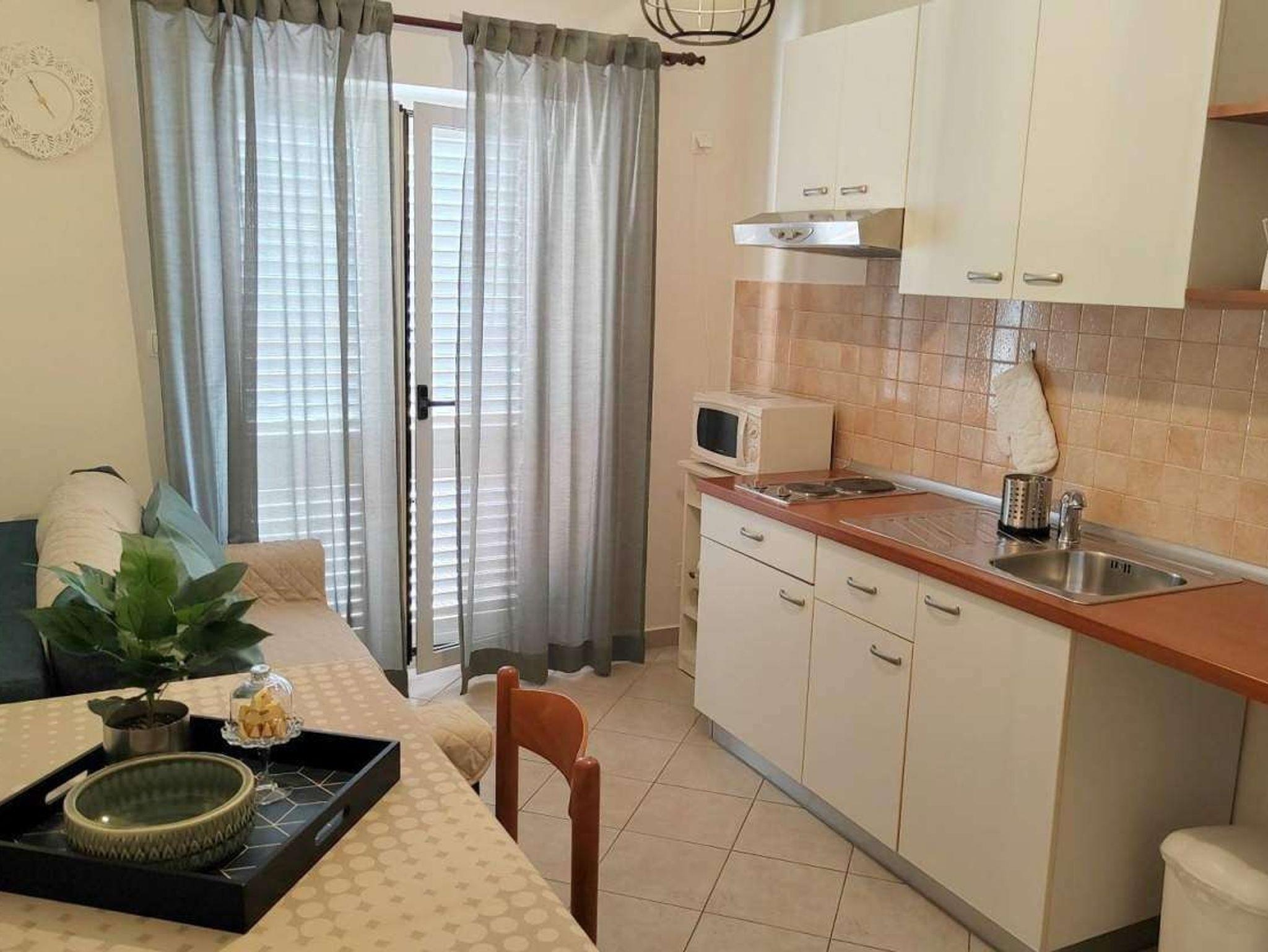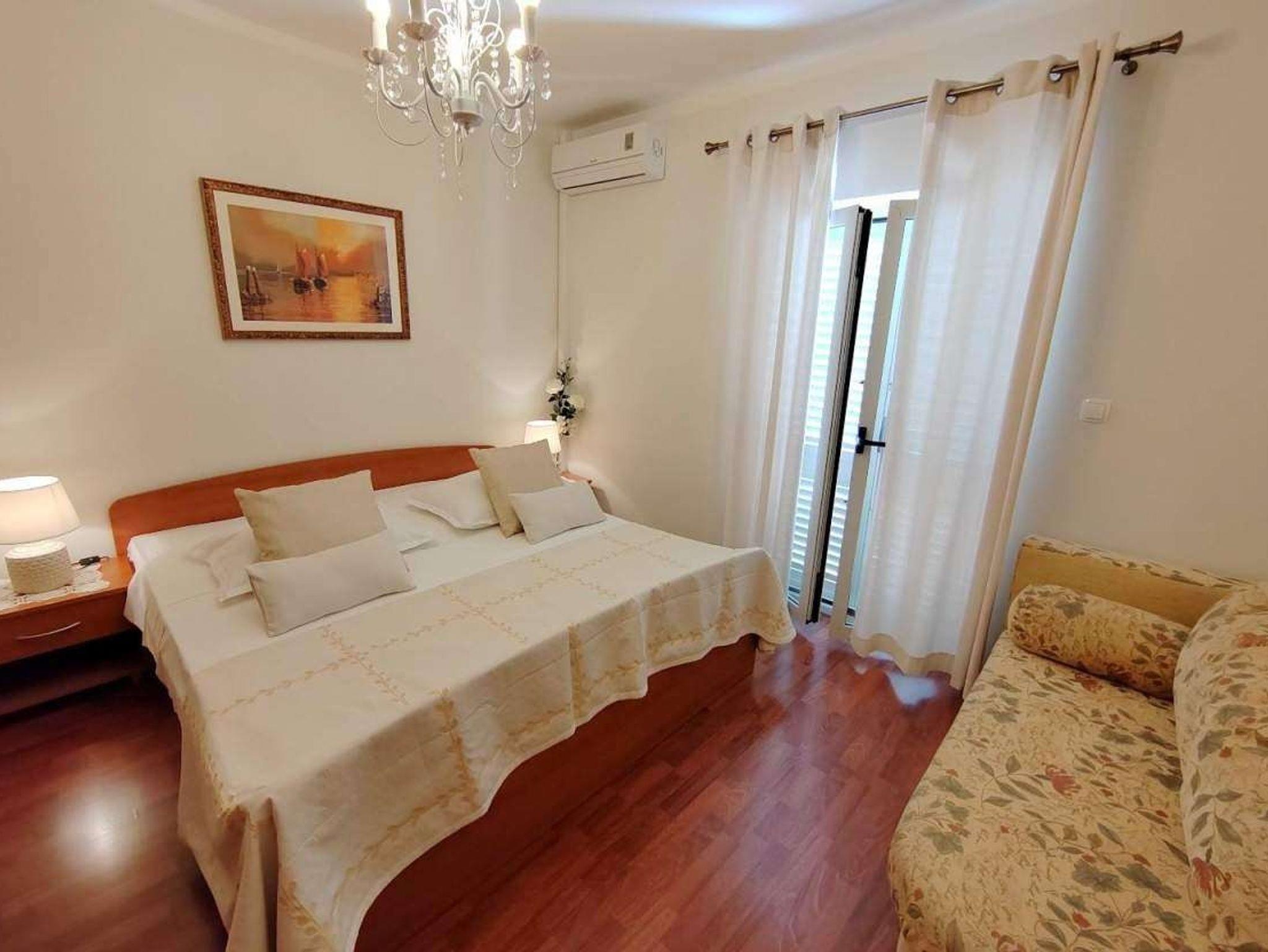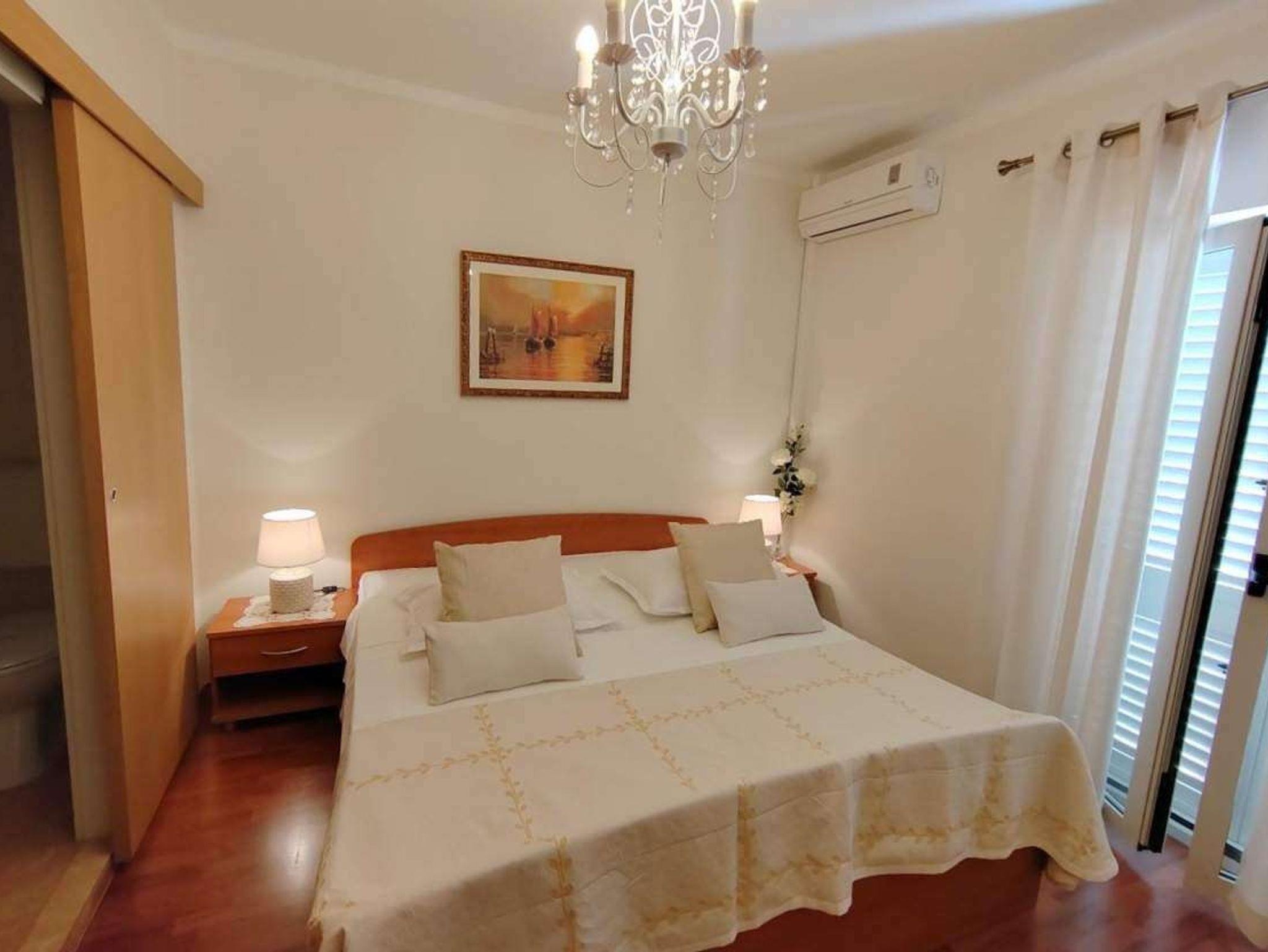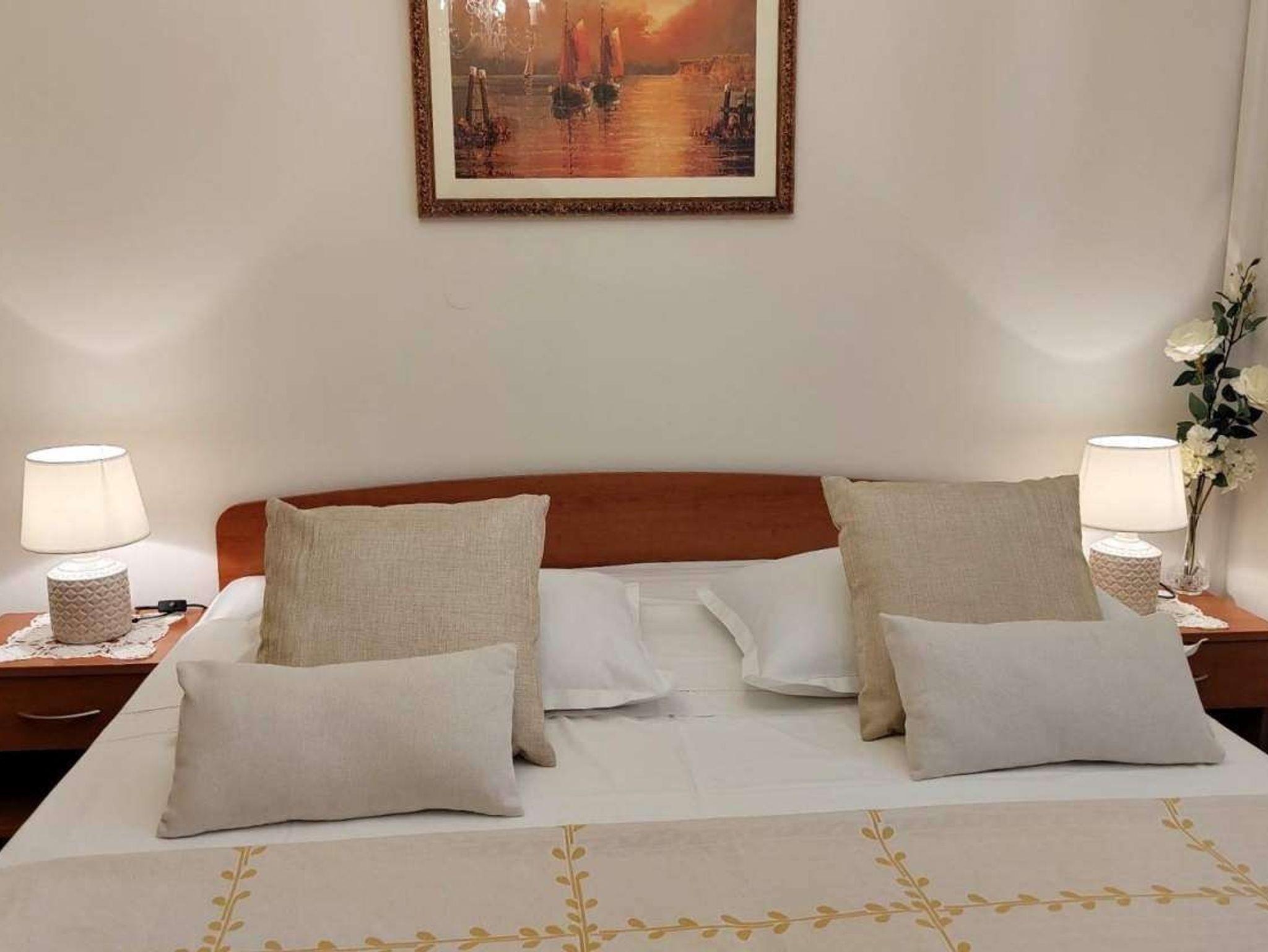 Ferienwohnung bietet Platz für 4 Gäste. Die Betten sind in Schlafzimmern, die es 2 gibt, innerhalb einer Gesamtfläche von 55m2, angeordnet. Die Gäste haben eine eigene Terrasse zur Verfügung, auf der sie in warmen Sommernächten genießen können. Das Apartment bietet Meerblick. IM PREIS INBEGRIFFEN: Kurtaxe, Endreinigung, Klimatisierung, Parkplatz, Internet. VERBINDLICHE ZUSÄTZLICHE KOSTEN: Aufzahlung für Kurzaufenthalte (prozentualer Zuschlag pro Nächtigungsanzahl: 30% - 1, 20% - 2, 10% - 3). UNVERBINDLICHE ZUSÄTZLICHE KOSTEN: Bootsanlegeplatz (10,00 € pro Nacht). Die Verfügbarkeit zusätzlicher Dienstleistungen in Ihrem reservierten Termin und die Preise derselben (falls nicht aufgeführt) müssen im Voraus überprüft werden. Zusätzliche Dienstleistungen die in der Zahlungsaufforderung nicht aufgeführt sind werden direkt beim Vermieter bezahlt, angenommen der Gast nutzt auch diese.