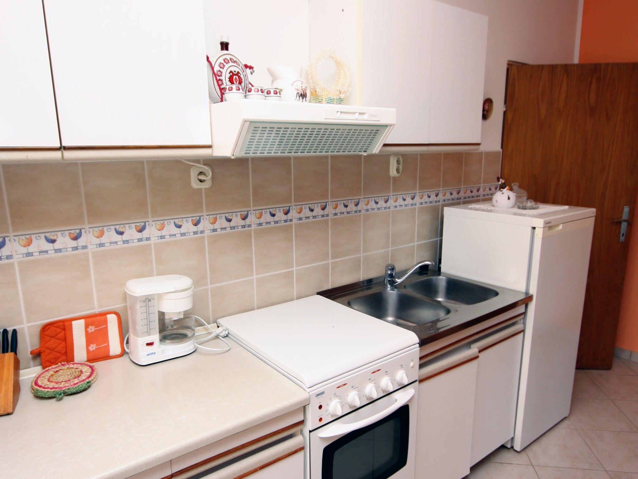 Ferienwohnung bietet Platz für 3 Gäste. Die Betten sind in Schlafzimmern, die es 1 gibt, und in Wohnzimmer, innerhalb einer Gesamtfläche von 44m2, angeordnet. Die Gäste haben eine eigene Terrasse zur Verfügung, auf der sie in warmen Sommernächten genießen können. Das Apartment bietet Meerblick. Es ist erlaubt, Speisen auf dem Gemeinschafts-Grill vorzubereiten. IM PREIS INBEGRIFFEN: Kurtaxe, Endreinigung, Parkplatz. VERBINDLICHE ZUSÄTZLICHE KOSTEN: Aufzahlung für Kurzaufenthalte (prozentualer Zuschlag pro Nächtigungsanzahl: 30% - 1, 20% - 2, 10% - 3). UNVERBINDLICHE ZUSÄTZLICHE KOSTEN: Klimatisierung (5,00 € pro Nacht). Die Verfügbarkeit zusätzlicher Dienstleistungen in Ihrem reservierten Termin und die Preise derselben (falls nicht aufgeführt) müssen im Voraus überprüft werden. Zusätzliche Dienstleistungen die in der Zahlungsaufforderung nicht aufgeführt sind werden direkt beim Vermieter bezahlt, angenommen der Gast nutzt auch diese. Ermäßigung auf den Grundpreis: Gratistag 14=13 (bei einem Aufenthalt von 14 Tagen oder mehr erhalten Sie einen Gratistag für den Aufenthalt bis 31.12.26).
