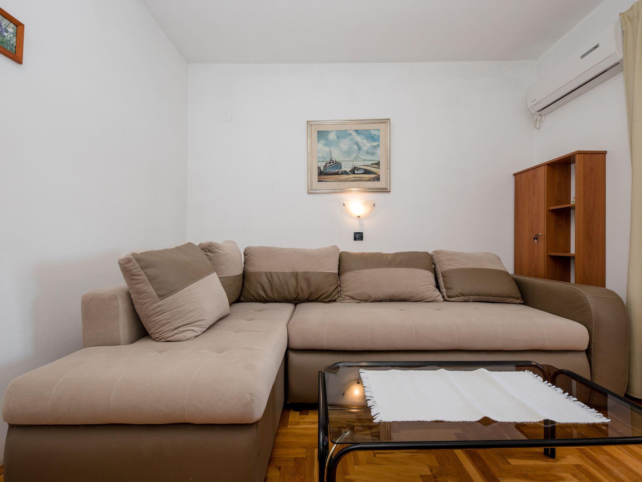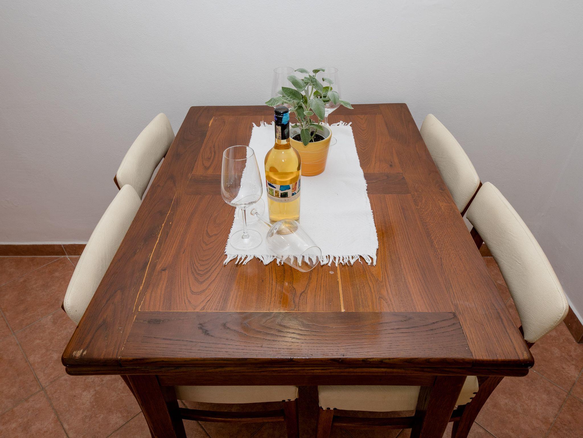 Ferienwohnung bietet Platz für 2 Gäste. Die Betten sind in Schlafzimmern, die es 1 gibt, innerhalb einer Gesamtfläche von 38m2, angeordnet. Die Gäste haben eine eigene Terrasse zur Verfügung, auf der sie in warmen Sommernächten genießen können. Das Apartment bietet Meerblick. Es ist erlaubt, Speisen auf dem Gemeinschafts-Grill vorzubereiten. In der Unterkunftseinheit besteht die Möglichkeit des Mitbringens von Haustieren gegen Aufpreis. IM PREIS INBEGRIFFEN: Kurtaxe, Endreinigung, Klimatisierung, Parkplatz, Internet, tragbarer Grill, Sonnenschirm, Liegestühle. VERBINDLICHE ZUSÄTZLICHE KOSTEN: Aufzahlung für Kurzaufenthalte (prozentualer Zuschlag pro Nächtigungsanzahl: 30% - 1, 20% - 2, 10% - 3). UNVERBINDLICHE ZUSÄTZLICHE KOSTEN: Wäschewaschen (5,00 € Waschen), Boot (160,00 € pro Nacht), Bootsanlegeplatz (20,00 € pro Nacht), Haustiere (5,00 € pro Nacht). Die Verfügbarkeit zusätzlicher Dienstleistungen in Ihrem reservierten Termin und die Preise derselben (falls nicht aufgeführt) müssen im Voraus überprüft werden. Zusätzliche Dienstleistungen die in der Zahlungsaufforderung nicht aufgeführt sind werden direkt beim Vermieter bezahlt, angenommen der Gast nutzt auch diese.