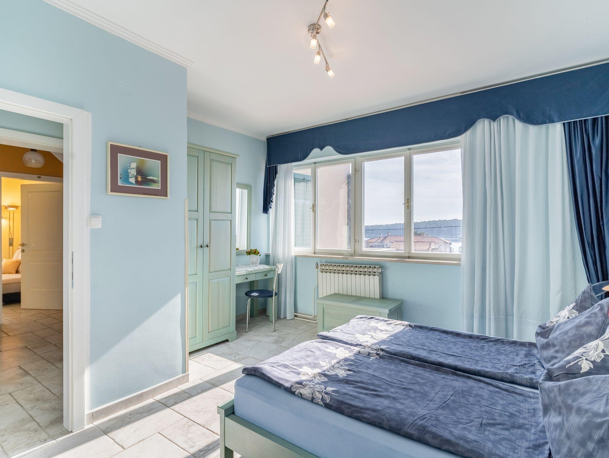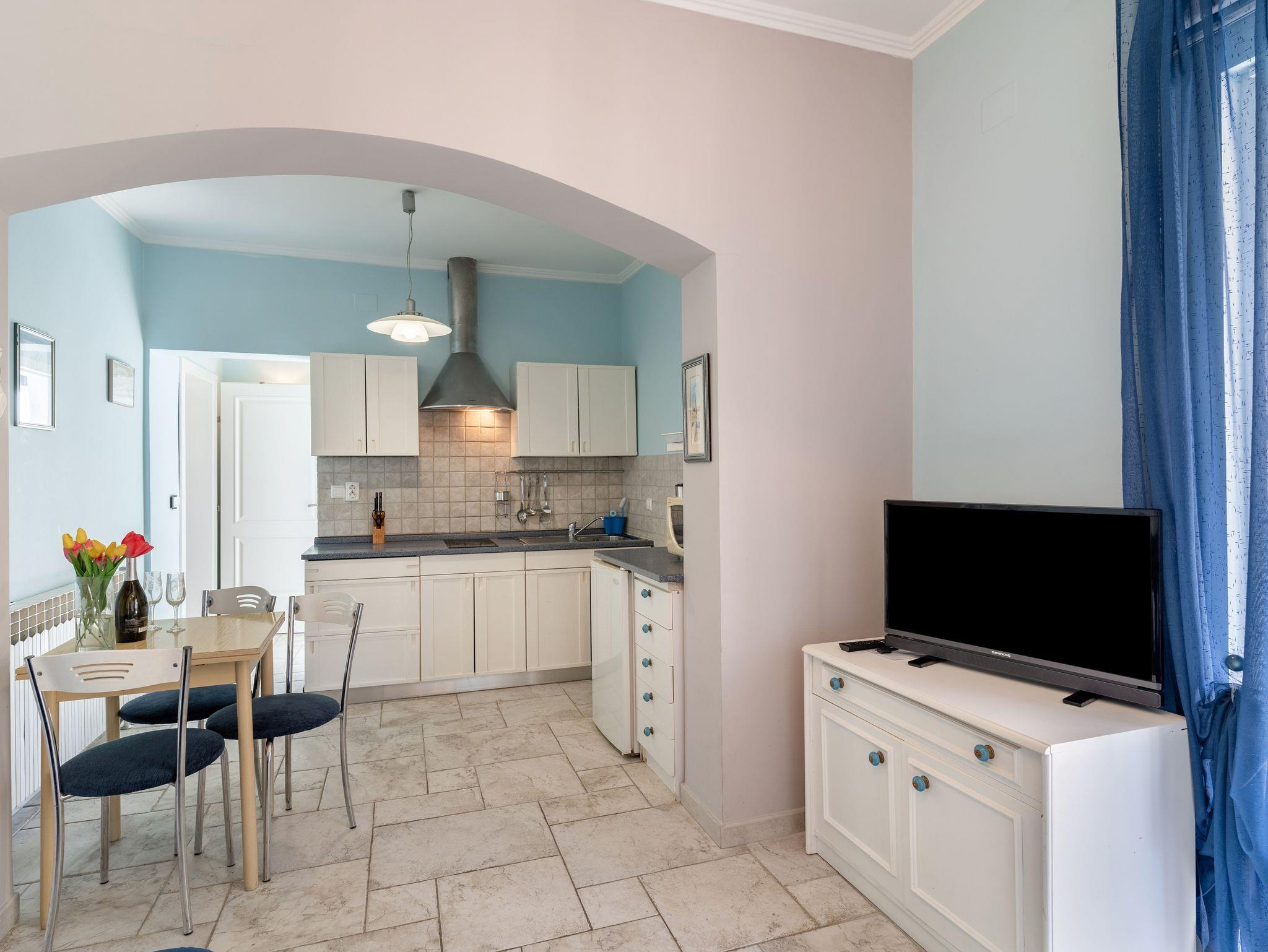 Ferienwohnung bietet Platz für 2 Gäste. Die Betten sind in Schlafzimmern, die es 1 gibt, innerhalb einer Gesamtfläche von 35m2, angeordnet. Die Gäste haben eine eigene Terrasse zur Verfügung, auf der sie in warmen Sommernächten genießen können. Das Apartment bietet Meerblick. Es ist erlaubt, Speisen auf dem Gemeinschafts-Grill vorzubereiten. In der Unterkunftseinheit besteht die Möglichkeit des Mitbringens von Haustieren gegen Aufpreis. IM PREIS INBEGRIFFEN: Kurtaxe, Endreinigung, Klimatisierung, Zentralheizung, Parkplatz, Internet, Kinderbett, Bügeleisen, Bügelbrett, Föhn. VERBINDLICHE ZUSÄTZLICHE KOSTEN: Aufzahlung für Kurzaufenthalte (prozentualer Zuschlag pro Nächtigungsanzahl: 30% - 1, 20% - 2, 10% - 3). UNVERBINDLICHE ZUSÄTZLICHE KOSTEN: Bootsanlegeplatz (10,00 € pro Nacht), Haustiere (10,00 € pro Nacht), 2 Kinderbettchen (10,00 € Person/Tag). Die Verfügbarkeit zusätzlicher Dienstleistungen in Ihrem reservierten Termin und die Preise derselben (falls nicht aufgeführt) müssen im Voraus überprüft werden. Zusätzliche Dienstleistungen die in der Zahlungsaufforderung nicht aufgeführt sind werden direkt beim Vermieter bezahlt, angenommen der Gast nutzt auch diese. Ermäßigung auf den Grundpreis: Gratistag 21=19 (bei einem Aufenthalt von 21 Tagen oder mehr erhalten Sie 2 Gratistage für den Aufenthalt bis 31.12.26).