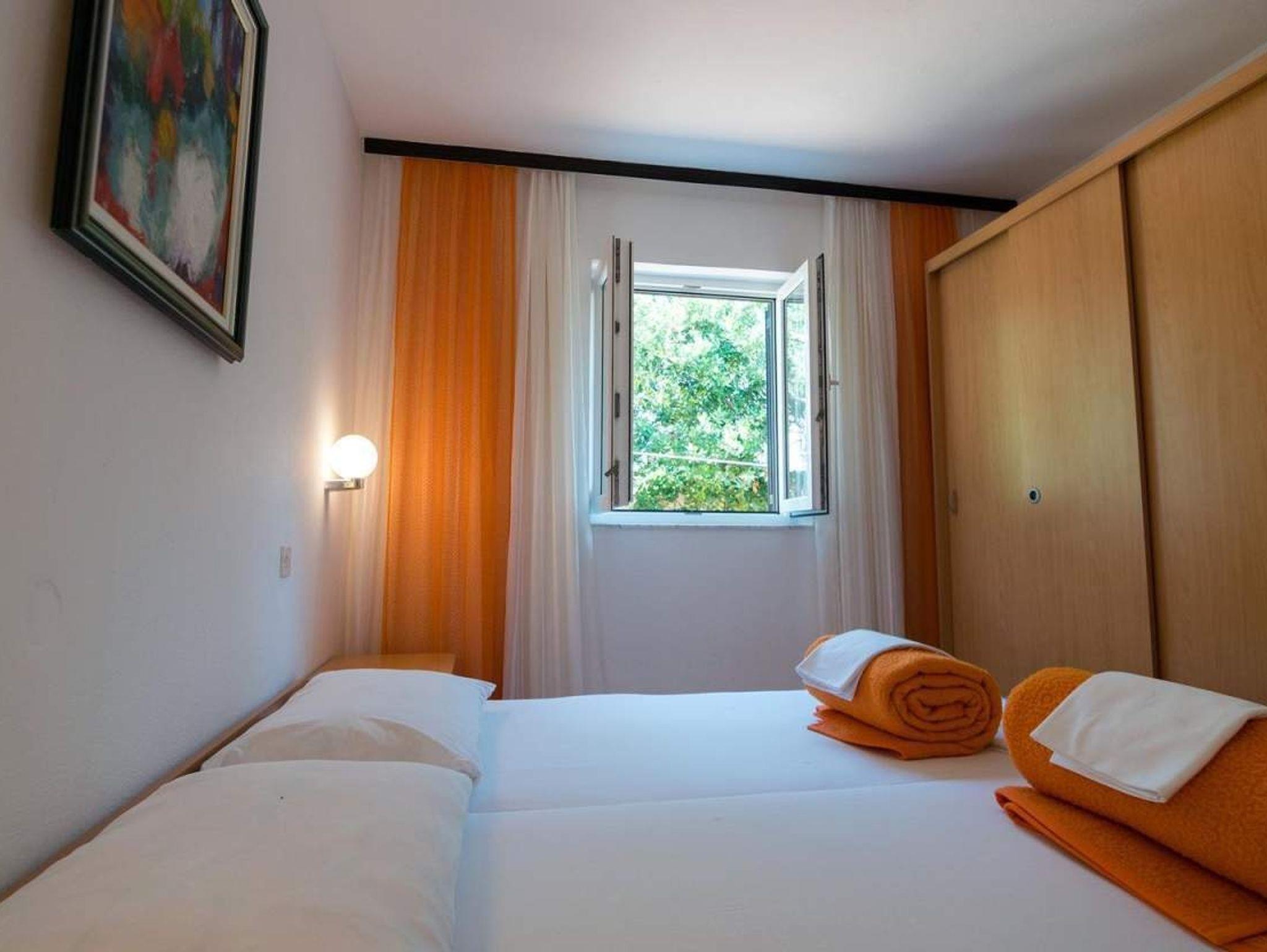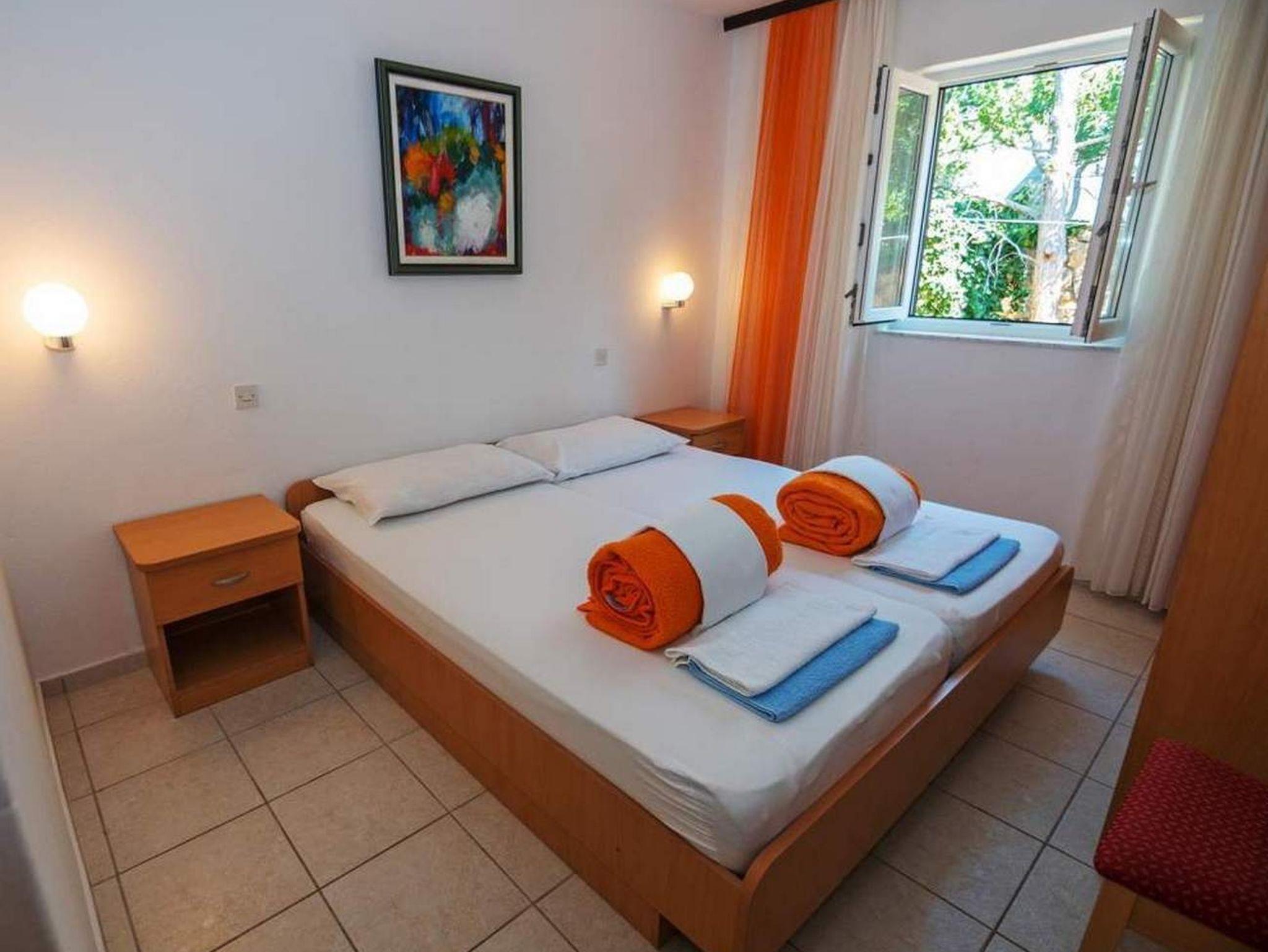 Ferienwohnung bietet Platz für 4 Gäste. Die Betten sind in Schlafzimmern, die es 2 gibt, innerhalb einer Gesamtfläche von 52m2, angeordnet. Die Gäste haben eine eigene Terrasse zur Verfügung, auf der sie in warmen Sommernächten genießen können. Für vollen Genuss und Entspannung gibt es einen privaten Grill für Gäste dieser Unterkunft. In der Unterkunftseinheit besteht die Möglichkeit des Mitbringens von Haustieren gegen Aufpreis. IM PREIS INBEGRIFFEN: Kurtaxe, Endreinigung, Klimatisierung, Parkplatz. VERBINDLICHE ZUSÄTZLICHE KOSTEN: Aufzahlung für Kurzaufenthalte (prozentualer Zuschlag pro Nächtigungsanzahl: 30% - 1, 20% - 2, 10% - 3). UNVERBINDLICHE ZUSÄTZLICHE KOSTEN: Haustiere (10,00 € pro Nacht). Die Verfügbarkeit zusätzlicher Dienstleistungen in Ihrem reservierten Termin und die Preise derselben (falls nicht aufgeführt) müssen im Voraus überprüft werden. Zusätzliche Dienstleistungen die in der Zahlungsaufforderung nicht aufgeführt sind werden direkt beim Vermieter bezahlt, angenommen der Gast nutzt auch diese.