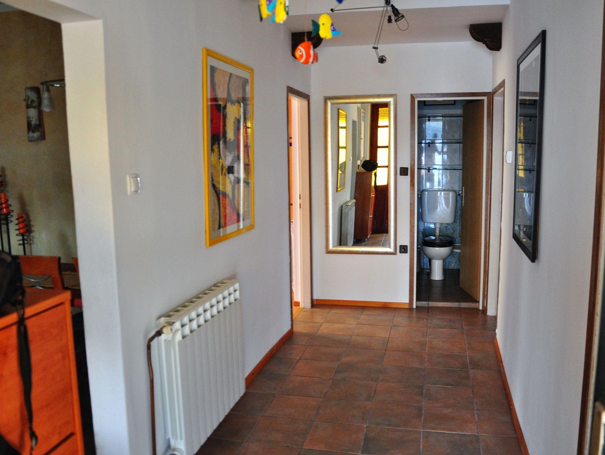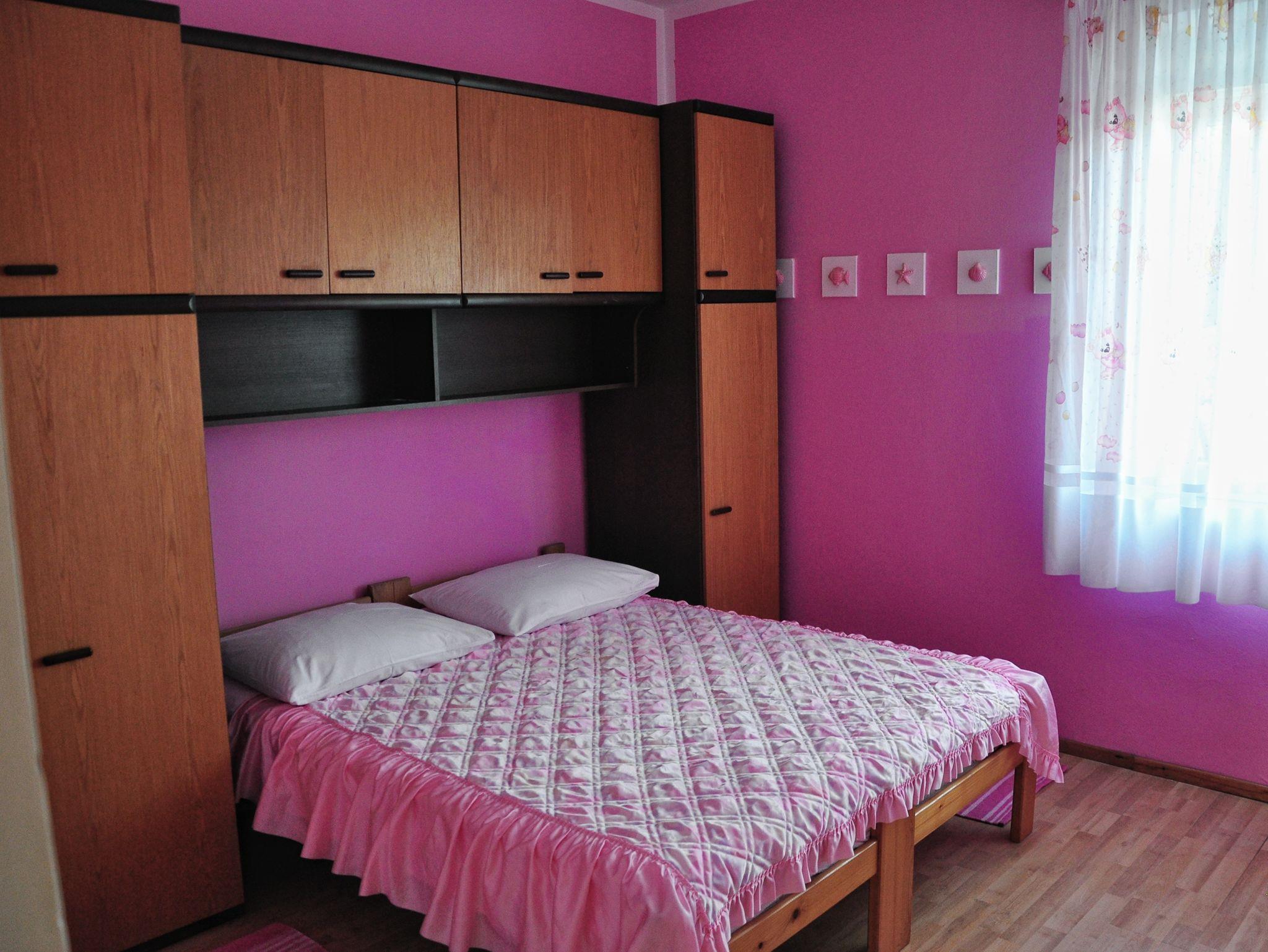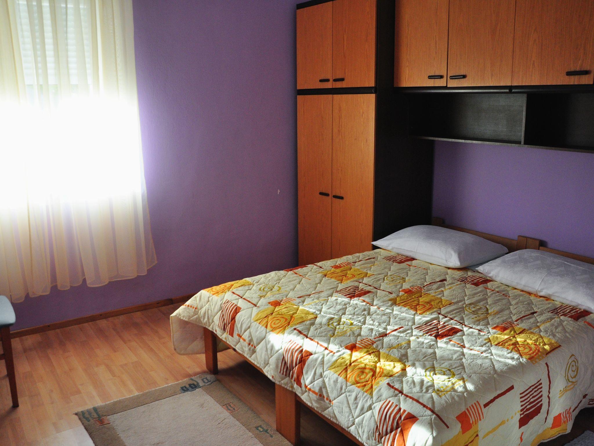 Ferienwohnung bietet Platz für 6 Gäste. Die Betten sind in Schlafzimmern, die es 2 gibt, und in Wohnzimmer, innerhalb einer Gesamtfläche von 43m2, angeordnet. Die Gäste haben eine eigene Terrasse zur Verfügung, auf der sie in warmen Sommernächten genießen können. Das Apartment bietet Meerblick. Es ist erlaubt, Speisen auf dem Gemeinschafts-Grill vorzubereiten. In der Unterkunftseinheit besteht die Möglichkeit des Mitbringens von Haustieren gegen Aufpreis. Durch die Terrasse der gebuchten Unterkunftseinheit gehen auch andere Gäste oder Vermieter. IM PREIS INBEGRIFFEN: Kurtaxe, Endreinigung, Parkplatz, Internet. VERBINDLICHE ZUSÄTZLICHE KOSTEN: Aufzahlung für Kurzaufenthalte (prozentualer Zuschlag pro Nächtigungsanzahl: 30% - 1, 20% - 2, 10% - 3). UNVERBINDLICHE ZUSÄTZLICHE KOSTEN: Klimatisierung (5,00 € pro Nacht), Wäschewaschen (3,00 € Waschen), Bootsanlegeplatz (3,00 € pro Nacht), Haustiere (5,00 € pro Nacht). Die Verfügbarkeit zusätzlicher Dienstleistungen in Ihrem reservierten Termin und die Preise derselben (falls nicht aufgeführt) müssen im Voraus überprüft werden. Zusätzliche Dienstleistungen die in der Zahlungsaufforderung nicht aufgeführt sind werden direkt beim Vermieter bezahlt, angenommen der Gast nutzt auch diese.
