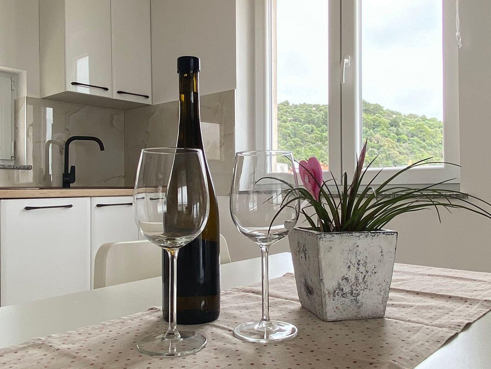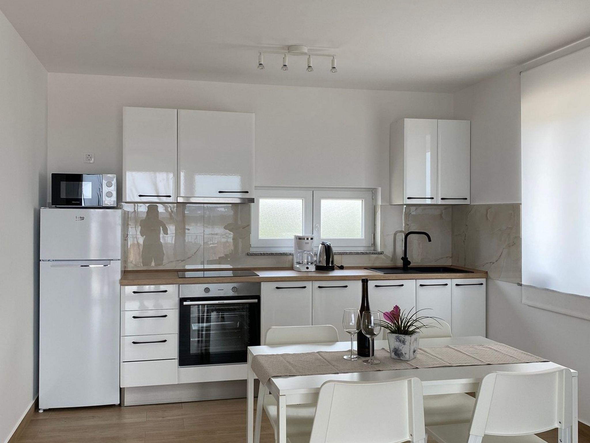 Ferienwohnung bietet Platz für 4 Gäste. Die Betten sind in Schlafzimmern, die es 1 gibt, und in Wohnzimmer, innerhalb einer Gesamtfläche von 47m2, angeordnet. Die Gäste haben eine eigene Terrasse zur Verfügung, auf der sie in warmen Sommernächten genießen können. Das Apartment bietet Meerblick. In der Unterkunftseinheit besteht die Möglichkeit des Mitbringens von Haustieren gegen Aufpreis. IM PREIS INBEGRIFFEN: Kurtaxe, Endreinigung, Klimatisierung, Parkplatz, Internet, Föhn. VERBINDLICHE ZUSÄTZLICHE KOSTEN: Aufzahlung für Kurzaufenthalte (prozentualer Zuschlag pro Nächtigungsanzahl: 30% - 1, 20% - 2, 10% - 3). UNVERBINDLICHE ZUSÄTZLICHE KOSTEN: Haustiere (5,00 € pro Nacht). Die Verfügbarkeit zusätzlicher Dienstleistungen in Ihrem reservierten Termin und die Preise derselben (falls nicht aufgeführt) müssen im Voraus überprüft werden. Zusätzliche Dienstleistungen die in der Zahlungsaufforderung nicht aufgeführt sind werden direkt beim Vermieter bezahlt, angenommen der Gast nutzt auch diese. Ermäßigung auf den Grundpreis: Gratistag 14=13 (bei einem Aufenthalt von 14 Tagen oder mehr erhalten Sie einen Gratistag für den Aufenthalt bis 31.12.26).
