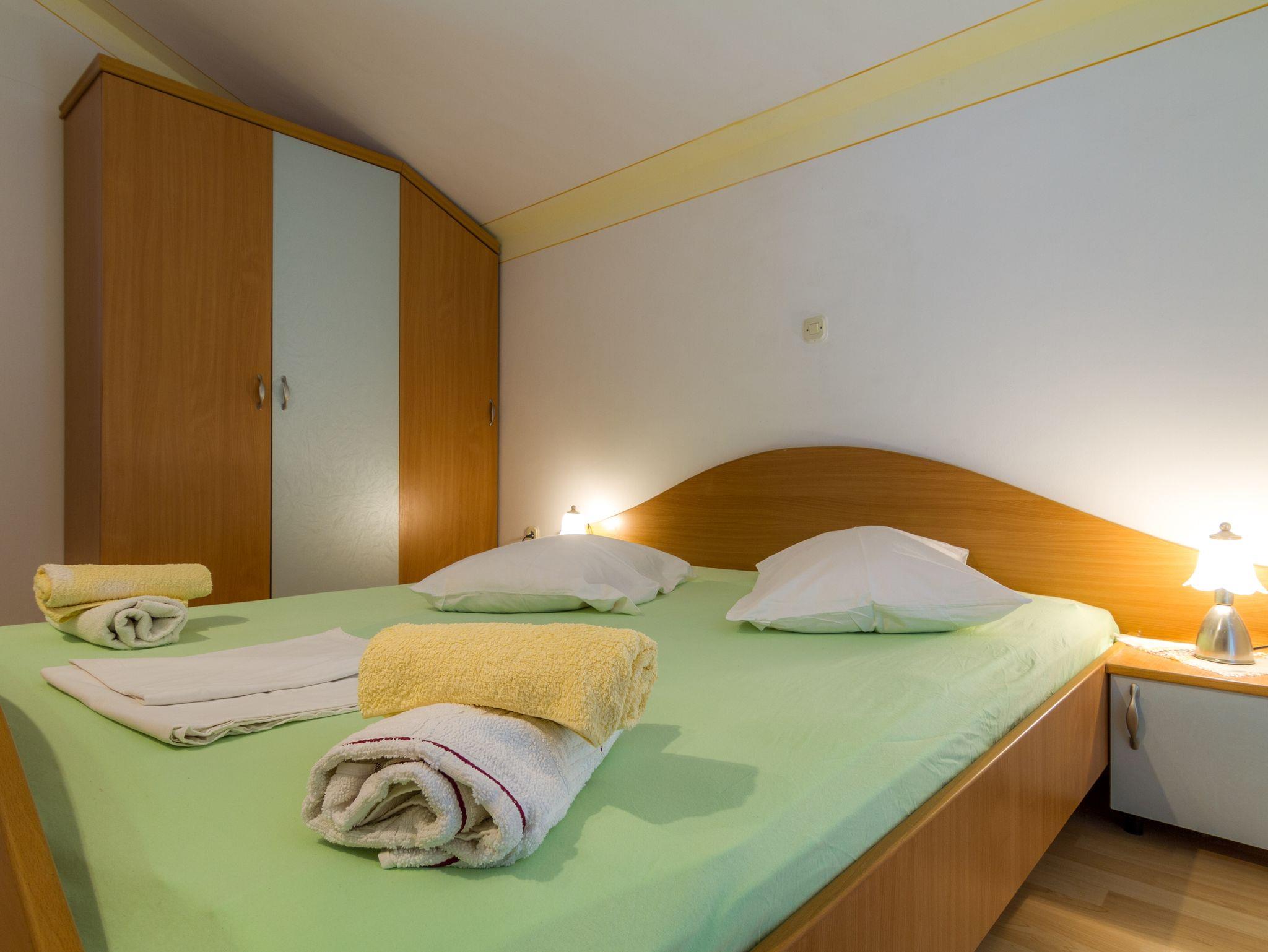 Ferienwohnung bietet Platz für 4 Gäste. Die Betten sind in Schlafzimmern, die es 1 gibt, und in Wohnzimmer, innerhalb einer Gesamtfläche von 28m2, angeordnet. Die Gäste haben einen eigenen Balkon zur Verfügung, auf der sie in warmen Sommernächten genießen können. Es ist erlaubt, Speisen auf dem Gemeinschafts-Grill vorzubereiten. IM PREIS INBEGRIFFEN: Kurtaxe, Endreinigung, Klimatisierung, Parkplatz, Internet, Kinderbett, Bügeleisen, Bügelbrett, Föhn. UNVERBINDLICHE ZUSÄTZLICHE KOSTEN: Wäschewaschen (7,00 € Waschen), Bootsanlegeplatz (10,00 € pro Nacht), Zusatzbett (7,00 € pro Nacht). Die Verfügbarkeit zusätzlicher Dienstleistungen in Ihrem reservierten Termin und die Preise derselben (falls nicht aufgeführt) müssen im Voraus überprüft werden. Zusätzliche Dienstleistungen die in der Zahlungsaufforderung nicht aufgeführt sind werden direkt beim Vermieter bezahlt, angenommen der Gast nutzt auch diese.