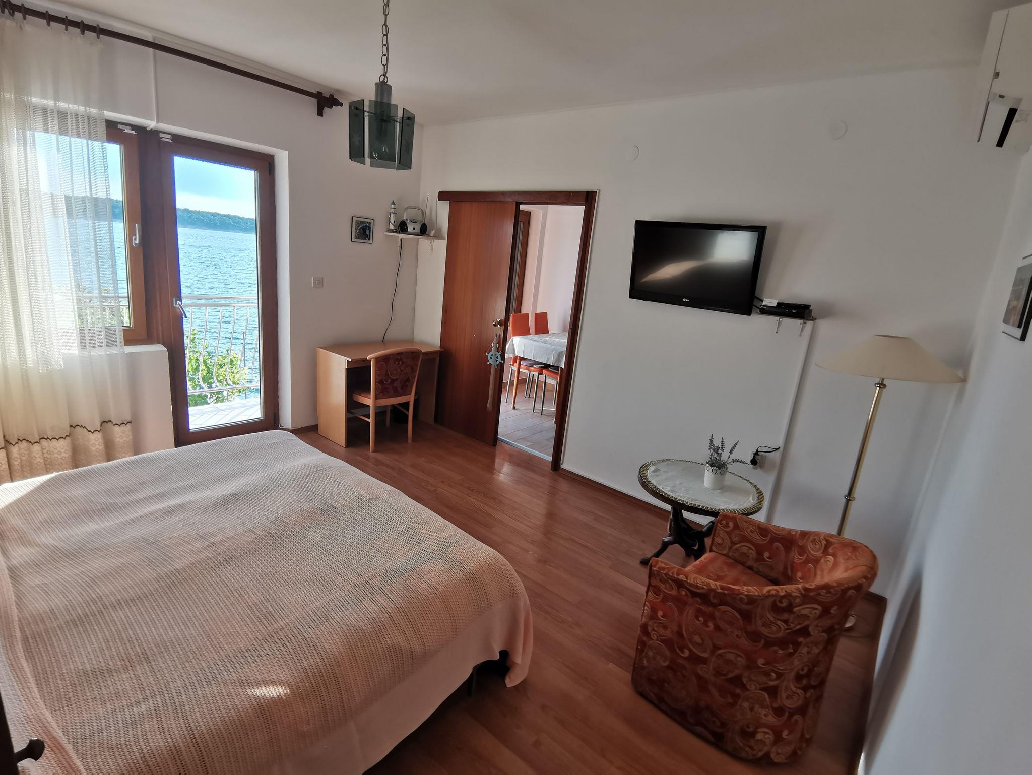 Ferienwohnung bietet Platz für 4 Gäste. Die Betten sind in Schlafzimmern, die es 2 gibt, innerhalb einer Gesamtfläche von 40m2, angeordnet. Die Gäste haben eine eigene Terrasse zur Verfügung, auf der sie in warmen Sommernächten genießen können. Das Apartment bietet Meerblick. Es ist erlaubt, Speisen auf dem Gemeinschafts-Grill vorzubereiten. IM PREIS INBEGRIFFEN: Kurtaxe, Endreinigung, Klimatisierung, Parkplatz, Internet, Kinderbett, Zusatzbett, Föhn, tragbarer Grill, Sonnenschirm, Liegestühle. VERBINDLICHE ZUSÄTZLICHE KOSTEN: Aufzahlung für Kurzaufenthalte (prozentualer Zuschlag pro Nächtigungsanzahl: 30% - 1, 20% - 2, 10% - 3). UNVERBINDLICHE ZUSÄTZLICHE KOSTEN: Bootsanlegeplatz (10,00 € pro Nacht). Die Verfügbarkeit zusätzlicher Dienstleistungen in Ihrem reservierten Termin und die Preise derselben (falls nicht aufgeführt) müssen im Voraus überprüft werden. Zusätzliche Dienstleistungen die in der Zahlungsaufforderung nicht aufgeführt sind werden direkt beim Vermieter bezahlt, angenommen der Gast nutzt auch diese. Ermäßigung auf den Grundpreis: Gratistag 14=13 (bei einem Aufenthalt von 14 Tagen oder mehr erhalten Sie einen Gratistag für den Aufenthalt bis 31.12.26).