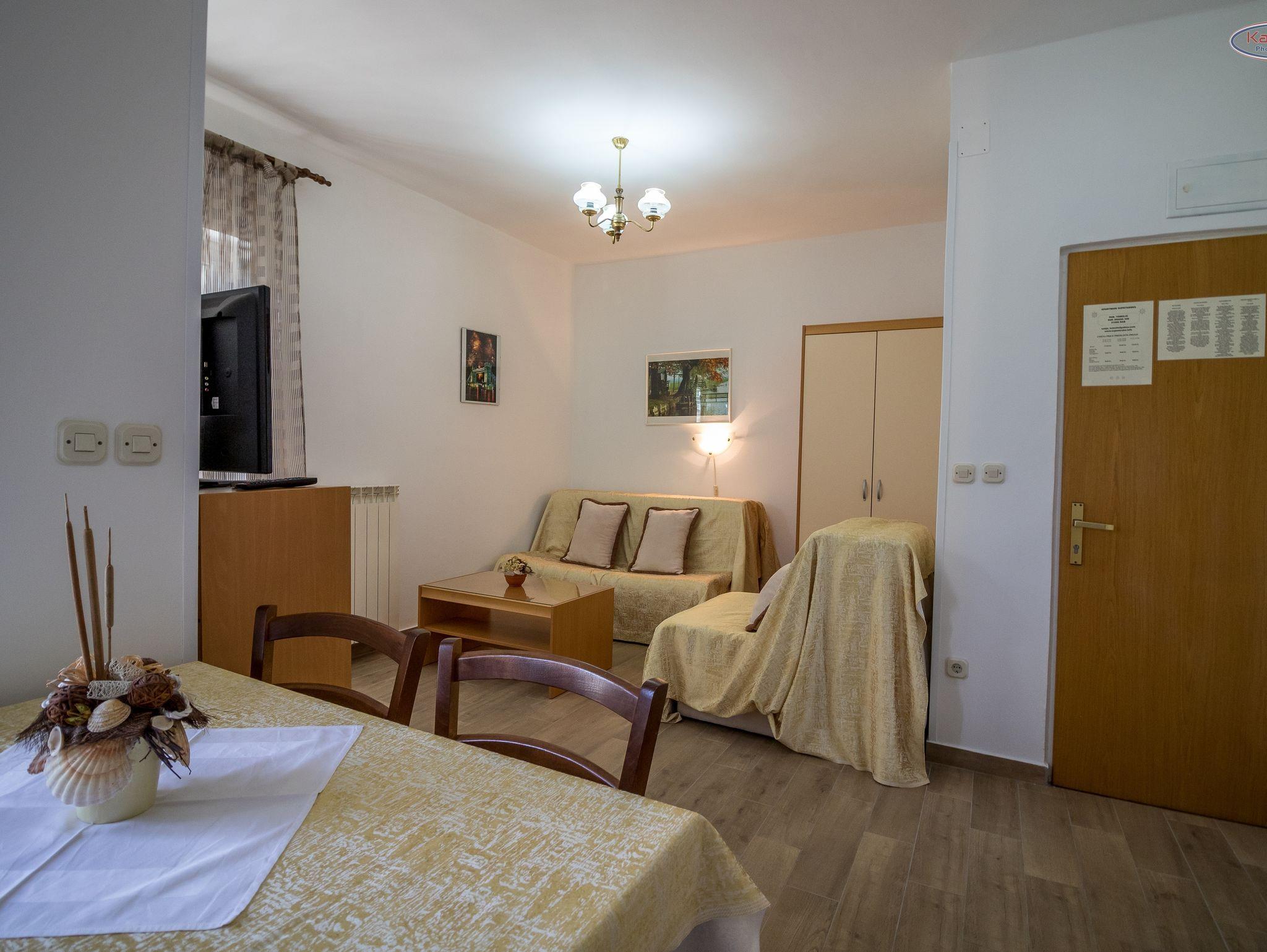 Ferienwohnung bietet Platz für 4 Gäste. Die Betten sind in Schlafzimmern, die es 1 gibt, und in Wohnzimmer, innerhalb einer Gesamtfläche von 40m2, angeordnet. Die Gäste haben einen eigenen Balkon zur Verfügung, auf der sie in warmen Sommernächten genießen können. Das Apartment bietet Meerblick. Es ist erlaubt, Speisen auf dem Gemeinschafts-Grill vorzubereiten. In der Unterkunftseinheit besteht die Möglichkeit des Mitbringens von Haustieren gegen Aufpreis. IM PREIS INBEGRIFFEN: Kurtaxe, Endreinigung, Klimatisierung, Zentralheizung, Parkplatz, Internet, Kinderbett, Bügeleisen, Bügelbrett, Föhn. UNVERBINDLICHE ZUSÄTZLICHE KOSTEN: Haustiere (10,00 € pro Nacht), Zusatzbett (10,00 € pro Nacht). Die Verfügbarkeit zusätzlicher Dienstleistungen in Ihrem reservierten Termin und die Preise derselben (falls nicht aufgeführt) müssen im Voraus überprüft werden. Zusätzliche Dienstleistungen die in der Zahlungsaufforderung nicht aufgeführt sind werden direkt beim Vermieter bezahlt, angenommen der Gast nutzt auch diese.