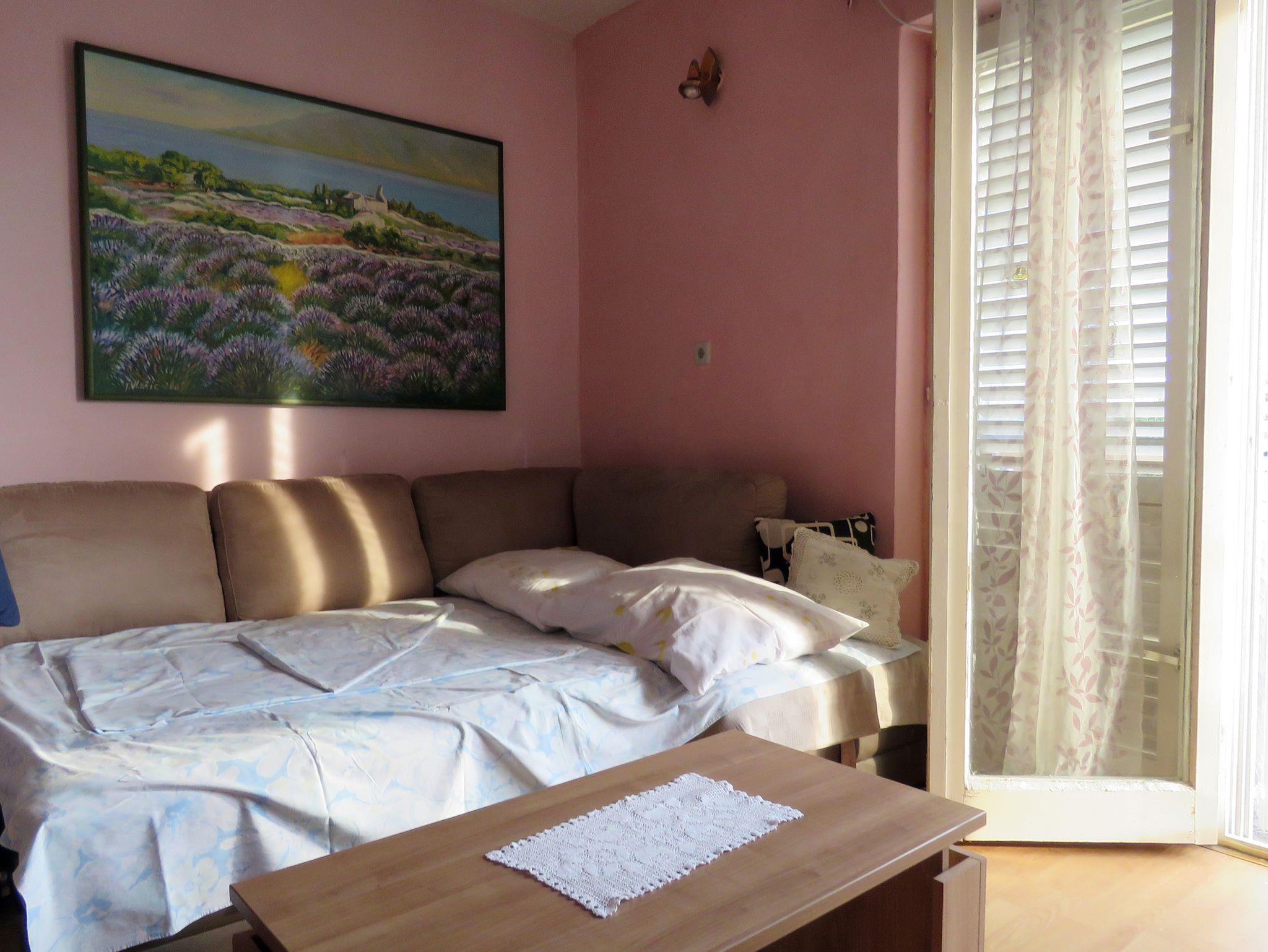 Ferienwohnung bietet Platz für 4 Gäste. Die Betten sind in Schlafzimmern, die es 1 gibt, und in Wohnzimmer, innerhalb einer Gesamtfläche von 49m2, angeordnet. Die Gäste haben eine eigene Terrasse zur Verfügung, auf der sie in warmen Sommernächten genießen können. Das Apartment bietet Meerblick. Es ist erlaubt, Speisen auf dem Gemeinschafts-Grill vorzubereiten. Während ihres Aufenthalts können Gäste das gemeinsam zur Nutzung stehende Schwimmbad benutzen. In der Unterkunftseinheit besteht die Möglichkeit des Mitbringens von Haustieren gegen Aufpreis. IM PREIS INBEGRIFFEN: Kurtaxe, Endreinigung, Klimatisierung, Pool, Parkplatz, Internet, Kinderbett, Sonnenschirm. VERBINDLICHE ZUSÄTZLICHE KOSTEN: Aufzahlung für Kurzaufenthalte (prozentualer Zuschlag pro Nächtigungsanzahl: 30% - 1, 20% - 2, 10% - 3). UNVERBINDLICHE ZUSÄTZLICHE KOSTEN: Haustiere (10,00 € pro Nacht), Zusatzbett (10,00 € pro Nacht). Die Verfügbarkeit zusätzlicher Dienstleistungen in Ihrem reservierten Termin und die Preise derselben (falls nicht aufgeführt) müssen im Voraus überprüft werden. Zusätzliche Dienstleistungen die in der Zahlungsaufforderung nicht aufgeführt sind werden direkt beim Vermieter bezahlt, angenommen der Gast nutzt auch diese. Ermäßigung auf den Grundpreis: Gratistag 28=25 (bei einem Aufenthalt von 28 oder mehr Tagen erhalten Sie 3 kostenlose Tage für den Aufenthalt bis 31.12.26).