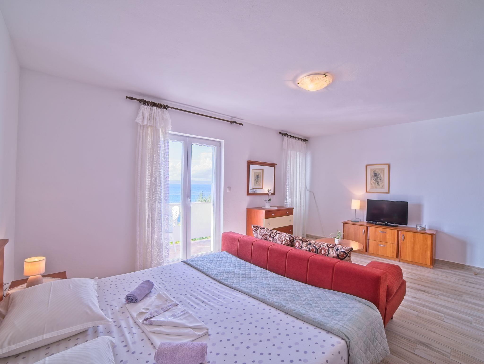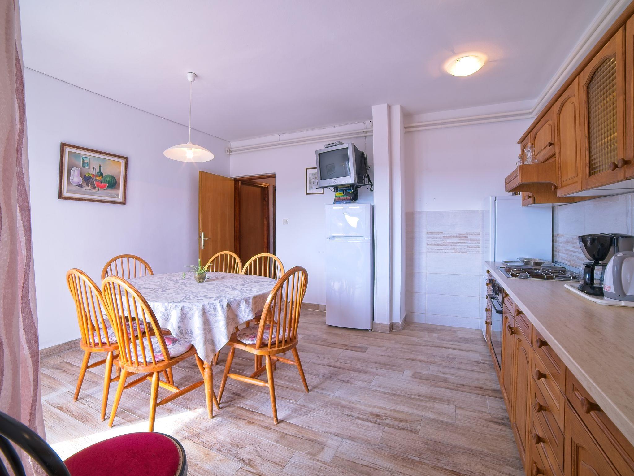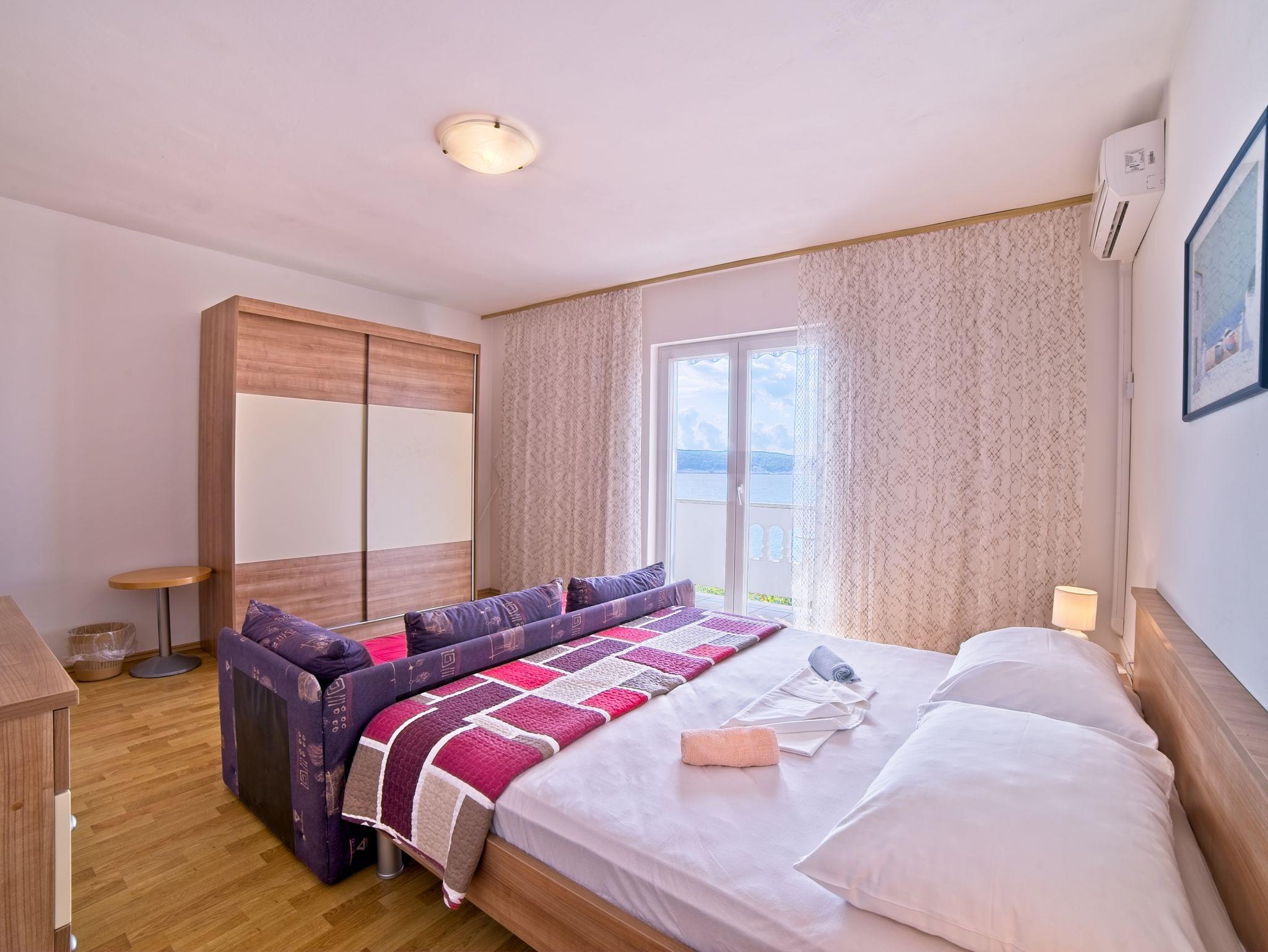 Ferienwohnung bietet Platz für 5 Gäste. Die Betten sind in Schlafzimmern, die es 2 gibt, innerhalb einer Gesamtfläche von 46m2, angeordnet. Die Gäste haben einen eigenen Balkon zur Verfügung, auf der sie in warmen Sommernächten genießen können. Das Apartment bietet Meerblick. Es ist erlaubt, Speisen auf dem Gemeinschafts-Grill vorzubereiten. IM PREIS INBEGRIFFEN: Kurtaxe, Endreinigung, Klimatisierung, Parkplatz, Internet, Bootsanlegeplatz, Liegestühle. VERBINDLICHE ZUSÄTZLICHE KOSTEN: Aufzahlung für Kurzaufenthalte (prozentualer Zuschlag pro Nächtigungsanzahl: 30% - 1, 20% - 2, 10% - 3). UNVERBINDLICHE ZUSÄTZLICHE KOSTEN: Wäschewaschen (5,00 € Waschen). Die Verfügbarkeit zusätzlicher Dienstleistungen in Ihrem reservierten Termin und die Preise derselben (falls nicht aufgeführt) müssen im Voraus überprüft werden. Zusätzliche Dienstleistungen die in der Zahlungsaufforderung nicht aufgeführt sind werden direkt beim Vermieter bezahlt, angenommen der Gast nutzt auch diese. Ermäßigung auf den Grundpreis: Gratistag 14=13 (bei einem Aufenthalt von 14 Tagen oder mehr erhalten Sie einen Gratistag für den Aufenthalt bis 31.12.26).