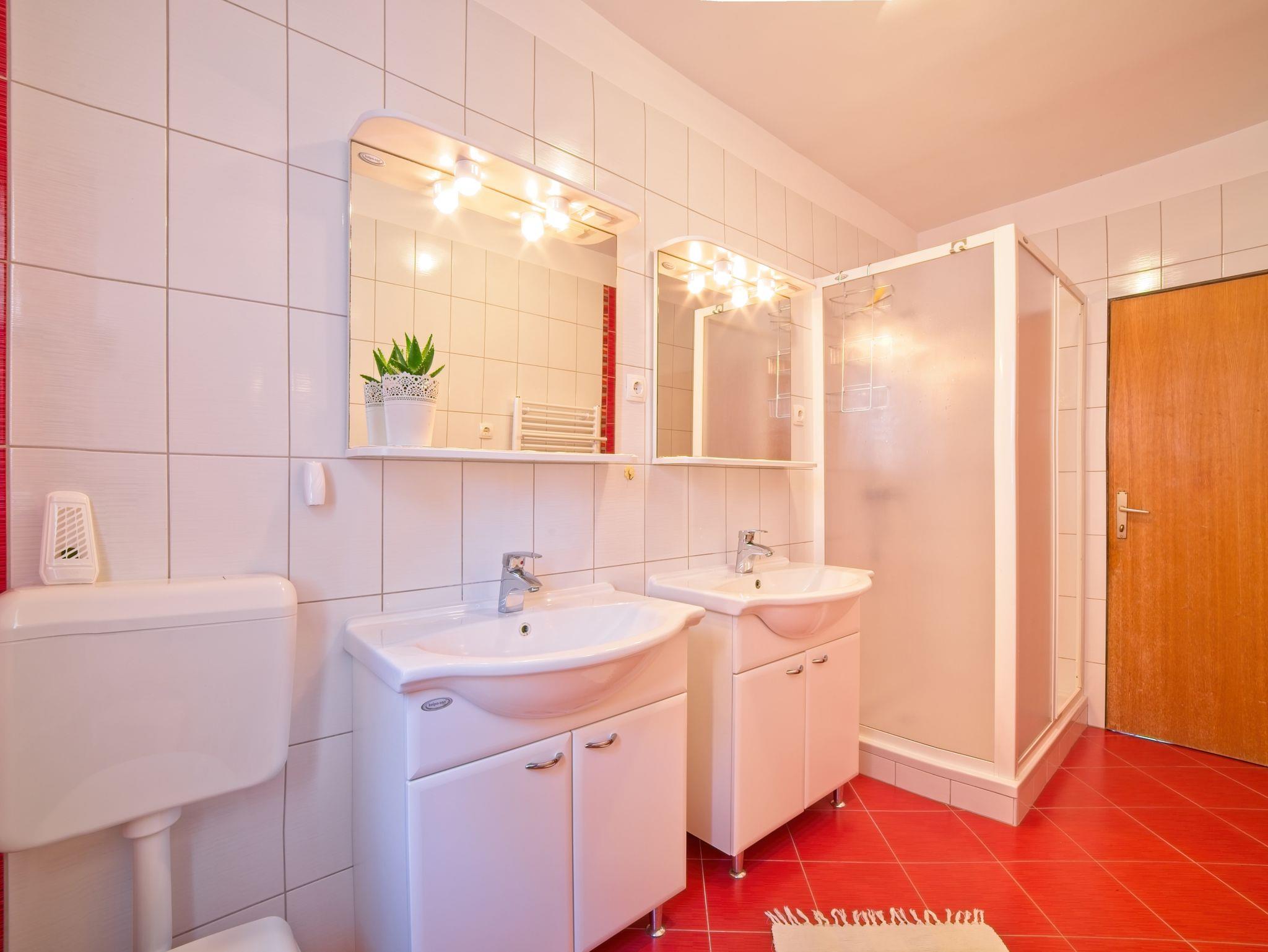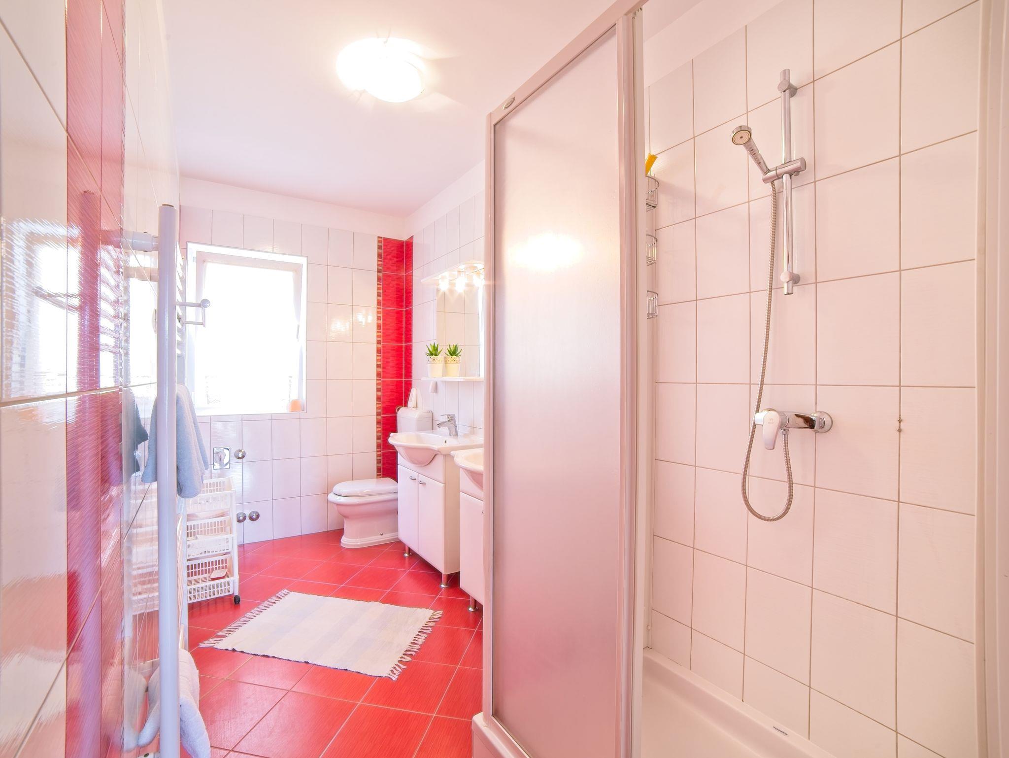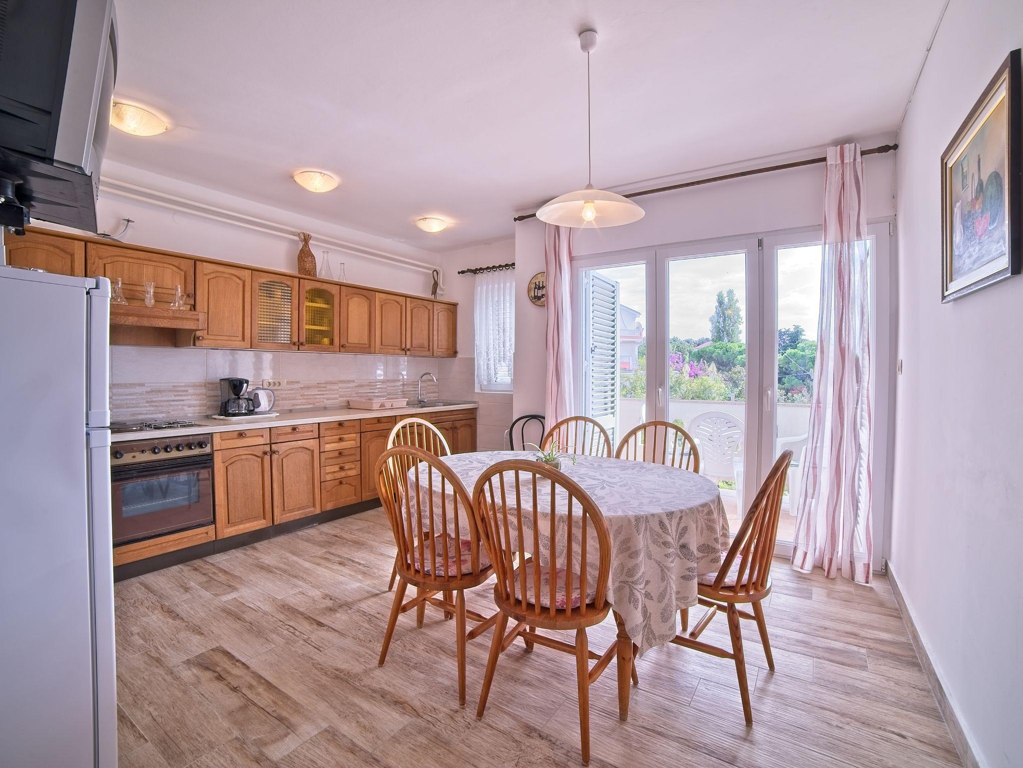 Ferienwohnung bietet Platz für 5 Gäste. Die Betten sind in Schlafzimmern, die es 2 gibt, innerhalb einer Gesamtfläche von 46m2, angeordnet. Die Gäste haben einen eigenen Balkon zur Verfügung, auf der sie in warmen Sommernächten genießen können. Das Apartment bietet Meerblick. Es ist erlaubt, Speisen auf dem Gemeinschafts-Grill vorzubereiten. IM PREIS INBEGRIFFEN: Kurtaxe, Endreinigung, Klimatisierung, Parkplatz, Internet, Bootsanlegeplatz, Liegestühle. VERBINDLICHE ZUSÄTZLICHE KOSTEN: Aufzahlung für Kurzaufenthalte (prozentualer Zuschlag pro Nächtigungsanzahl: 30% - 1, 20% - 2, 10% - 3). UNVERBINDLICHE ZUSÄTZLICHE KOSTEN: Wäschewaschen (5,00 € Waschen). Die Verfügbarkeit zusätzlicher Dienstleistungen in Ihrem reservierten Termin und die Preise derselben (falls nicht aufgeführt) müssen im Voraus überprüft werden. Zusätzliche Dienstleistungen die in der Zahlungsaufforderung nicht aufgeführt sind werden direkt beim Vermieter bezahlt, angenommen der Gast nutzt auch diese. Ermäßigung auf den Grundpreis: Gratistag 14=13 (bei einem Aufenthalt von 14 Tagen oder mehr erhalten Sie einen Gratistag für den Aufenthalt bis 31.12.26).