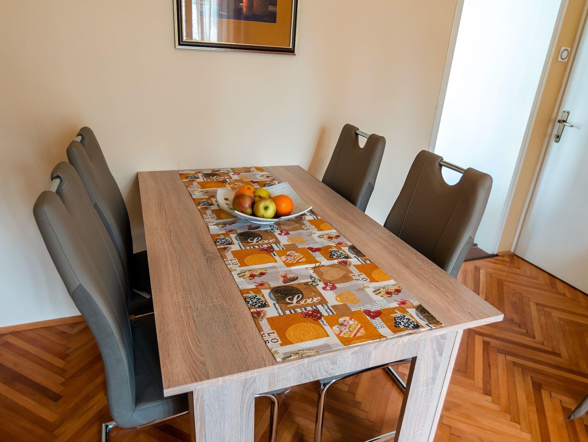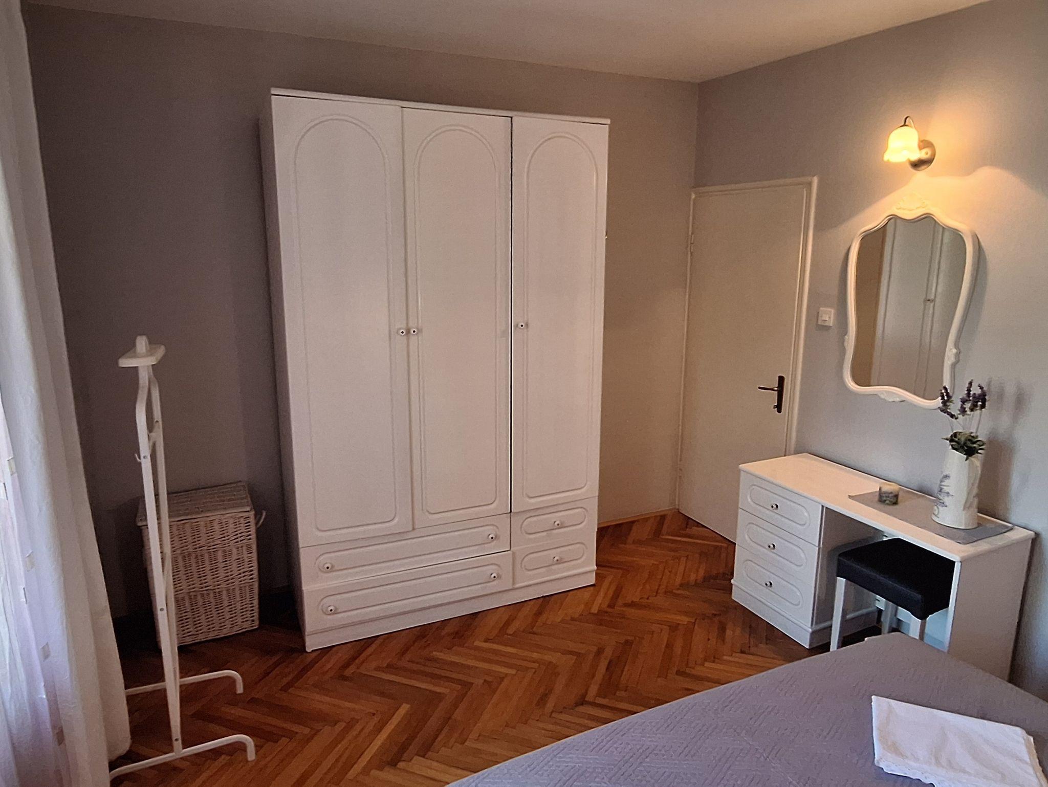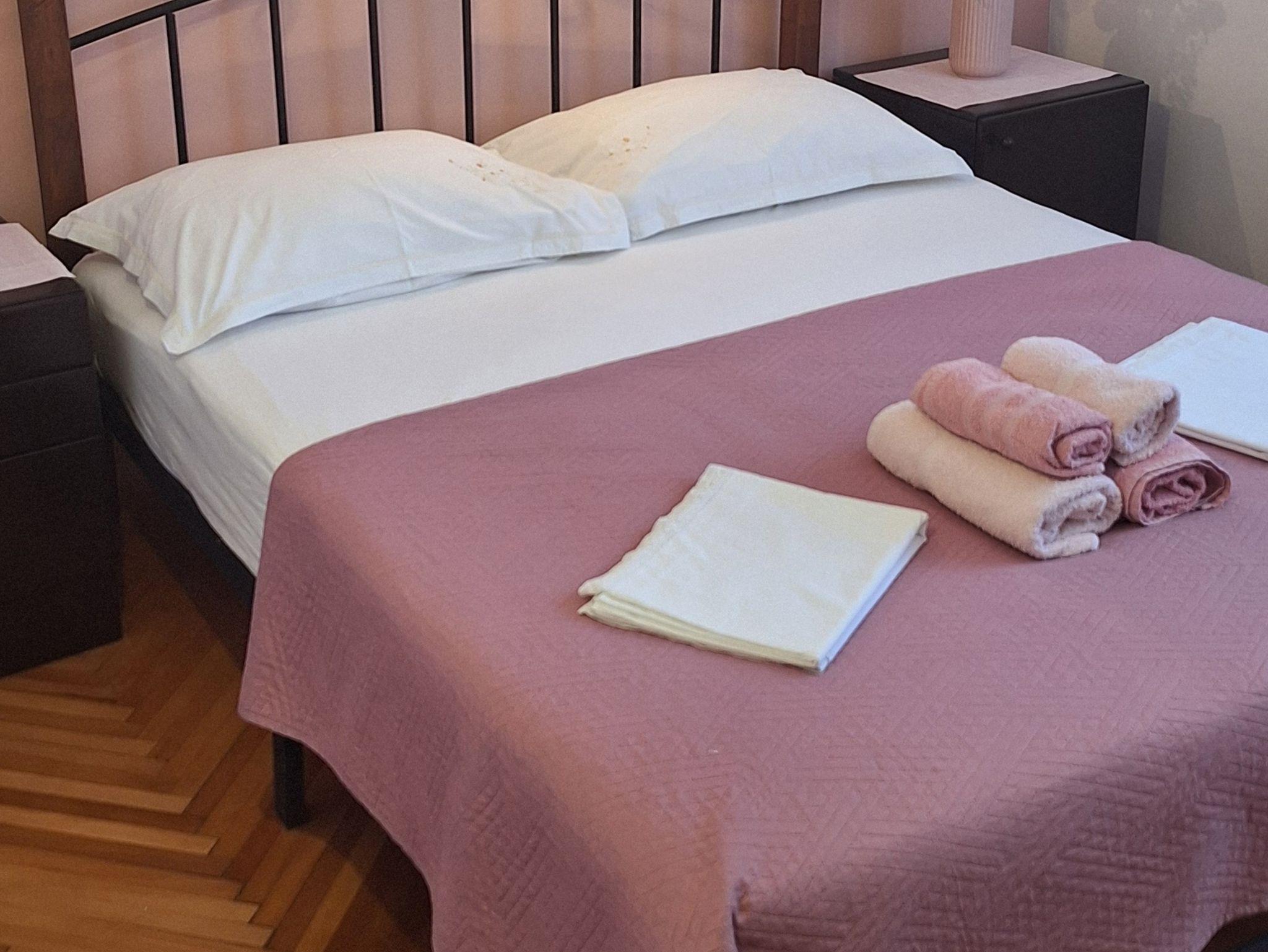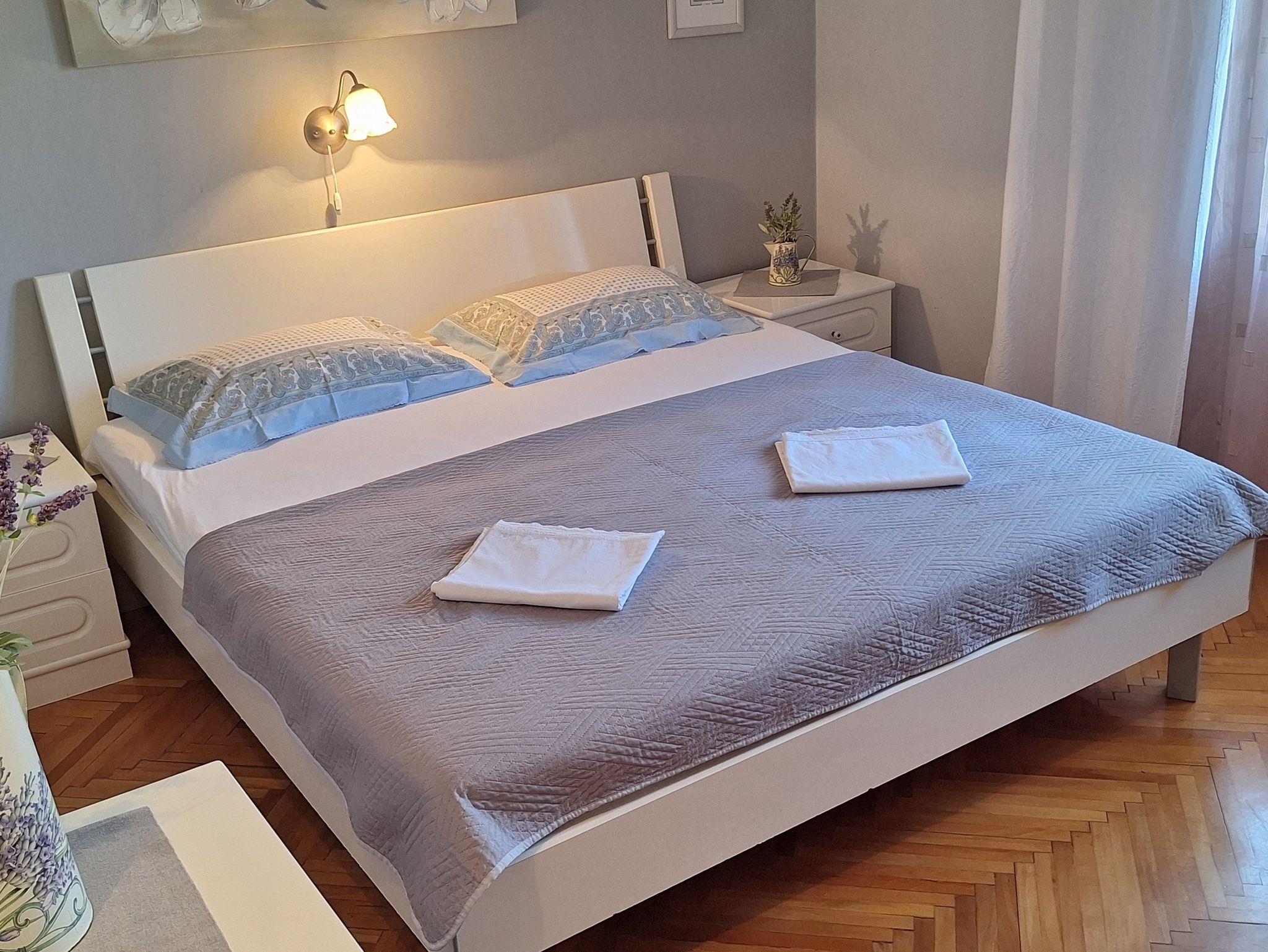 Ferienwohnung bietet Platz für 5 Gäste. Die Betten sind in Schlafzimmern, die es 2 gibt, und in Wohnzimmer, innerhalb einer Gesamtfläche von 54m2, angeordnet. Die Gäste haben einen eigenen Balkon zur Verfügung, auf der sie in warmen Sommernächten genießen können. Es ist erlaubt, Speisen auf dem Gemeinschafts-Grill vorzubereiten. IM PREIS INBEGRIFFEN: Kurtaxe, Endreinigung, Klimatisierung, Parkplatz, Internet, Kinderbett, Bügeleisen, Bügelbrett, Föhn, Sonnenschirm, Liegestühle. VERBINDLICHE ZUSÄTZLICHE KOSTEN: Aufzahlung für Kurzaufenthalte (prozentualer Zuschlag pro Nächtigungsanzahl: 30% - 1, 20% - 2, 10% - 3). UNVERBINDLICHE ZUSÄTZLICHE KOSTEN: Wäschewaschen (5,00 € Waschen). Die Verfügbarkeit zusätzlicher Dienstleistungen in Ihrem reservierten Termin und die Preise derselben (falls nicht aufgeführt) müssen im Voraus überprüft werden. Zusätzliche Dienstleistungen die in der Zahlungsaufforderung nicht aufgeführt sind werden direkt beim Vermieter bezahlt, angenommen der Gast nutzt auch diese.