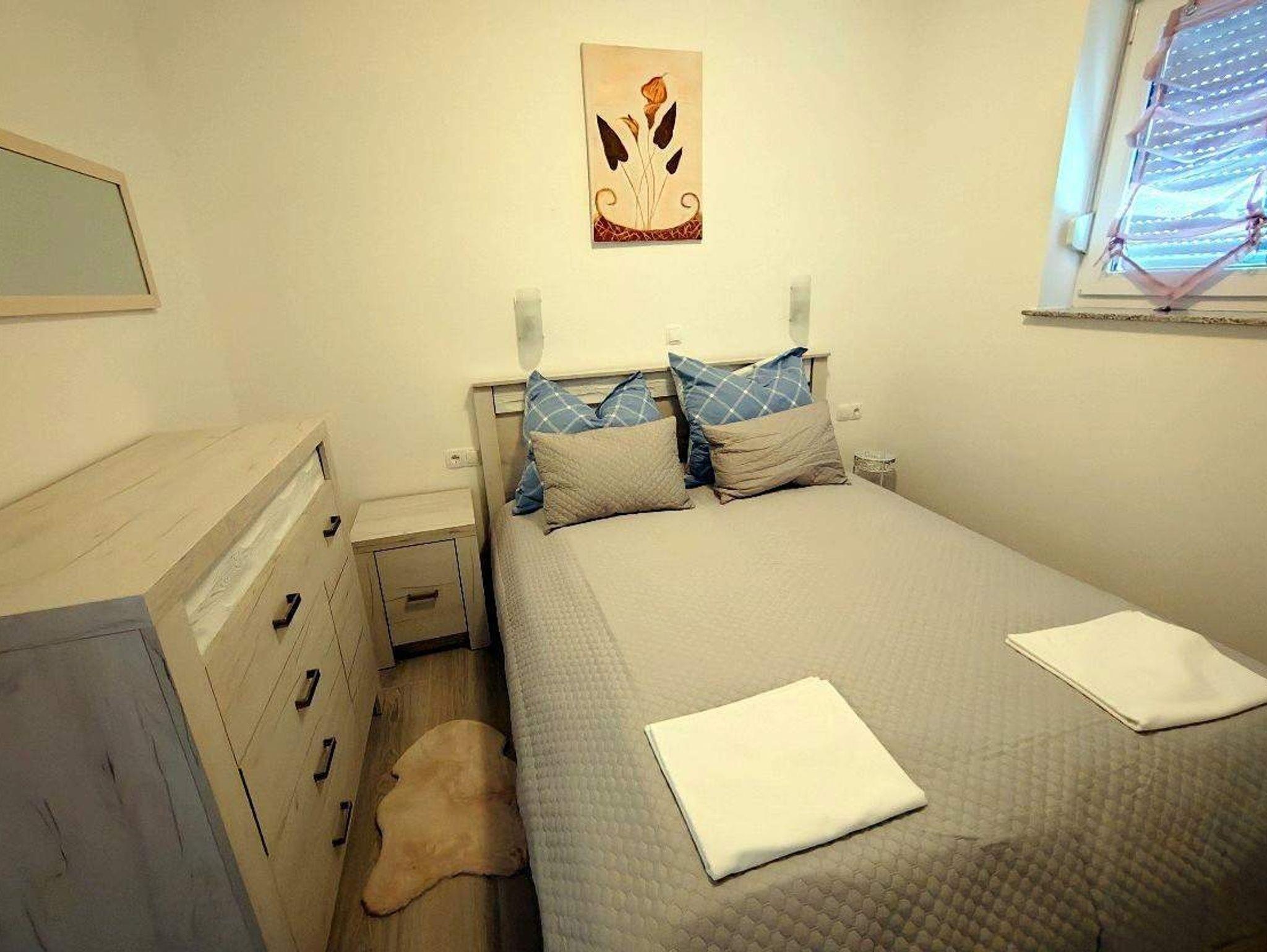 Ferienwohnung bietet Platz für 4 Gäste. Die Betten sind in Schlafzimmern, die es 2 gibt, innerhalb einer Gesamtfläche von 59m2, angeordnet. Die Gäste haben einen eigenen Balkon zur Verfügung, auf der sie in warmen Sommernächten genießen können. Das Apartment bietet Meerblick. Es ist erlaubt, Speisen auf dem Gemeinschafts-Grill vorzubereiten. IM PREIS INBEGRIFFEN: Kurtaxe, Endreinigung, Klimatisierung, Parkplatz, Internet, Föhn. VERBINDLICHE ZUSÄTZLICHE KOSTEN: Aufzahlung für Kurzaufenthalte (prozentualer Zuschlag pro Nächtigungsanzahl: 30% - 1, 20% - 2, 10% - 3). Die Verfügbarkeit zusätzlicher Dienstleistungen in Ihrem reservierten Termin und die Preise derselben (falls nicht aufgeführt) müssen im Voraus überprüft werden. Zusätzliche Dienstleistungen die in der Zahlungsaufforderung nicht aufgeführt sind werden direkt beim Vermieter bezahlt, angenommen der Gast nutzt auch diese.