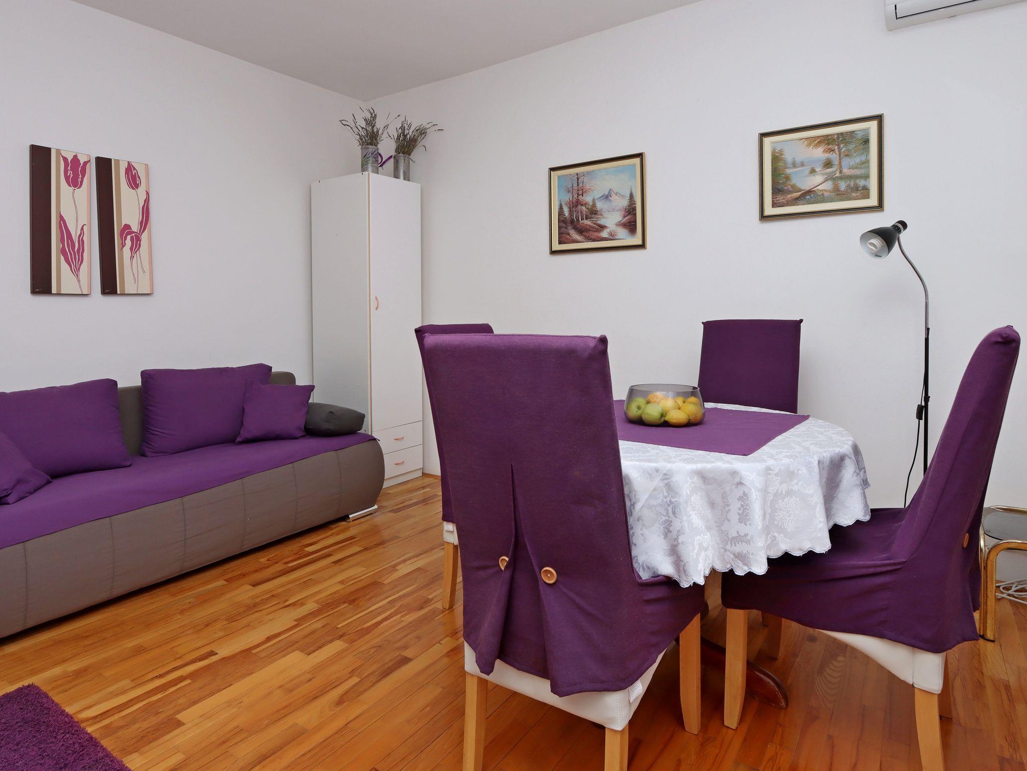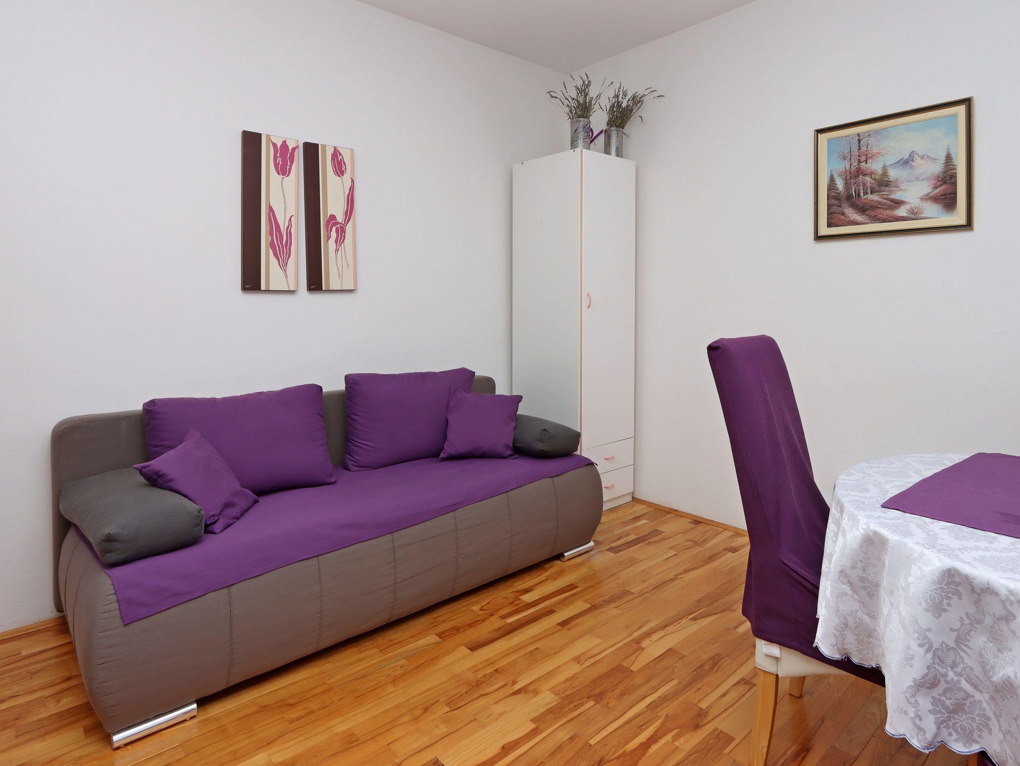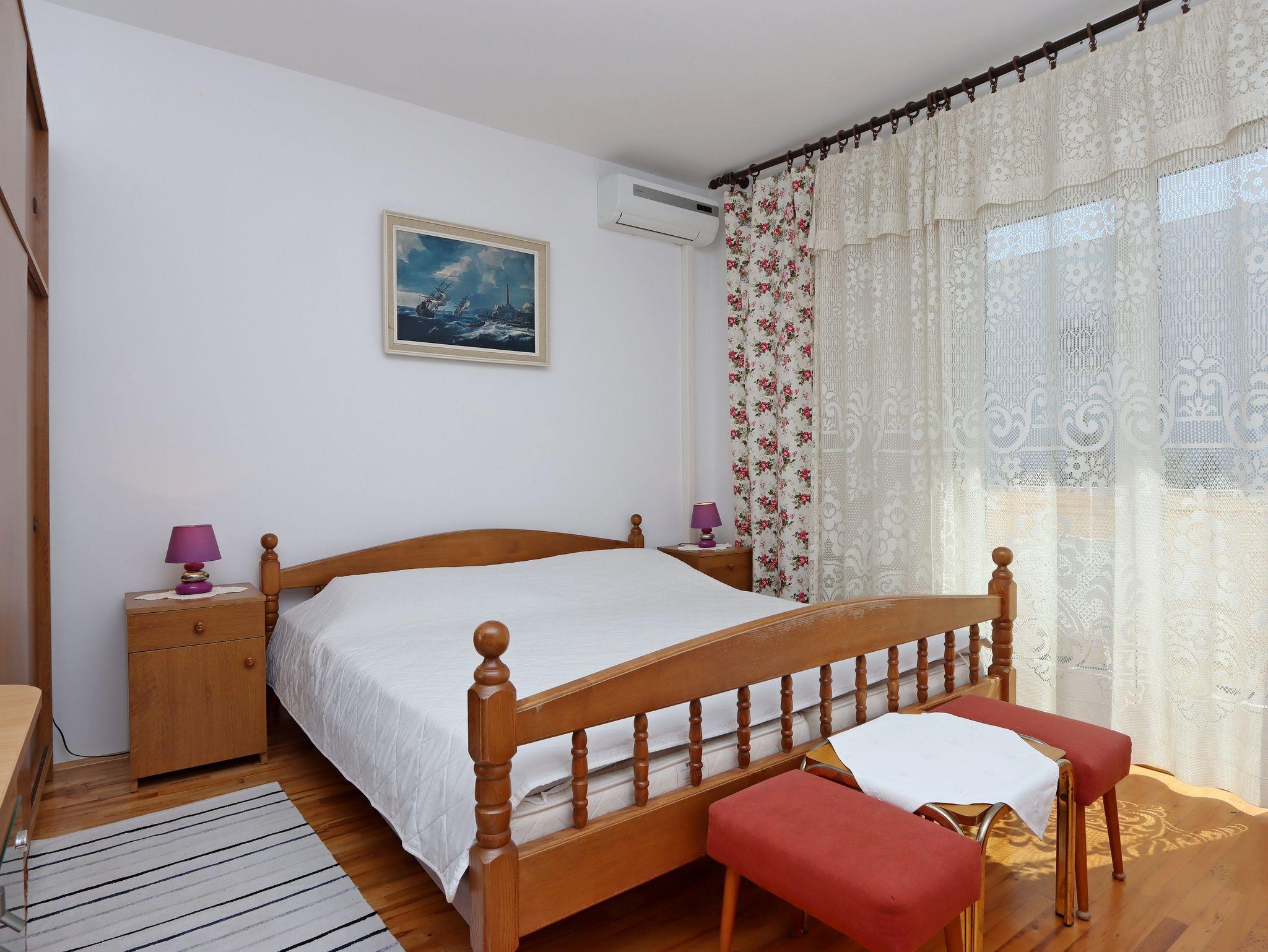 Ferienwohnung bietet Platz für 4 Gäste. Die Betten sind in Schlafzimmern, die es 1 gibt, und in Wohnzimmer, innerhalb einer Gesamtfläche von 35m2, angeordnet. Die Gäste haben einen eigenen Balkon zur Verfügung, auf der sie in warmen Sommernächten genießen können. Es ist erlaubt, Speisen auf dem Gemeinschafts-Grill vorzubereiten. IM PREIS INBEGRIFFEN: Kurtaxe, Endreinigung, Parkplatz, Internet, Kinderbett, Bügeleisen, Bügelbrett, Föhn, Sonnenschirm. VERBINDLICHE ZUSÄTZLICHE KOSTEN: Aufzahlung für Kurzaufenthalte (prozentualer Zuschlag pro Nächtigungsanzahl: 30% - 1, 20% - 2, 10% - 3). UNVERBINDLICHE ZUSÄTZLICHE KOSTEN: Frühstück (10,00 €, 50% Nachlass für Kinder zwischen 4 und 12 Jahren, Kinder bis 4 Jahre sind frei.), Klimatisierung (5,00 € pro Nacht). Die Verfügbarkeit zusätzlicher Dienstleistungen in Ihrem reservierten Termin und die Preise derselben (falls nicht aufgeführt) müssen im Voraus überprüft werden. Zusätzliche Dienstleistungen die in der Zahlungsaufforderung nicht aufgeführt sind werden direkt beim Vermieter bezahlt, angenommen der Gast nutzt auch diese.