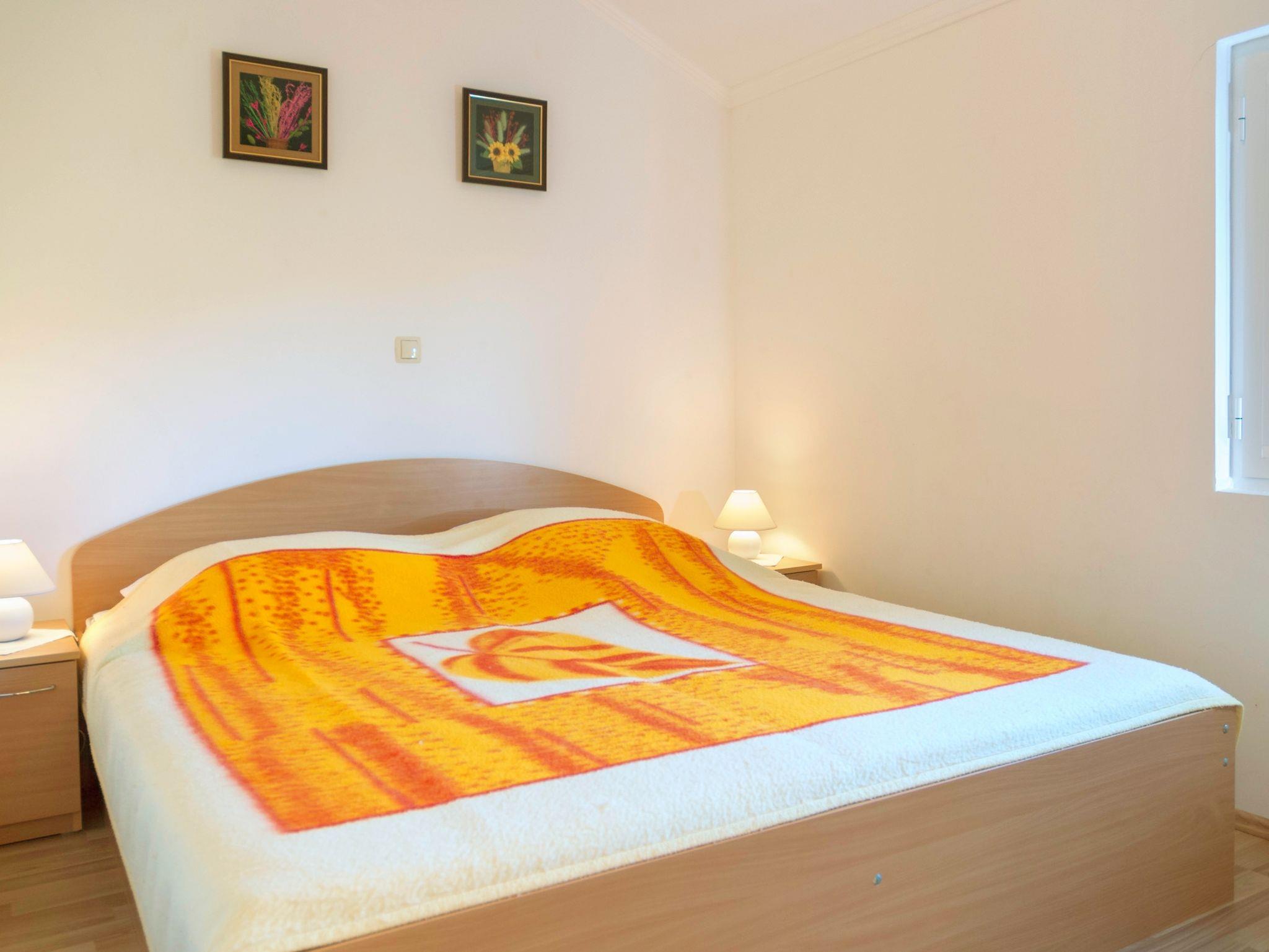 Ferienwohnung bietet Platz für 4 Gäste. Die Betten sind in Schlafzimmern, die es 1 gibt, und in Wohnzimmer, innerhalb einer Gesamtfläche von 39m2, angeordnet. Die Gäste haben eine eigene Terrasse zur Verfügung, auf der sie in warmen Sommernächten genießen können. Das Apartment bietet Meerblick. Es ist erlaubt, Speisen auf dem Gemeinschafts-Grill vorzubereiten. In der Unterkunftseinheit besteht die Möglichkeit des Mitbringens von Haustieren gegen Aufpreis. IM PREIS INBEGRIFFEN: Kurtaxe, Endreinigung, Klimatisierung, Parkplatz, Internet, Liegestühle. VERBINDLICHE ZUSÄTZLICHE KOSTEN: Aufzahlung für Kurzaufenthalte (prozentualer Zuschlag pro Nächtigungsanzahl: 30% - 1, 20% - 2, 10% - 3). UNVERBINDLICHE ZUSÄTZLICHE KOSTEN: Wäschewaschen (5,00 € Waschen), Bootsanlegeplatz (10,00 € pro Nacht), Haustiere (10,00 € pro Nacht). Die Verfügbarkeit zusätzlicher Dienstleistungen in Ihrem reservierten Termin und die Preise derselben (falls nicht aufgeführt) müssen im Voraus überprüft werden. Zusätzliche Dienstleistungen die in der Zahlungsaufforderung nicht aufgeführt sind werden direkt beim Vermieter bezahlt, angenommen der Gast nutzt auch diese. Ermäßigung auf den Grundpreis: Gratistag 14=13 (bei einem Aufenthalt von 14 Tagen oder mehr erhalten Sie einen Gratistag für den Aufenthalt bis 31.12.26).