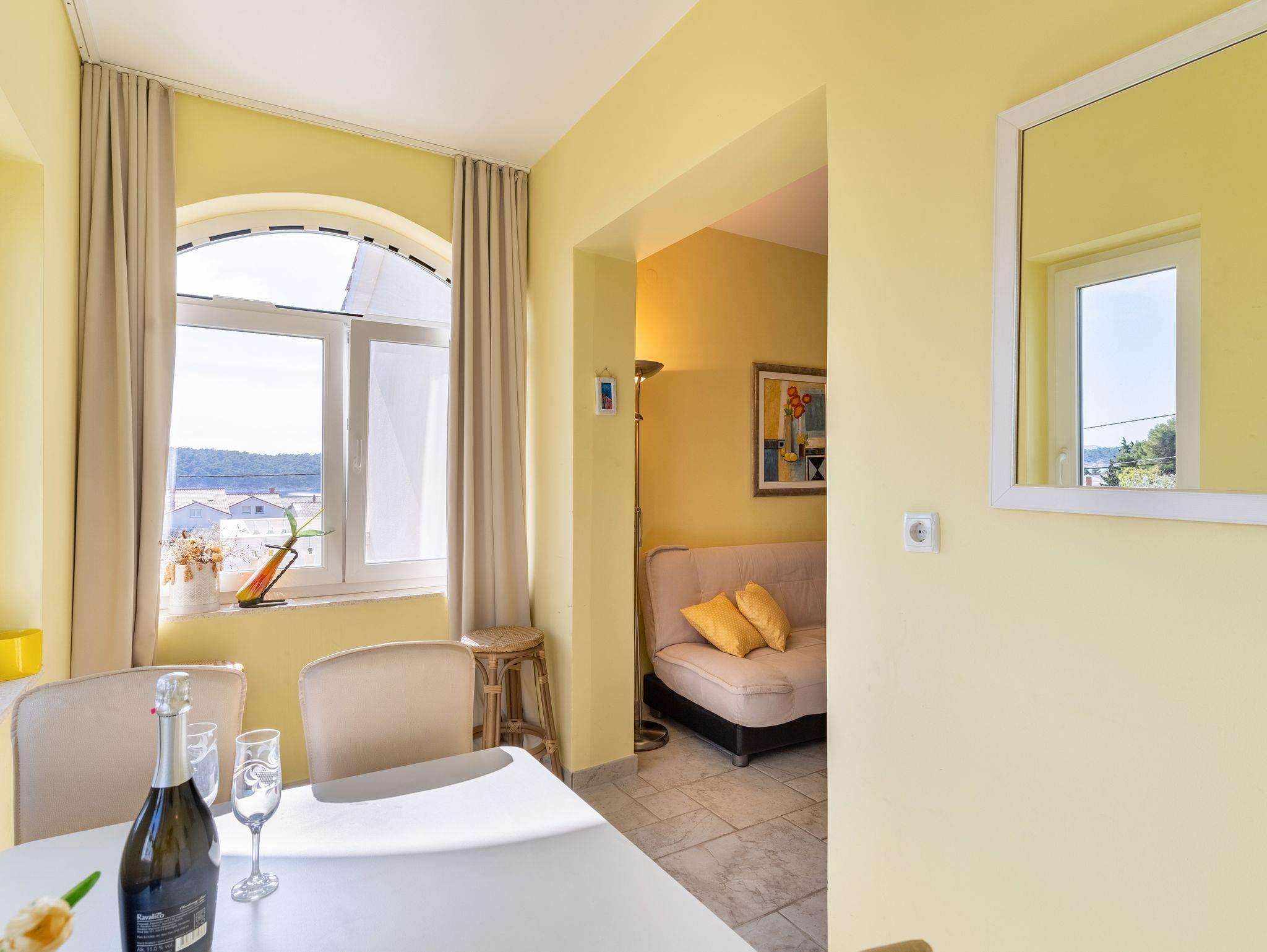 Ferienwohnung bietet Platz für 2 Gäste. Die Betten sind in Schlafzimmern, die es 1 gibt, innerhalb einer Gesamtfläche von 32m2, angeordnet. Die Gäste haben eine eigene Terrasse zur Verfügung, auf der sie in warmen Sommernächten genießen können. Das Apartment bietet Meerblick. Es ist erlaubt, Speisen auf dem Gemeinschafts-Grill vorzubereiten. In der Unterkunftseinheit besteht die Möglichkeit des Mitbringens von Haustieren gegen Aufpreis. IM PREIS INBEGRIFFEN: Kurtaxe, Endreinigung, Klimatisierung, Zentralheizung, Parkplatz, Internet, Kinderbett, Bügeleisen, Bügelbrett, Föhn. VERBINDLICHE ZUSÄTZLICHE KOSTEN: Aufzahlung für Kurzaufenthalte (prozentualer Zuschlag pro Nächtigungsanzahl: 30% - 1, 20% - 2, 10% - 3). UNVERBINDLICHE ZUSÄTZLICHE KOSTEN: Bootsanlegeplatz (10,00 € pro Nacht), Haustiere (10,00 € pro Nacht), 2 Kinderbettchen (10,00 € Person/Tag). Die Verfügbarkeit zusätzlicher Dienstleistungen in Ihrem reservierten Termin und die Preise derselben (falls nicht aufgeführt) müssen im Voraus überprüft werden. Zusätzliche Dienstleistungen die in der Zahlungsaufforderung nicht aufgeführt sind werden direkt beim Vermieter bezahlt, angenommen der Gast nutzt auch diese. Ermäßigung auf den Grundpreis: Gratistag 21=19 (bei einem Aufenthalt von 21 Tagen oder mehr erhalten Sie 2 Gratistage für den Aufenthalt bis 31.12.26).