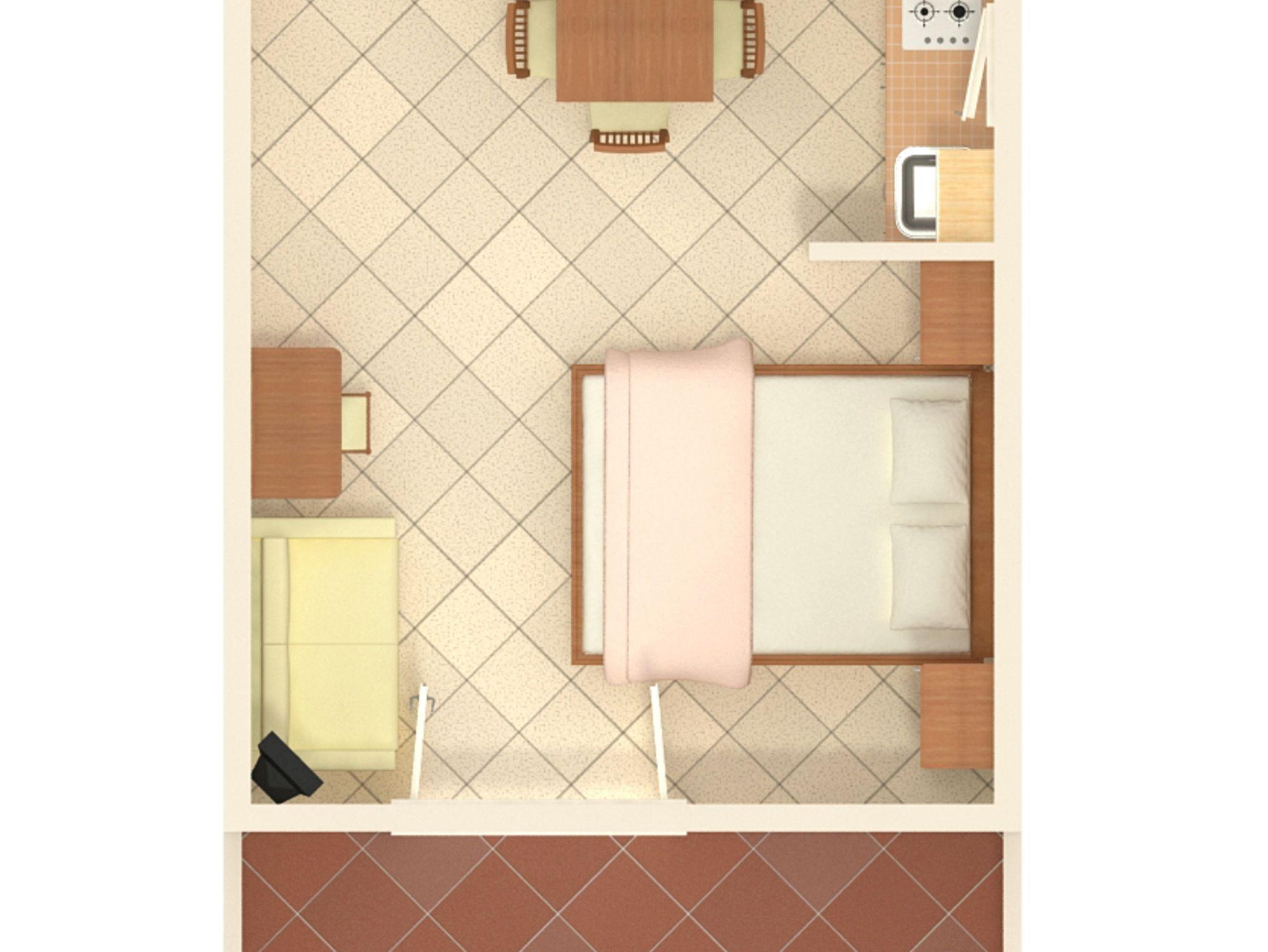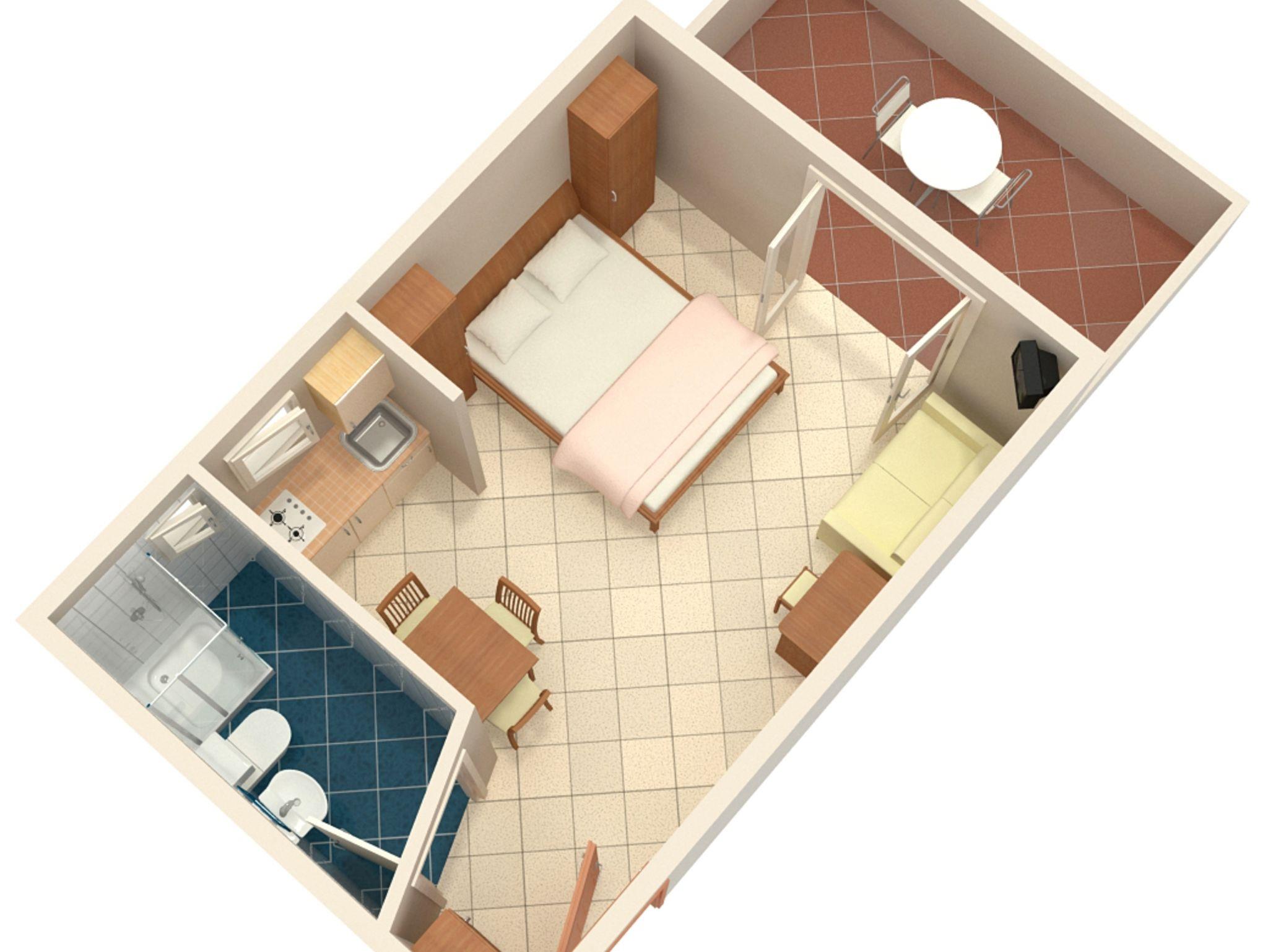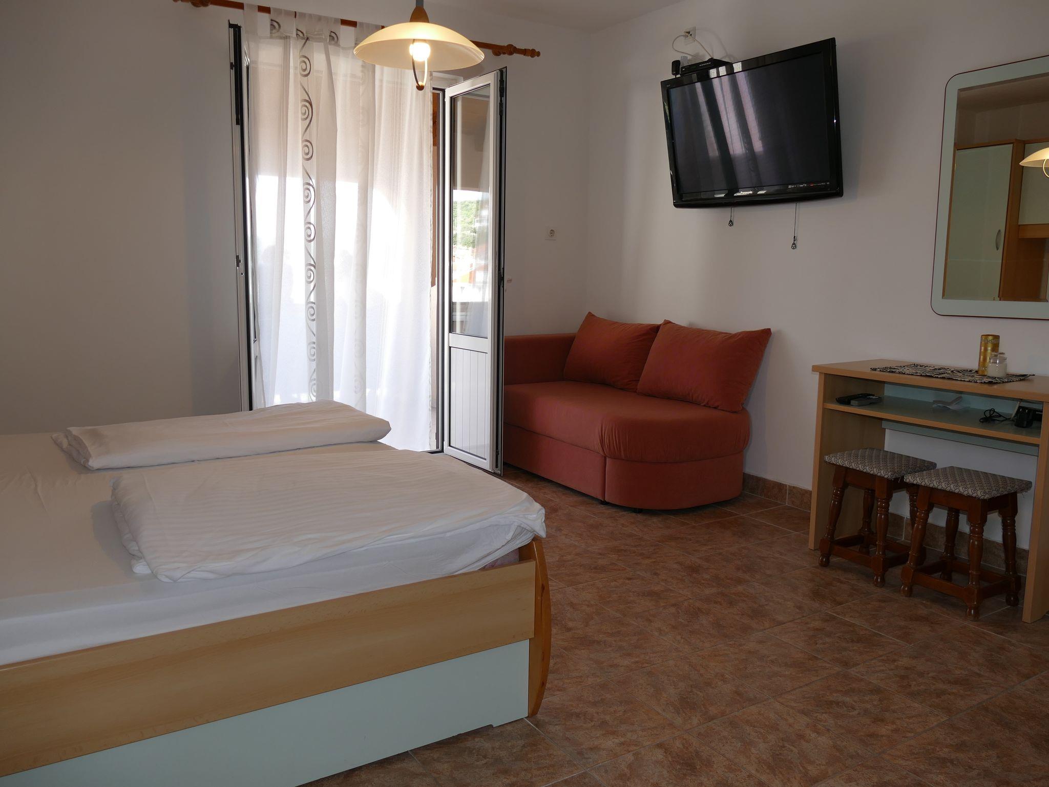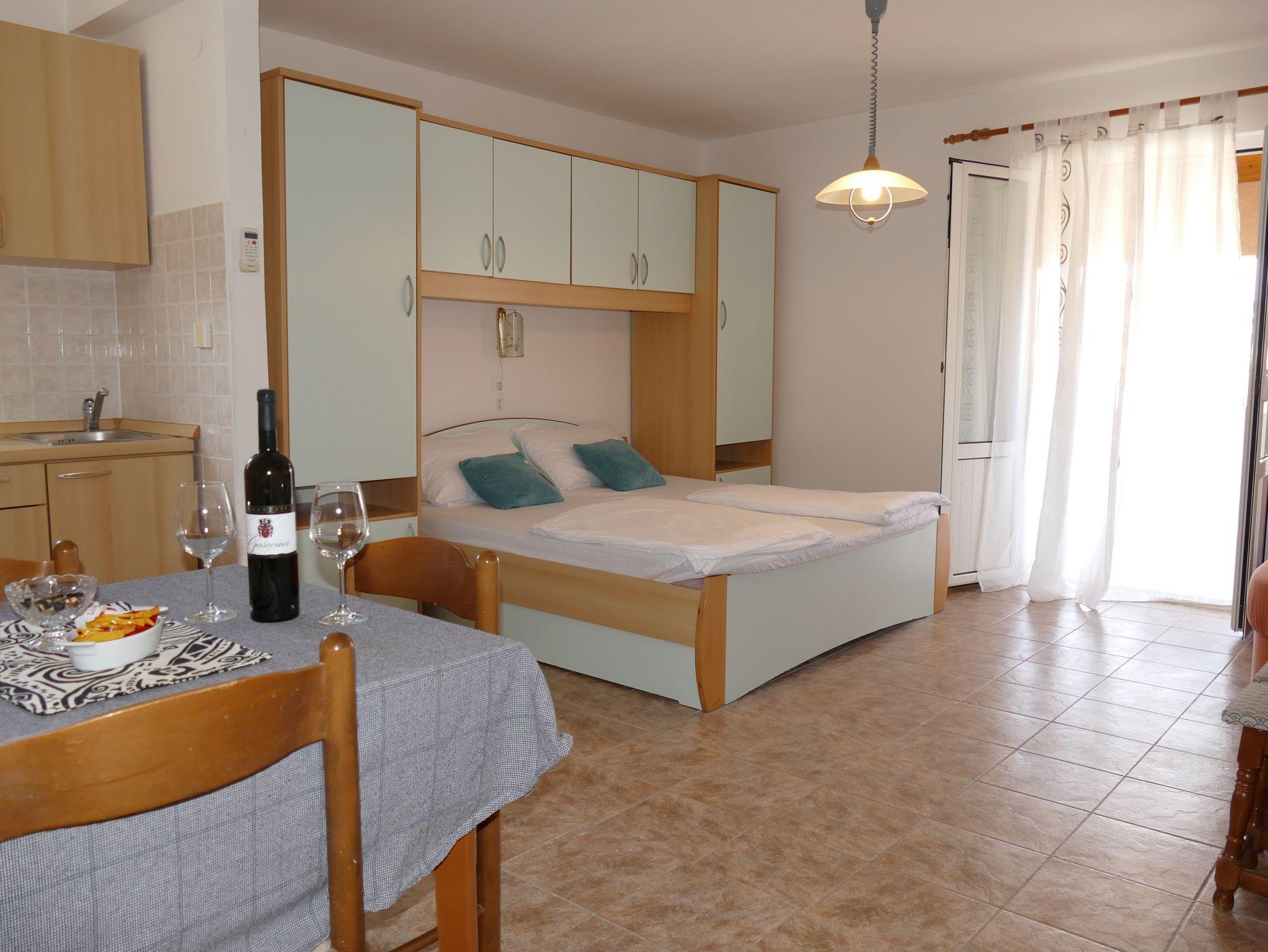 Studio bietet Platz für 3 Gäste. Die Betten sind in Schlafzimmern, die es 1 gibt, innerhalb einer Gesamtfläche von 22m2, angeordnet. Die Gäste haben eine eigene Terrasse zur Verfügung, auf der sie in warmen Sommernächten genießen können. Das Studio-Apartment bietet Meerblick. Es ist erlaubt, Speisen auf dem Gemeinschafts-Grill vorzubereiten. In der Unterkunftseinheit besteht die Möglichkeit des Mitbringens von Haustieren gegen Aufpreis. IM PREIS INBEGRIFFEN: Kurtaxe, Endreinigung, Klimatisierung, Parkplatz, Garage, Internet, Bügeleisen, Bügelbrett, Föhn. VERBINDLICHE ZUSÄTZLICHE KOSTEN: Aufzahlung für Kurzaufenthalte (prozentualer Zuschlag pro Nächtigungsanzahl: 30% - 1, 20% - 2, 10% - 3). UNVERBINDLICHE ZUSÄTZLICHE KOSTEN: Frühstück (8,00 €, 50% Nachlass für Kinder zwischen 4 und 12 Jahren, Kinder bis 4 Jahre sind frei.), Bootsanlegeplatz (10,00 € pro Nacht), Haustiere (5,00 € pro Nacht). Die Verfügbarkeit zusätzlicher Dienstleistungen in Ihrem reservierten Termin und die Preise derselben (falls nicht aufgeführt) müssen im Voraus überprüft werden. Zusätzliche Dienstleistungen die in der Zahlungsaufforderung nicht aufgeführt sind werden direkt beim Vermieter bezahlt, angenommen der Gast nutzt auch diese.