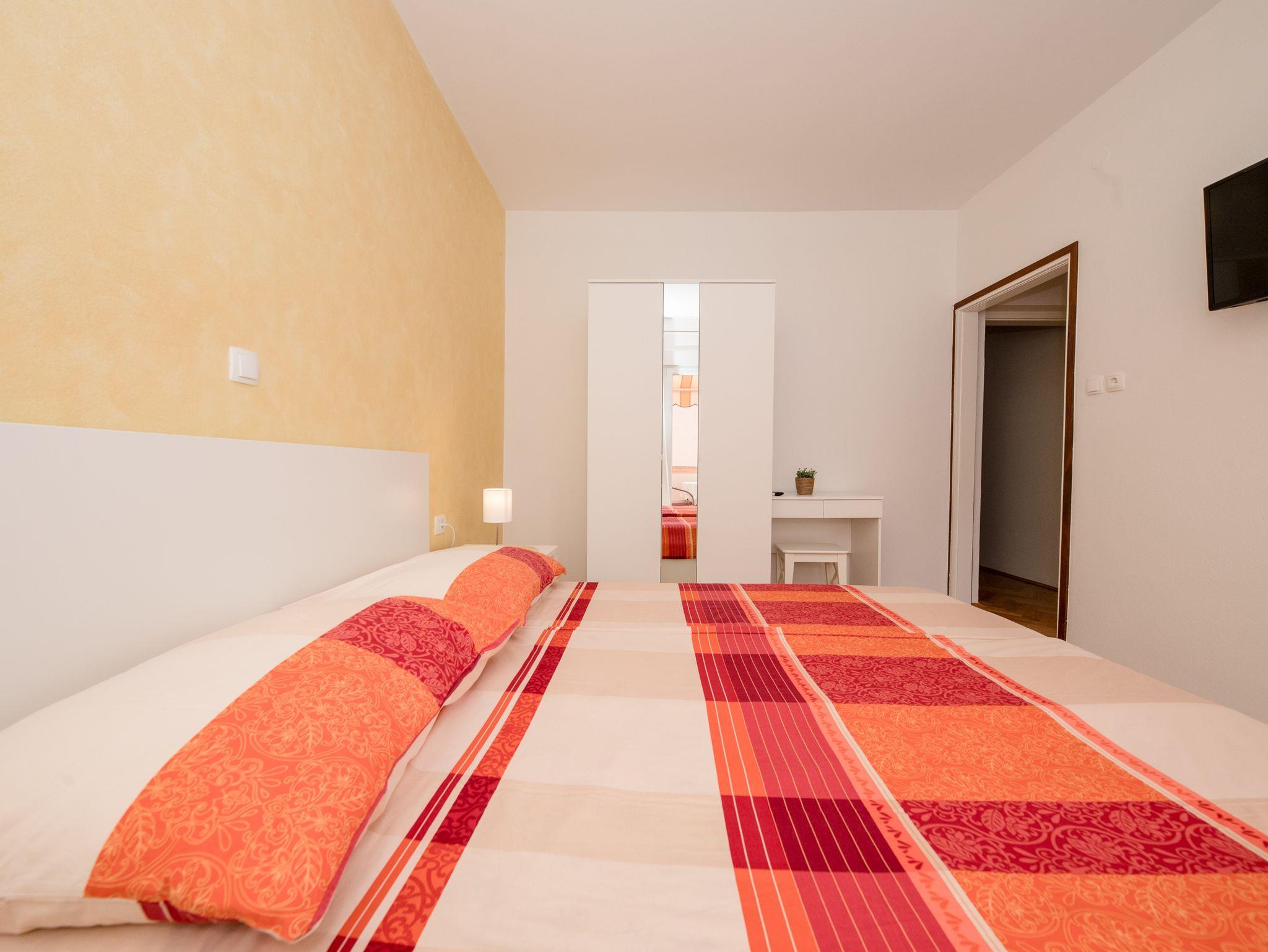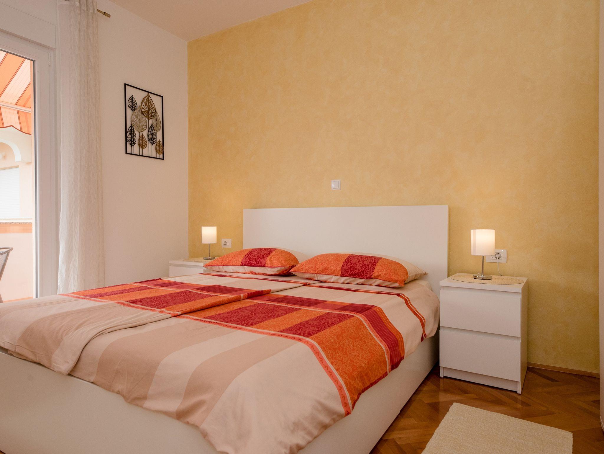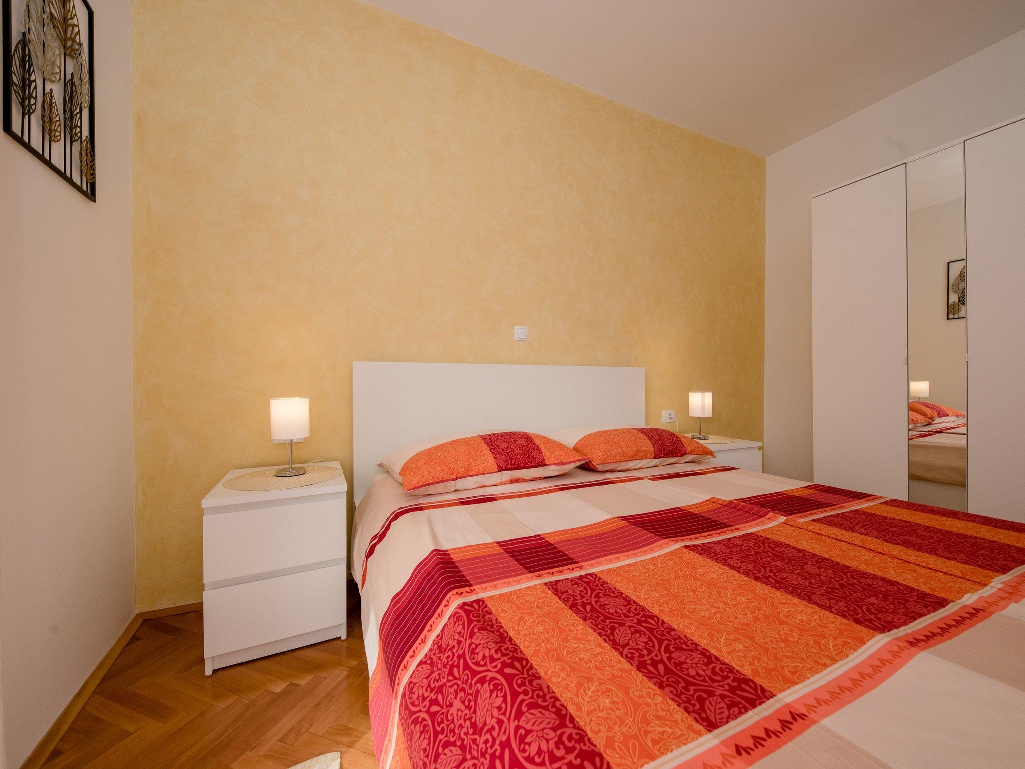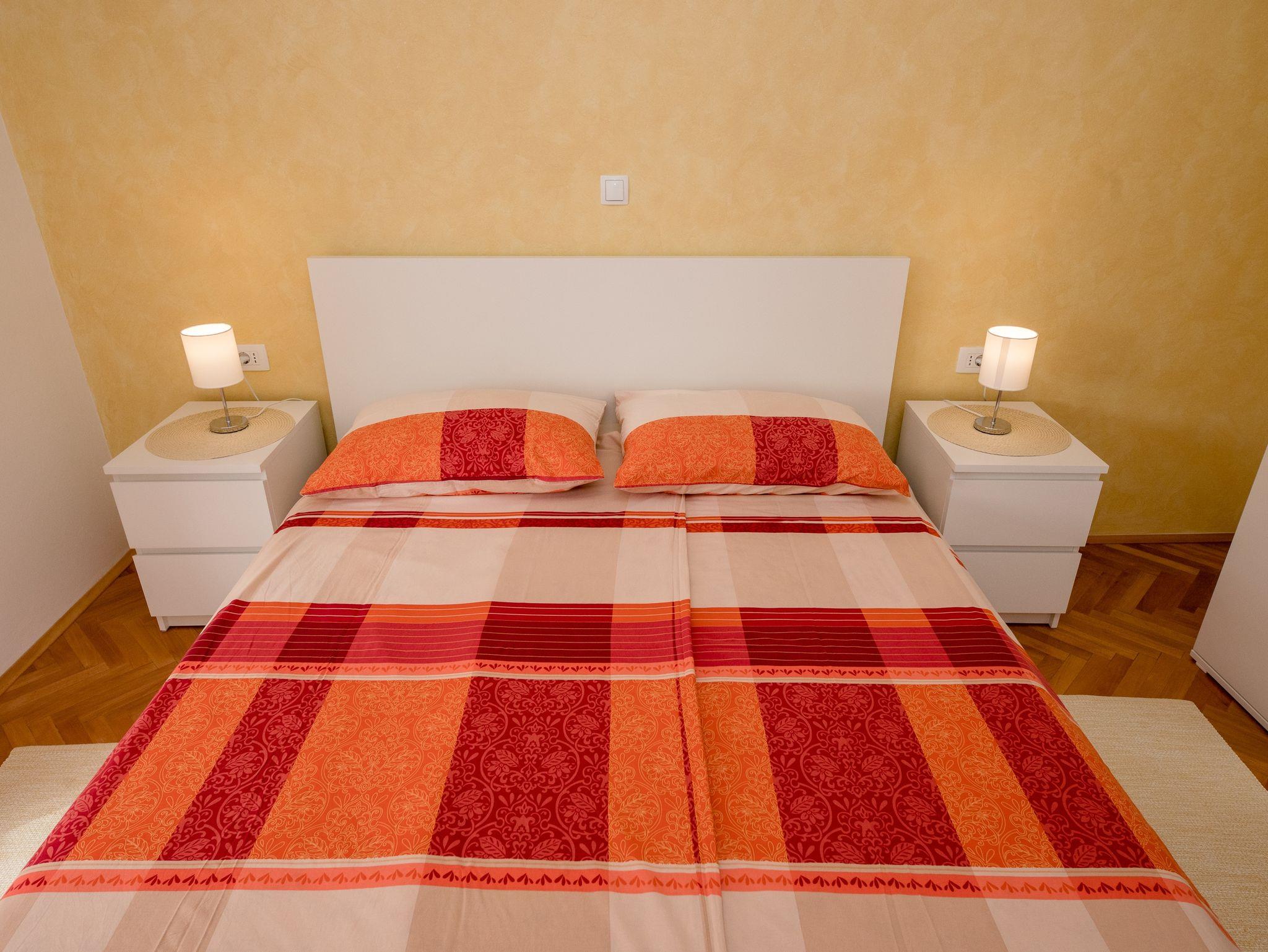 Ferienwohnung bietet Platz für 2 Gäste. Die Betten sind in Schlafzimmern, die es 1 gibt, innerhalb einer Gesamtfläche von 26m2, angeordnet. Die Gäste haben einen eigenen Balkon zur Verfügung, auf der sie in warmen Sommernächten genießen können. IM PREIS INBEGRIFFEN: Kurtaxe, Endreinigung, Klimatisierung, Parkplatz, Internet. VERBINDLICHE ZUSÄTZLICHE KOSTEN: Aufzahlung für Kurzaufenthalte (prozentualer Zuschlag pro Nächtigungsanzahl: 30% - 1, 20% - 2, 10% - 3). UNVERBINDLICHE ZUSÄTZLICHE KOSTEN: Bootsanlegeplatz (7,00 € pro Nacht). Die Verfügbarkeit zusätzlicher Dienstleistungen in Ihrem reservierten Termin und die Preise derselben (falls nicht aufgeführt) müssen im Voraus überprüft werden. Zusätzliche Dienstleistungen die in der Zahlungsaufforderung nicht aufgeführt sind werden direkt beim Vermieter bezahlt, angenommen der Gast nutzt auch diese.