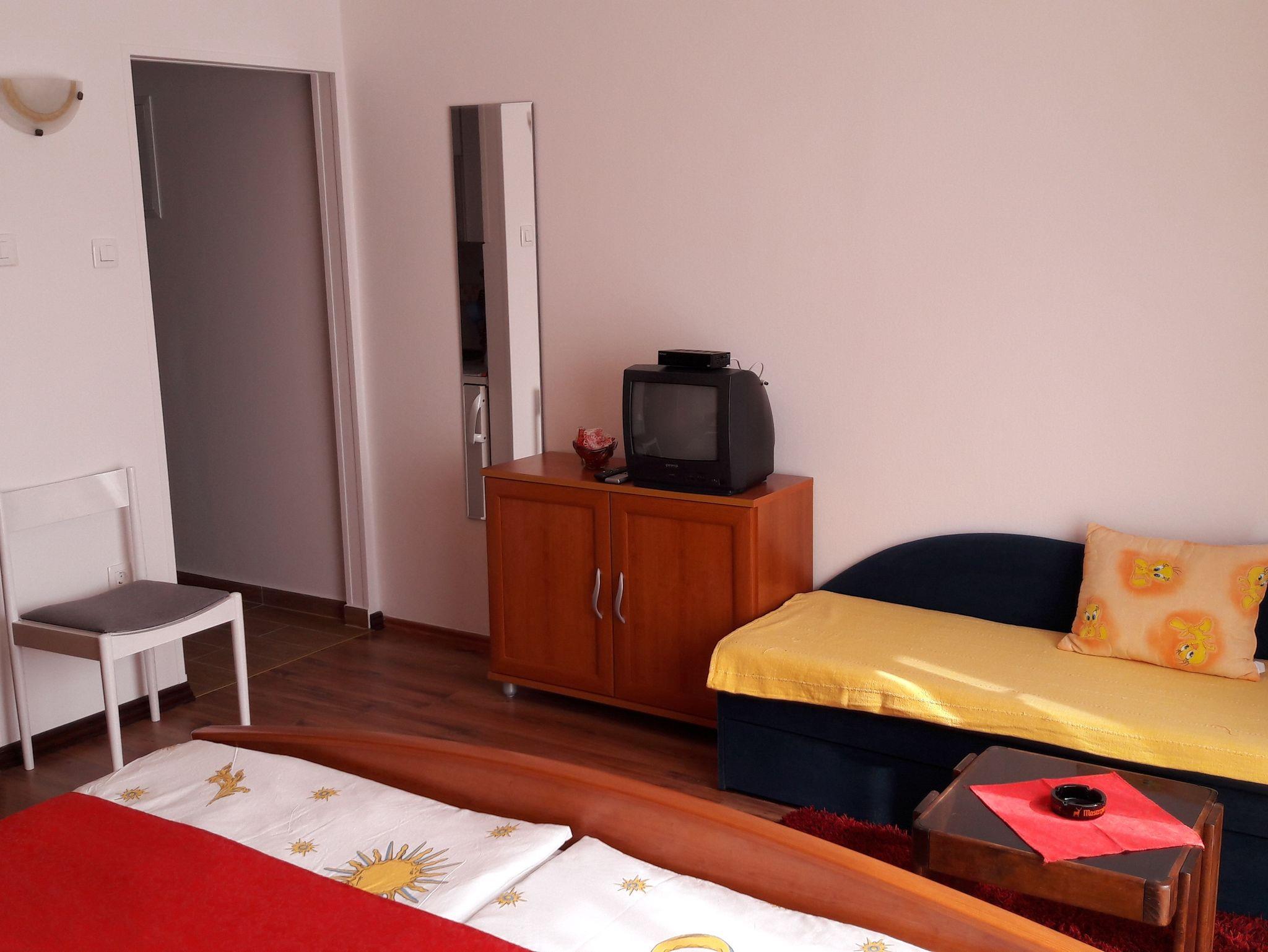 Studio bietet Platz für 3 Gäste. Die Betten sind in Schlafzimmern, die es 1 gibt, innerhalb einer Gesamtfläche von 27m2, angeordnet. Die Gäste haben einen eigenen Balkon zur Verfügung, auf der sie in warmen Sommernächten genießen können. Das Studio-Apartment bietet Meerblick. Es ist erlaubt, Speisen auf dem Gemeinschafts-Grill vorzubereiten. IM PREIS INBEGRIFFEN: Kurtaxe, Endreinigung, Klimatisierung, Parkplatz, Internet, Föhn. VERBINDLICHE ZUSÄTZLICHE KOSTEN: Aufzahlung für Kurzaufenthalte (prozentualer Zuschlag pro Nächtigungsanzahl: 30% - 1, 20% - 2, 10% - 3). UNVERBINDLICHE ZUSÄTZLICHE KOSTEN: Wäschewaschen (5,00 € Waschen), Bootsanlegeplatz (5,00 € pro Nacht). Die Verfügbarkeit zusätzlicher Dienstleistungen in Ihrem reservierten Termin und die Preise derselben (falls nicht aufgeführt) müssen im Voraus überprüft werden. Zusätzliche Dienstleistungen die in der Zahlungsaufforderung nicht aufgeführt sind werden direkt beim Vermieter bezahlt, angenommen der Gast nutzt auch diese. Ermäßigung auf den Grundpreis: Gratistag 21=19 (bei einem Aufenthalt von 21 Tagen oder mehr erhalten Sie 2 Gratistage für den Aufenthalt bis 31.12.26).