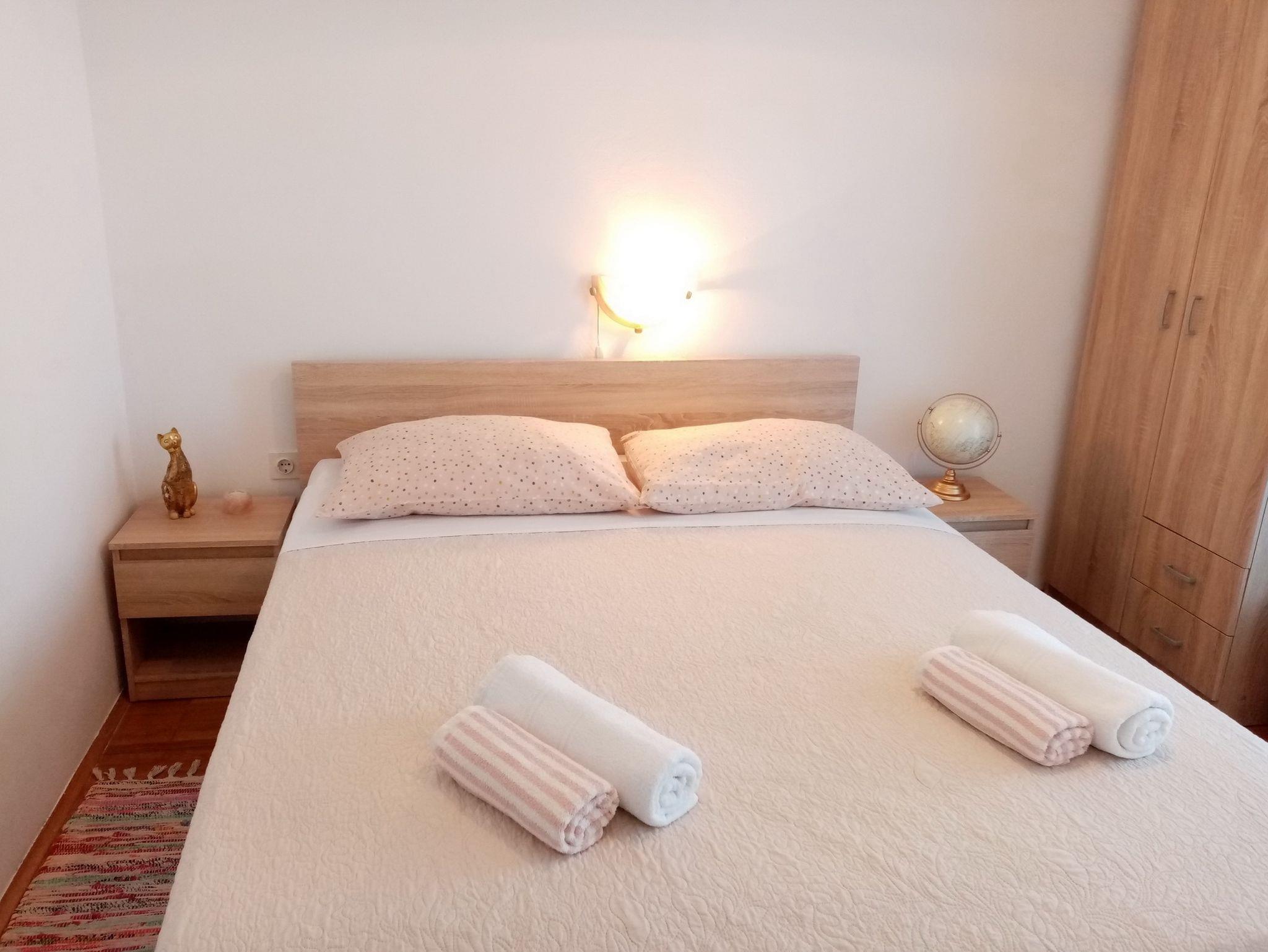 Ferienwohnung bietet Platz für 4 Gäste. Die Betten sind in Schlafzimmern, die es 2 gibt, innerhalb einer Gesamtfläche von 32m2, angeordnet. Die Gäste haben einen eigenen Balkon zur Verfügung, auf der sie in warmen Sommernächten genießen können. Das Apartment bietet Meerblick. Es ist erlaubt, Speisen auf dem Gemeinschafts-Grill vorzubereiten. IM PREIS INBEGRIFFEN: Kurtaxe, Endreinigung, Klimatisierung, Internet. VERBINDLICHE ZUSÄTZLICHE KOSTEN: Aufzahlung für Kurzaufenthalte (prozentualer Zuschlag pro Nächtigungsanzahl: 30% - 1, 20% - 2, 10% - 3). UNVERBINDLICHE ZUSÄTZLICHE KOSTEN: Bootsanlegeplatz (10,00 € pro Nacht). Die Verfügbarkeit zusätzlicher Dienstleistungen in Ihrem reservierten Termin und die Preise derselben (falls nicht aufgeführt) müssen im Voraus überprüft werden. Zusätzliche Dienstleistungen die in der Zahlungsaufforderung nicht aufgeführt sind werden direkt beim Vermieter bezahlt, angenommen der Gast nutzt auch diese. Ermäßigung auf den Grundpreis: Gratistag 14=13 (bei einem Aufenthalt von 14 Tagen oder mehr erhalten Sie einen Gratistag für den Aufenthalt bis 31.12.26).