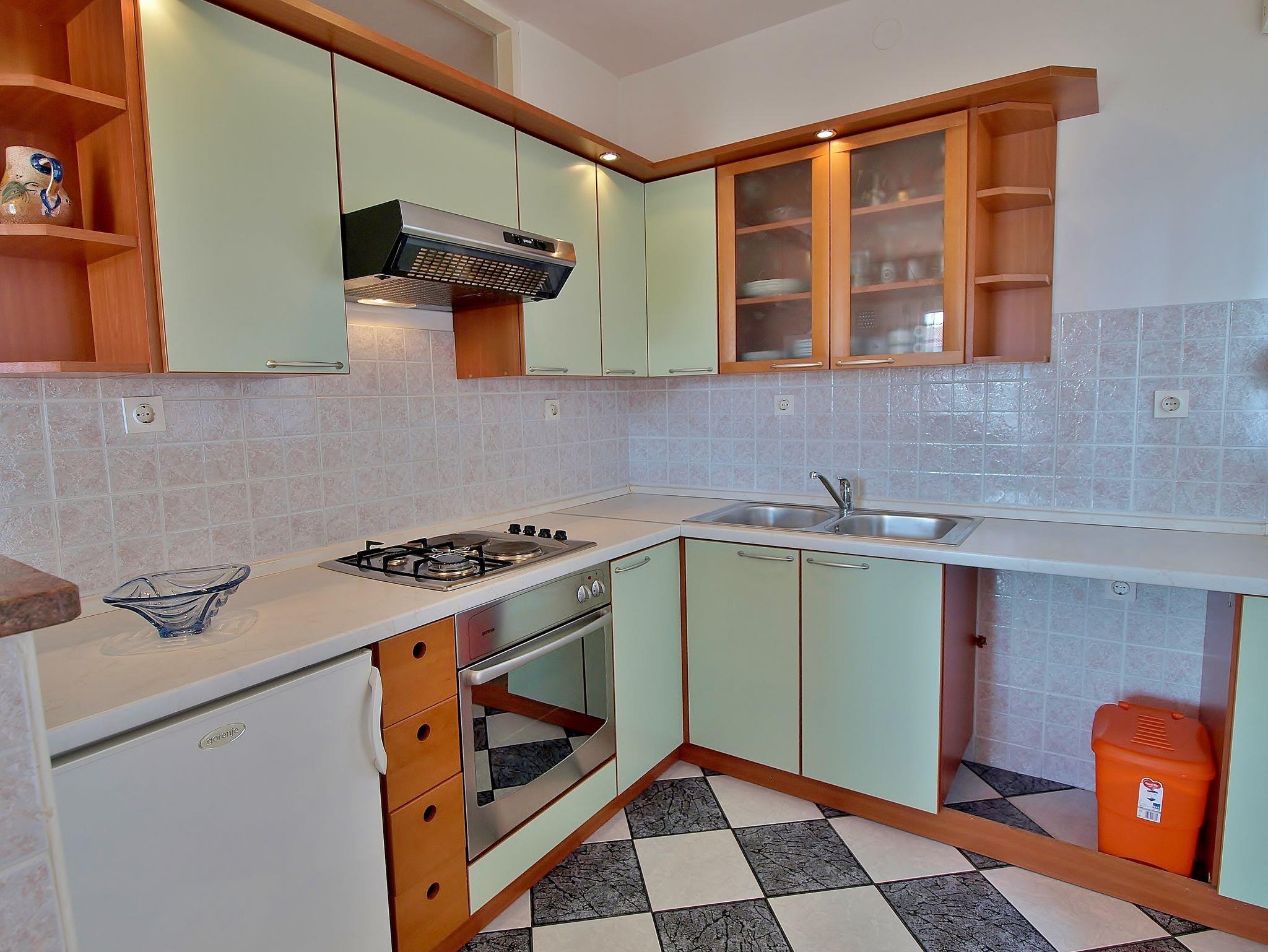 Ferienwohnung bietet Platz für 4 Gäste. Die Betten sind in Schlafzimmern, die es 2 gibt, innerhalb einer Gesamtfläche von 53m2, angeordnet. Die Gäste haben eine eigene Terrasse zur Verfügung, auf der sie in warmen Sommernächten genießen können. Es ist erlaubt, Speisen auf dem Gemeinschafts-Grill vorzubereiten. IM PREIS INBEGRIFFEN: Kurtaxe, Endreinigung, Klimatisierung, Parkplatz, Internet, Kinderbett, Bügeleisen, Bügelbrett, Föhn, tragbarer Grill. VERBINDLICHE ZUSÄTZLICHE KOSTEN: Aufzahlung für Kurzaufenthalte (prozentualer Zuschlag pro Nächtigungsanzahl: 30% - 1, 20% - 2, 10% - 3). Die Verfügbarkeit zusätzlicher Dienstleistungen in Ihrem reservierten Termin und die Preise derselben (falls nicht aufgeführt) müssen im Voraus überprüft werden. Zusätzliche Dienstleistungen die in der Zahlungsaufforderung nicht aufgeführt sind werden direkt beim Vermieter bezahlt, angenommen der Gast nutzt auch diese. Ermäßigung auf den Grundpreis: Gratistag 14=13 (bei einem Aufenthalt von 14 Tagen oder mehr erhalten Sie einen Gratistag für den Aufenthalt bis 31.12.26).