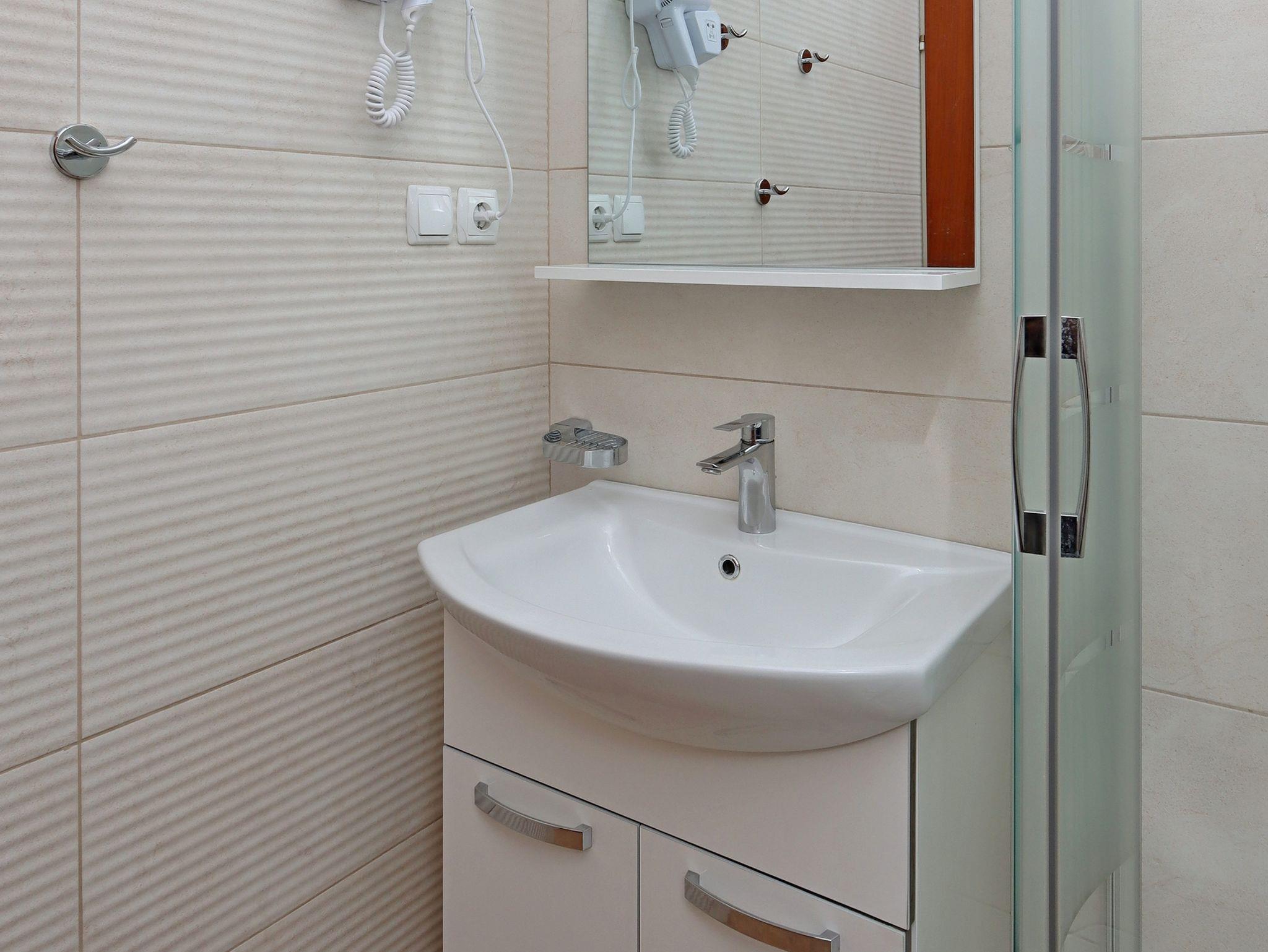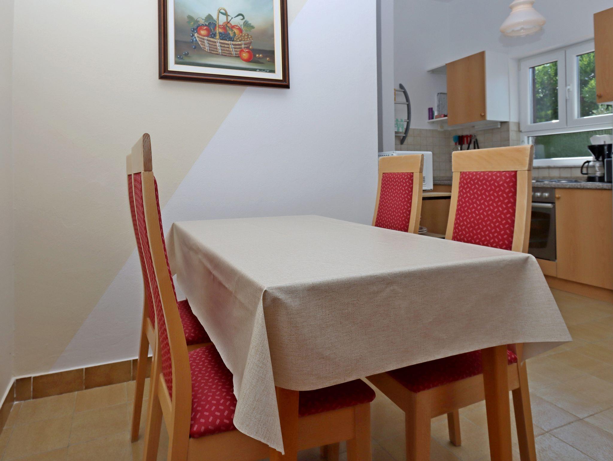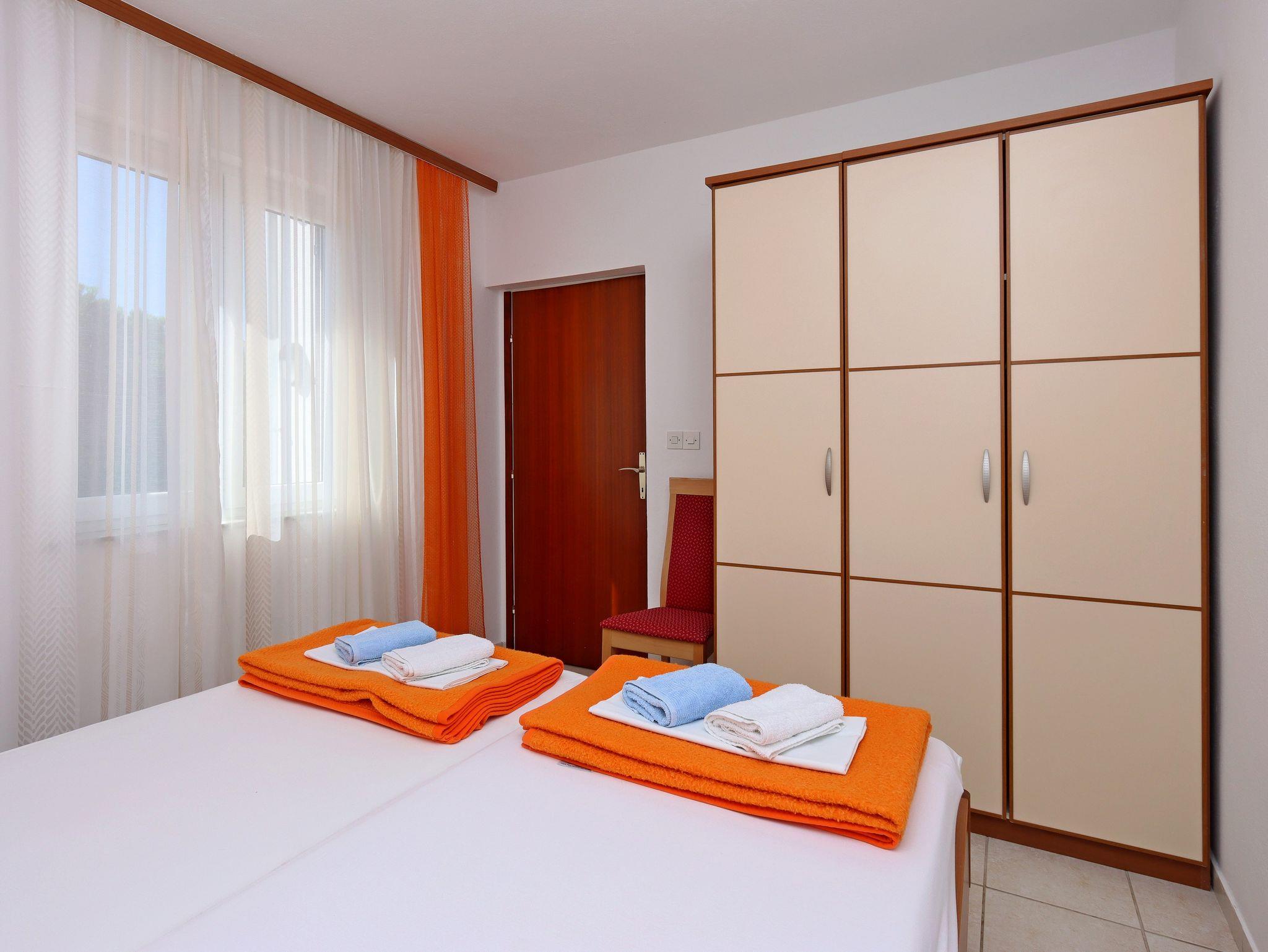 Ferienwohnung bietet Platz für 4 Gäste. Die Betten sind in Schlafzimmern, die es 2 gibt, innerhalb einer Gesamtfläche von 55m2, angeordnet. Die Gäste haben eine eigene Terrasse zur Verfügung, auf der sie in warmen Sommernächten genießen können. Das Apartment bietet Meerblick. Für vollen Genuss und Entspannung gibt es einen privaten Grill für Gäste dieser Unterkunft. In der Unterkunftseinheit besteht die Möglichkeit des Mitbringens von Haustieren gegen Aufpreis. IM PREIS INBEGRIFFEN: Kurtaxe, Endreinigung, Klimatisierung, Parkplatz, Internet, Wäschewaschen, Bügeleisen, Bügelbrett, Föhn. VERBINDLICHE ZUSÄTZLICHE KOSTEN: Aufzahlung für Kurzaufenthalte (prozentualer Zuschlag pro Nächtigungsanzahl: 30% - 1, 20% - 2, 10% - 3). UNVERBINDLICHE ZUSÄTZLICHE KOSTEN: Haustiere (7,00 € pro Nacht). Die Verfügbarkeit zusätzlicher Dienstleistungen in Ihrem reservierten Termin und die Preise derselben (falls nicht aufgeführt) müssen im Voraus überprüft werden. Zusätzliche Dienstleistungen die in der Zahlungsaufforderung nicht aufgeführt sind werden direkt beim Vermieter bezahlt, angenommen der Gast nutzt auch diese. Ermäßigung auf den Grundpreis: Gratistag 21=19 (bei einem Aufenthalt von 21 Tagen oder mehr erhalten Sie 2 Gratistage für den Aufenthalt bis 31.12.26).