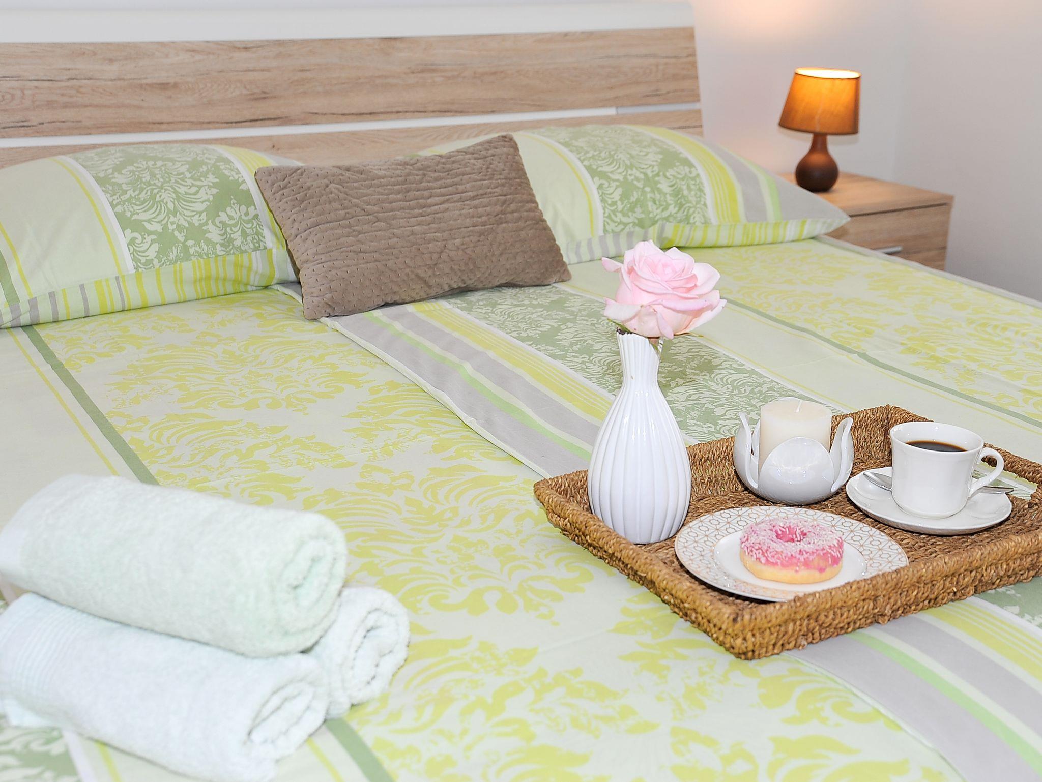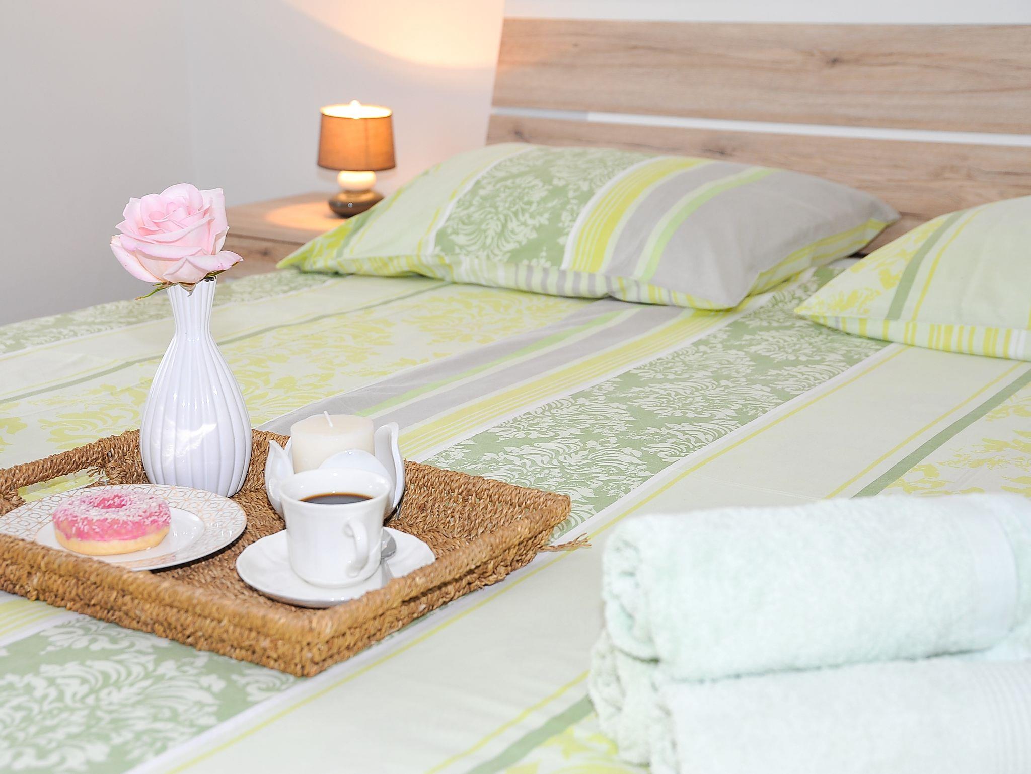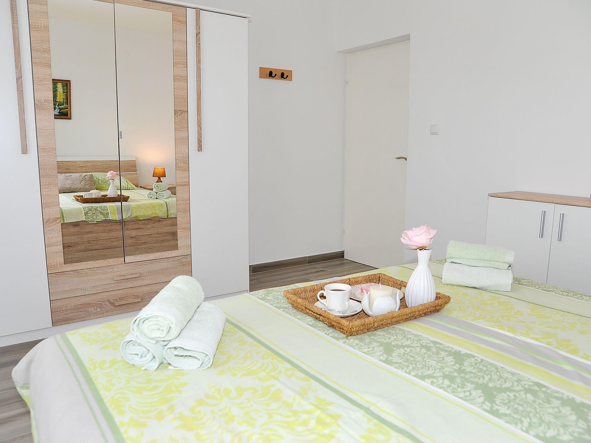 Ferienwohnung bietet Platz für 4 Gäste. Die Betten sind in Schlafzimmern, die es 2 gibt, innerhalb einer Gesamtfläche von 57m2, angeordnet. Die Gäste haben eine eigene Terrasse zur Verfügung, auf der sie in warmen Sommernächten genießen können. Das Apartment bietet Meerblick. Es ist erlaubt, Speisen auf dem Gemeinschafts-Grill vorzubereiten. In der Unterkunftseinheit besteht die Möglichkeit des Mitbringens von Haustieren gegen Aufpreis. IM PREIS INBEGRIFFEN: Kurtaxe, Endreinigung, Klimatisierung, Parkplatz, Internet, Bootsanlegeplatz, Kinderbett, Föhn. UNVERBINDLICHE ZUSÄTZLICHE KOSTEN: Haustiere (10,00 € pro Nacht). Die Verfügbarkeit zusätzlicher Dienstleistungen in Ihrem reservierten Termin und die Preise derselben (falls nicht aufgeführt) müssen im Voraus überprüft werden. Zusätzliche Dienstleistungen die in der Zahlungsaufforderung nicht aufgeführt sind werden direkt beim Vermieter bezahlt, angenommen der Gast nutzt auch diese.