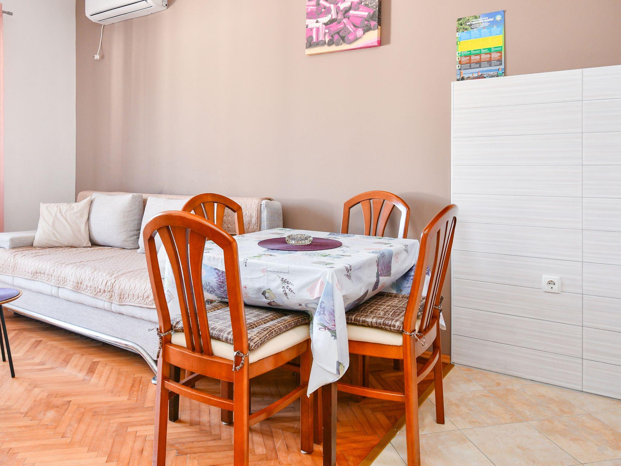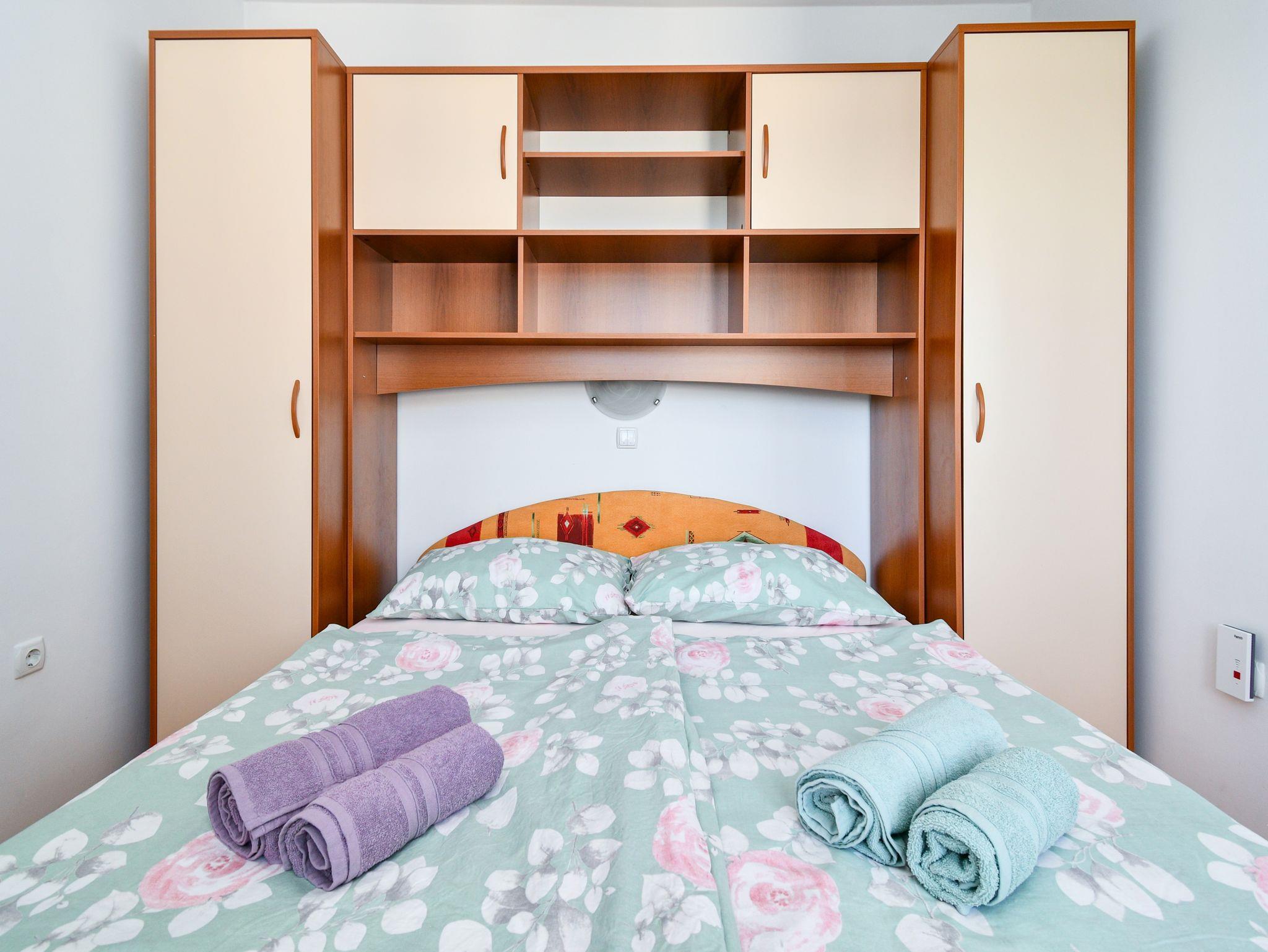 Ferienwohnung bietet Platz für 2 Gäste. Die Betten sind in Schlafzimmern, die es 1 gibt, innerhalb einer Gesamtfläche von 37m2, angeordnet. Die Gäste haben einen eigenen Balkon zur Verfügung, auf der sie in warmen Sommernächten genießen können. Das Apartment bietet Meerblick. Es ist erlaubt, Speisen auf dem Gemeinschafts-Grill vorzubereiten. In der Unterkunftseinheit besteht die Möglichkeit des Mitbringens von Haustieren gegen Aufpreis. IM PREIS INBEGRIFFEN: Kurtaxe, Endreinigung, Klimatisierung, Parkplatz, Internet, Bootsanlegeplatz, Liegestühle. VERBINDLICHE ZUSÄTZLICHE KOSTEN: Aufzahlung für Kurzaufenthalte (prozentualer Zuschlag pro Nächtigungsanzahl: 30% - 1, 20% - 2, 10% - 3). UNVERBINDLICHE ZUSÄTZLICHE KOSTEN: Frühstück (10,00 €, 50% Nachlass für Kinder zwischen 4 und 12 Jahren, Kinder bis 4 Jahre sind frei.), Haustiere (7,00 € pro Nacht). Die Verfügbarkeit zusätzlicher Dienstleistungen in Ihrem reservierten Termin und die Preise derselben (falls nicht aufgeführt) müssen im Voraus überprüft werden. Zusätzliche Dienstleistungen die in der Zahlungsaufforderung nicht aufgeführt sind werden direkt beim Vermieter bezahlt, angenommen der Gast nutzt auch diese.