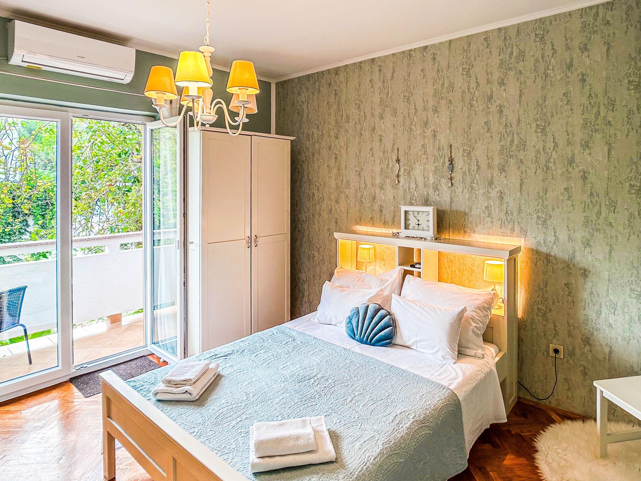 Studio bietet Platz für 2 Gäste. Die Betten sind in Schlafzimmern, die es 1 gibt, innerhalb einer Gesamtfläche von 29m2, angeordnet. Die Gäste haben einen eigenen Balkon zur Verfügung, auf der sie in warmen Sommernächten genießen können. IM PREIS INBEGRIFFEN: Kurtaxe, Endreinigung, Klimatisierung, Parkplatz, Internet, Bügeleisen, Bügelbrett, Föhn. VERBINDLICHE ZUSÄTZLICHE KOSTEN: Aufzahlung für Kurzaufenthalte (prozentualer Zuschlag pro Nächtigungsanzahl: 30% - 1, 20% - 2, 10% - 3). UNVERBINDLICHE ZUSÄTZLICHE KOSTEN: Wäschewaschen (6,00 € Waschen). Die Verfügbarkeit zusätzlicher Dienstleistungen in Ihrem reservierten Termin und die Preise derselben (falls nicht aufgeführt) müssen im Voraus überprüft werden. Zusätzliche Dienstleistungen die in der Zahlungsaufforderung nicht aufgeführt sind werden direkt beim Vermieter bezahlt, angenommen der Gast nutzt auch diese. Ermäßigung auf den Grundpreis: Gratistag 21=19 (bei einem Aufenthalt von 21 Tagen oder mehr erhalten Sie 2 Gratistage für den Aufenthalt bis 31.12.26).