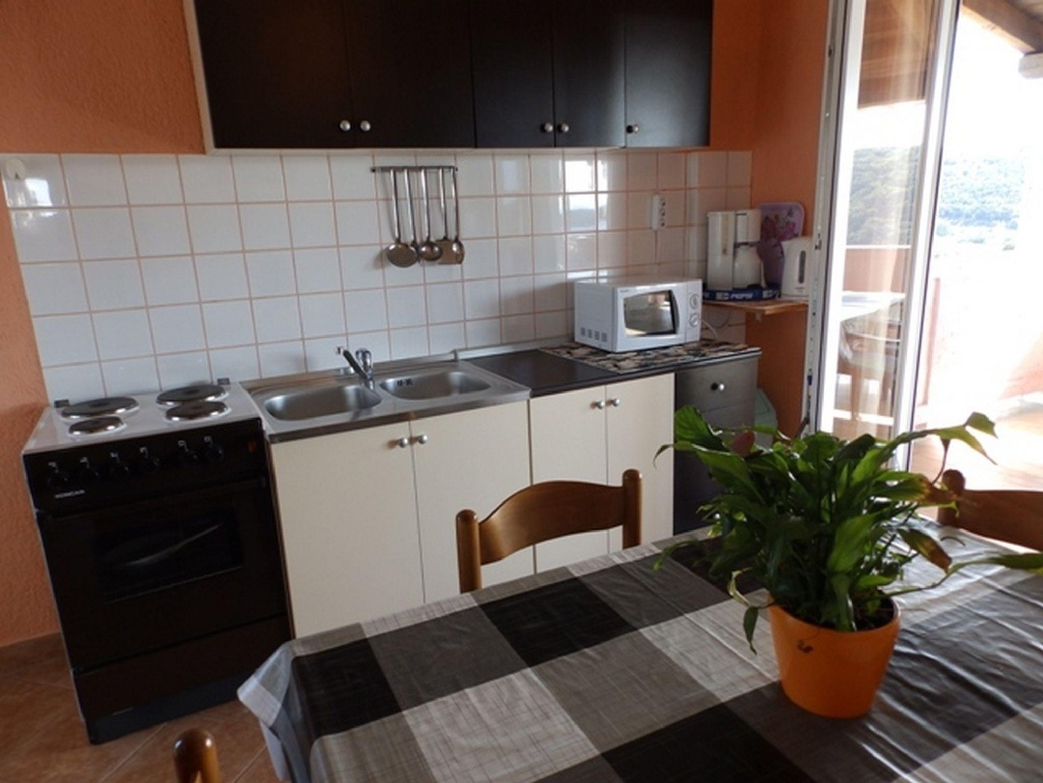 Ferienwohnung bietet Platz für 5 Gäste. Die Betten sind in Schlafzimmern, die es 2 gibt, innerhalb einer Gesamtfläche von 52m2, angeordnet. Die Gäste haben eine eigene Terrasse zur Verfügung, auf der sie in warmen Sommernächten genießen können. Das Apartment bietet Meerblick. Es ist erlaubt, Speisen auf dem Gemeinschafts-Grill vorzubereiten. In der Unterkunftseinheit besteht die Möglichkeit des Mitbringens von Haustieren gegen Aufpreis. IM PREIS INBEGRIFFEN: Kurtaxe, Endreinigung, Klimatisierung, Parkplatz, Internet, Bügeleisen, Bügelbrett, Föhn. UNVERBINDLICHE ZUSÄTZLICHE KOSTEN: Wäschewaschen (5,00 € Waschen), Bootsanlegeplatz (5,00 € pro Nacht), Haustiere (5,00 € pro Nacht). Die Verfügbarkeit zusätzlicher Dienstleistungen in Ihrem reservierten Termin und die Preise derselben (falls nicht aufgeführt) müssen im Voraus überprüft werden. Zusätzliche Dienstleistungen die in der Zahlungsaufforderung nicht aufgeführt sind werden direkt beim Vermieter bezahlt, angenommen der Gast nutzt auch diese. Ermäßigung auf den Grundpreis: Gratistag 14=13 (bei einem Aufenthalt von 14 Tagen oder mehr erhalten Sie einen Gratistag für den Aufenthalt bis 31.12.26).