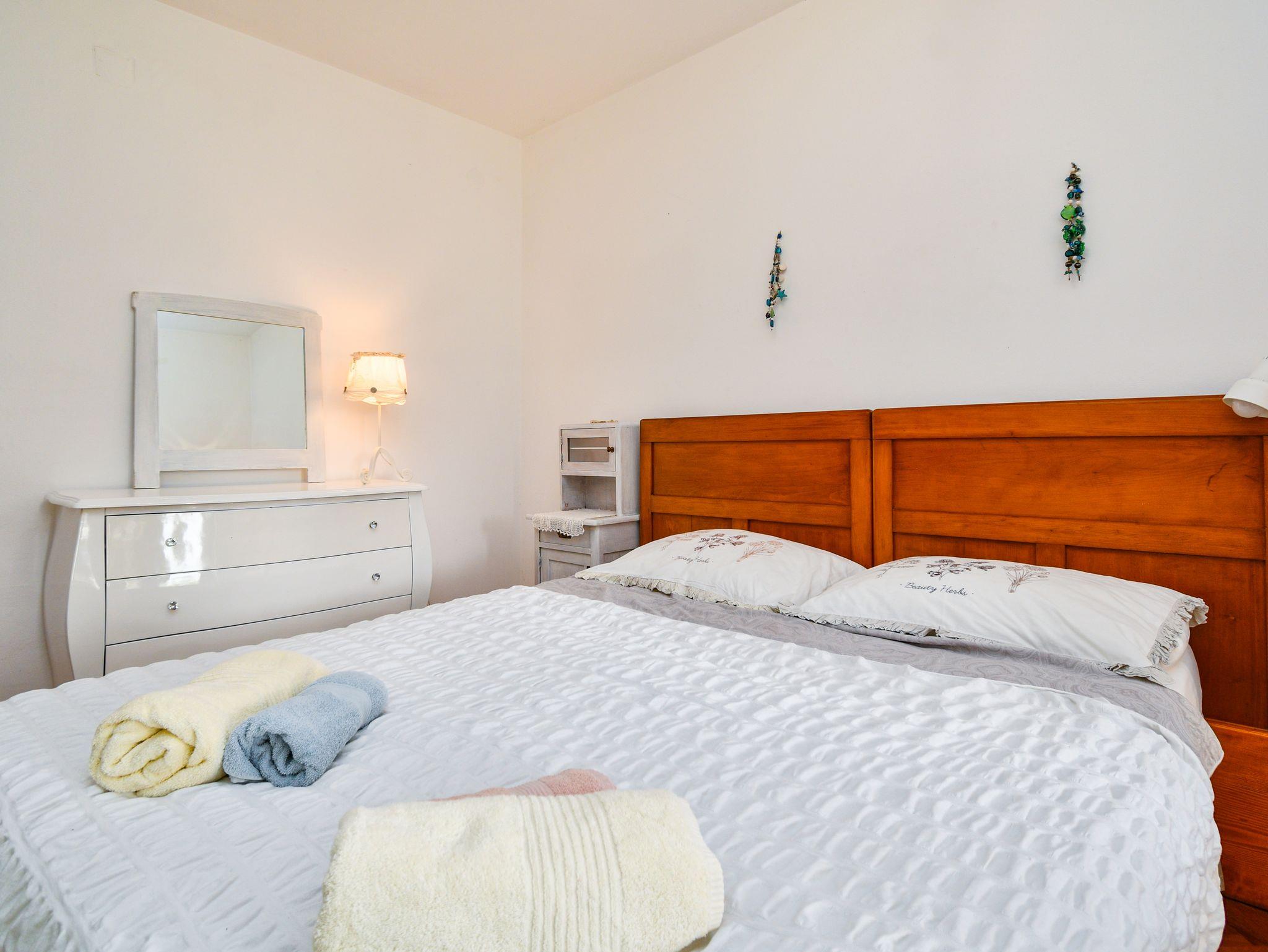 Ferienwohnung bietet Platz für 4 Gäste. Die Betten sind in Schlafzimmern, die es 2 gibt, innerhalb einer Gesamtfläche von 82m2, angeordnet. Die Gäste haben eine eigene Terrasse zur Verfügung, auf der sie in warmen Sommernächten genießen können. Es ist erlaubt, Speisen auf dem Gemeinschafts-Grill vorzubereiten. Während ihres Aufenthalts können Gäste das gemeinsam zur Nutzung stehende Schwimmbad benutzen. In der Unterkunftseinheit besteht die Möglichkeit des Mitbringens von Haustieren gegen Aufpreis. In der gebuchten Unterkunftseinheit zahlt man am Ort ein Depositum ( der Preis ist an der Internetseite angeführt ). IM PREIS INBEGRIFFEN: Kurtaxe, Endreinigung, Klimatisierung, Pool, Parkplatz, Internet, Kinderbett, Föhn, 1 Bett für Kinder (im Preis enthalten). VERBINDLICHE ZUSÄTZLICHE KOSTEN: Kaution (150,00 € Einmalzahlung). UNVERBINDLICHE ZUSÄTZLICHE KOSTEN: Haustiere (20,00 € pro Nacht), Fahrrad (10,00 € täglich (pro Stück)), Zusatzbett (10,00 € pro Nacht). Die Verfügbarkeit zusätzlicher Dienstleistungen in Ihrem reservierten Termin und die Preise derselben (falls nicht aufgeführt) müssen im Voraus überprüft werden. Zusätzliche Dienstleistungen die in der Zahlungsaufforderung nicht aufgeführt sind werden direkt beim Vermieter bezahlt, angenommen der Gast nutzt auch diese.